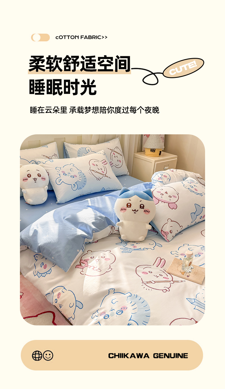 当前位置: 91家纺网 > 商品网购 > 床品套件 > 四件套 > 全棉普通四件套 > 博雅 2025新款吉伊卡哇正版授权全棉卡通印花四件套 白色吉伊卡哇