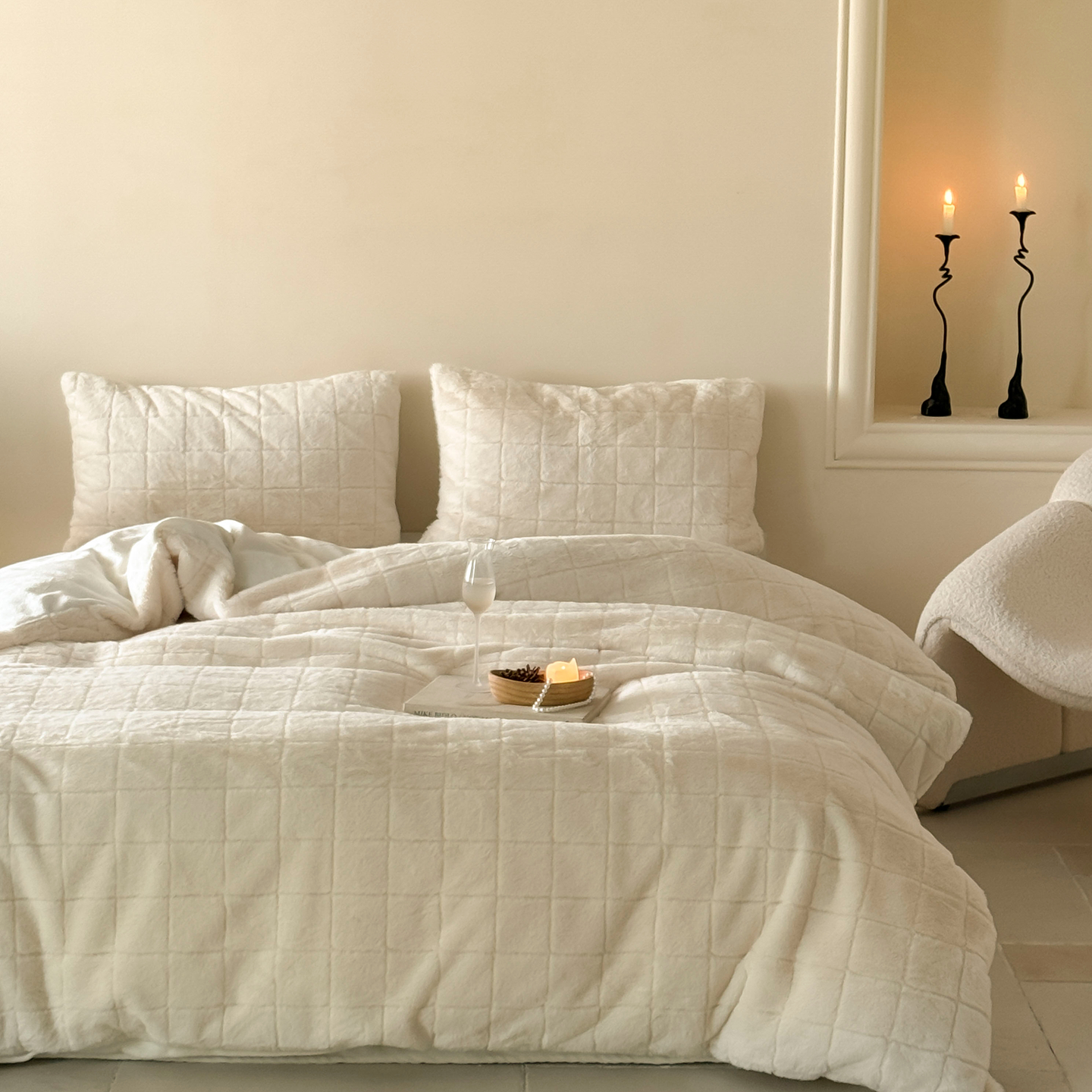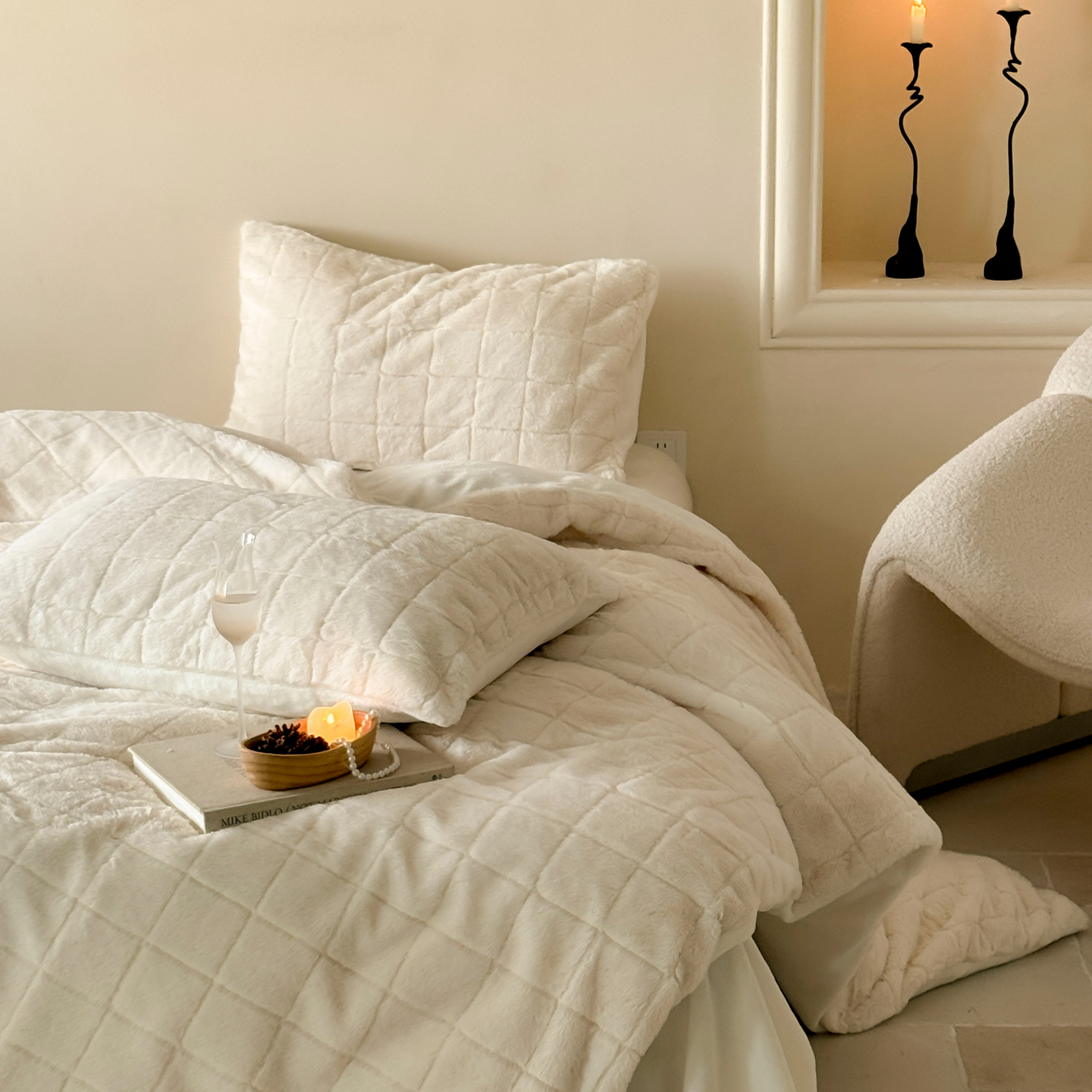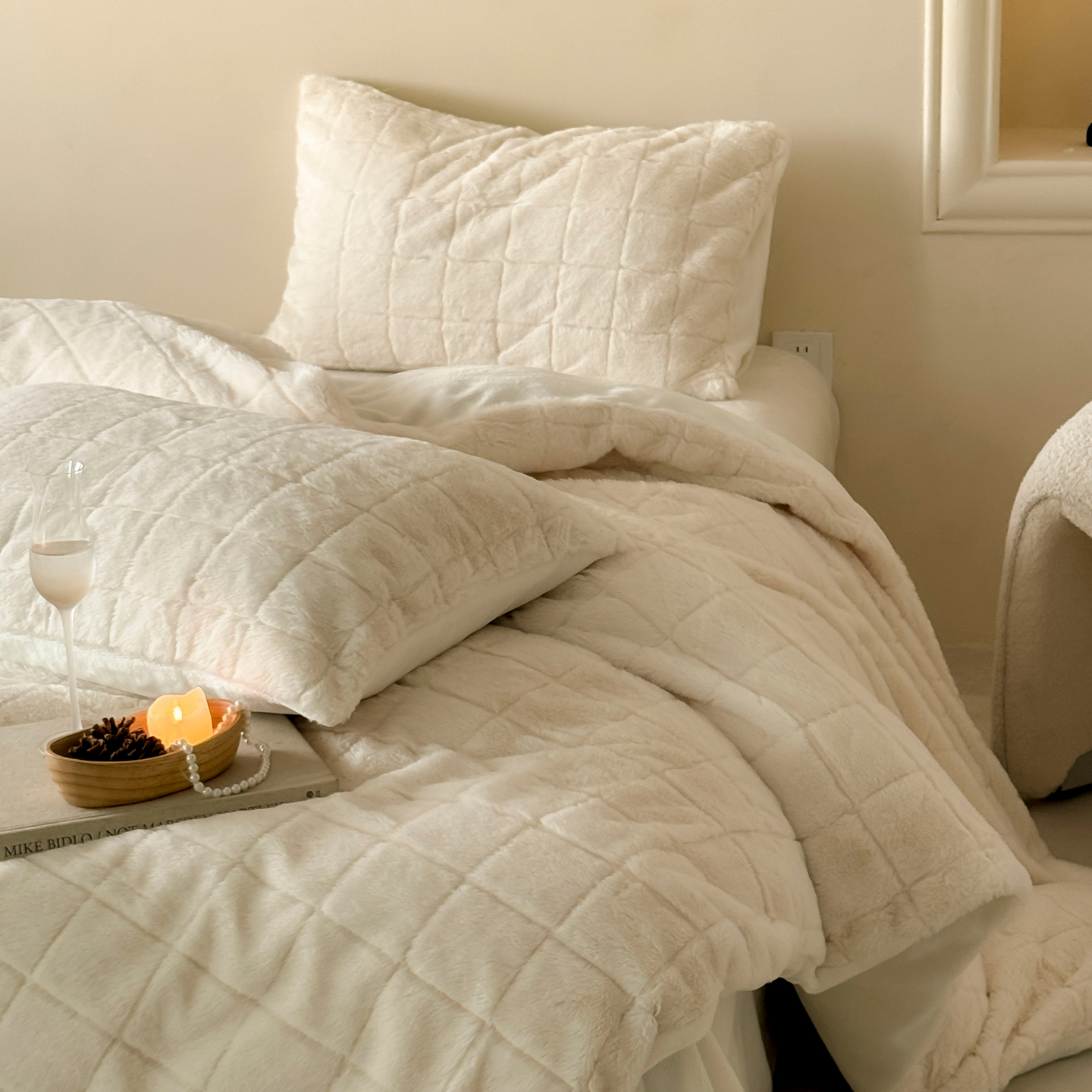 商品名称:(总)ONE TWO ONE 121 2025秋冬新款纯色双拼兔毛绒牛奶绒床上用品被套床单枕套四件套被子床垫褥子被芯毛毯-晚意方糖【提供买家秀 会员-10 】