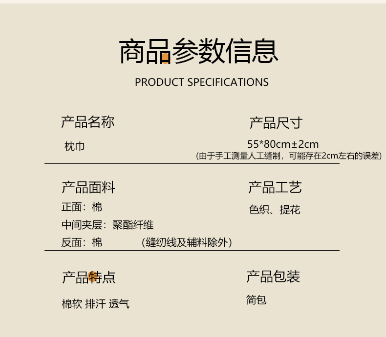 商品名称:棠薇家纺 2025新款提花绑带款枕巾棉纱布枕巾夹棉枕头巾 纯色圆圈驼