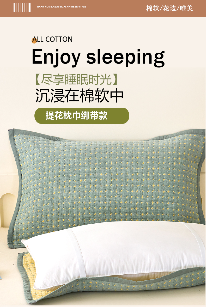 (总)棠薇家纺 2025新款提花绑带款枕巾棉纱布枕巾夹棉枕头巾,木影湖灰,纯色木兰粉,纯色木兰灰,纯色三角灰,纯色三角绿,纯色三角驼,纯色圆圈粉,纯色圆圈灰,纯色圆圈驼,古典风情,菱格灰,菱格紫,罗马故事,木影驼兰,欧式风尚,素练浮光灰,素练浮光紫,星空绿,圆点生活