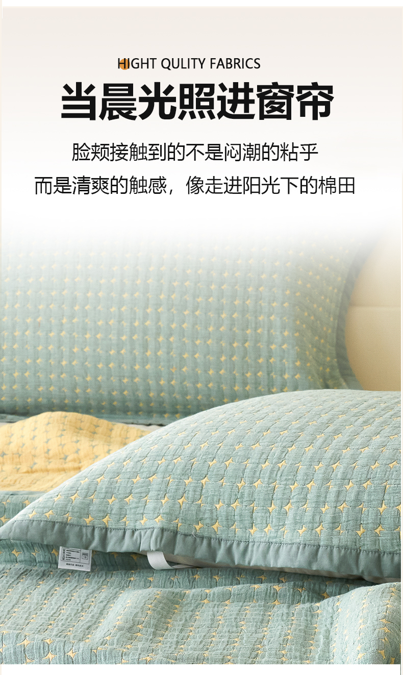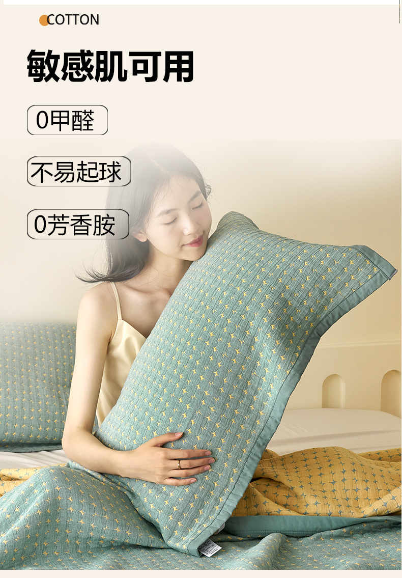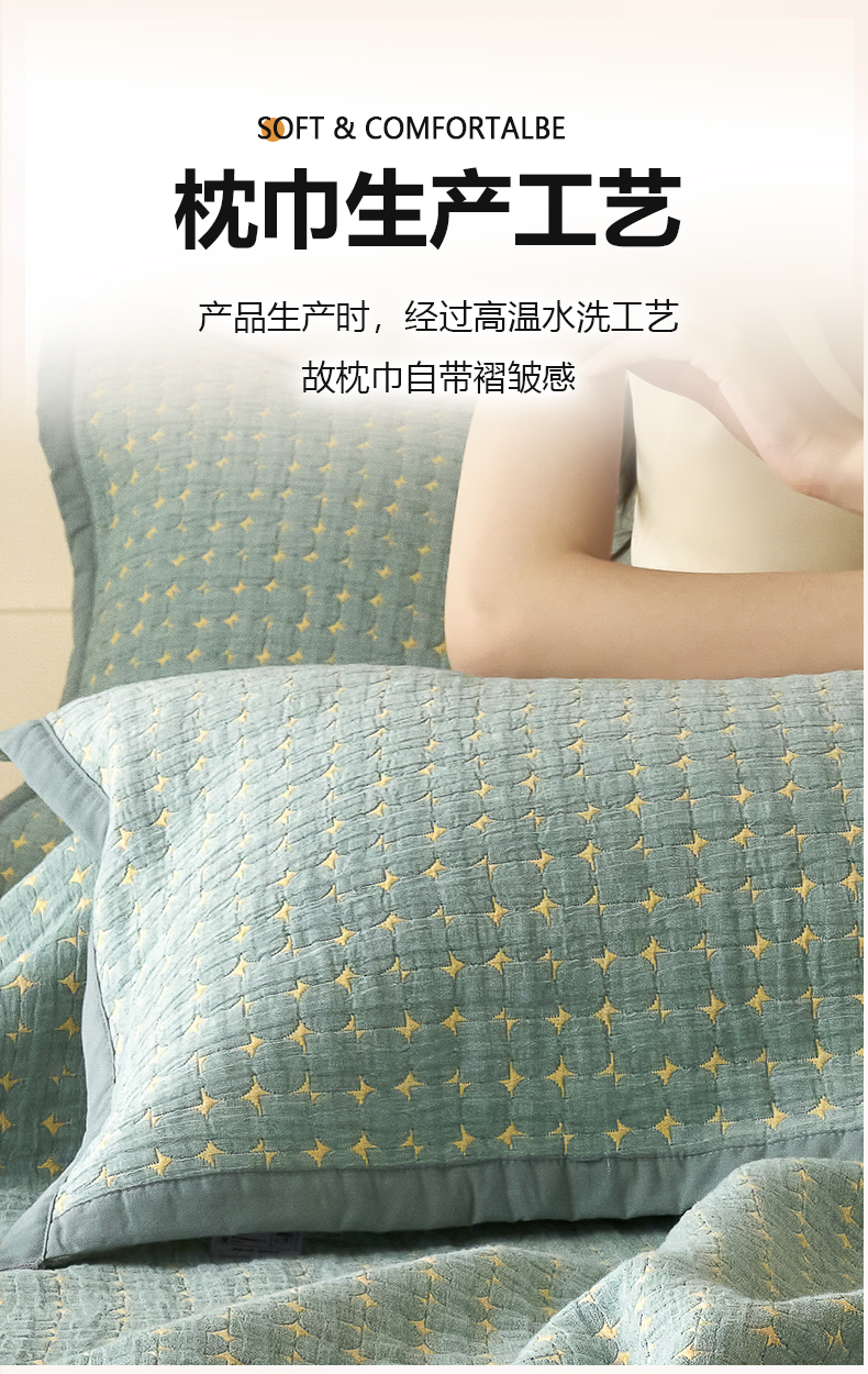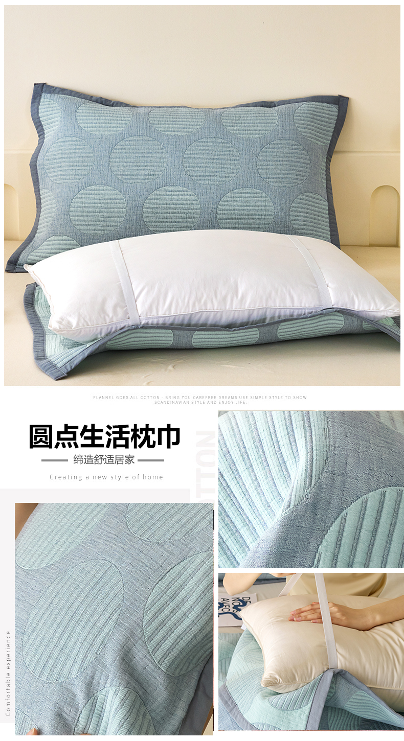 商品名称:棠薇家纺 2025新款提花绑带款枕巾棉纱布枕巾夹棉枕头巾 星空绿