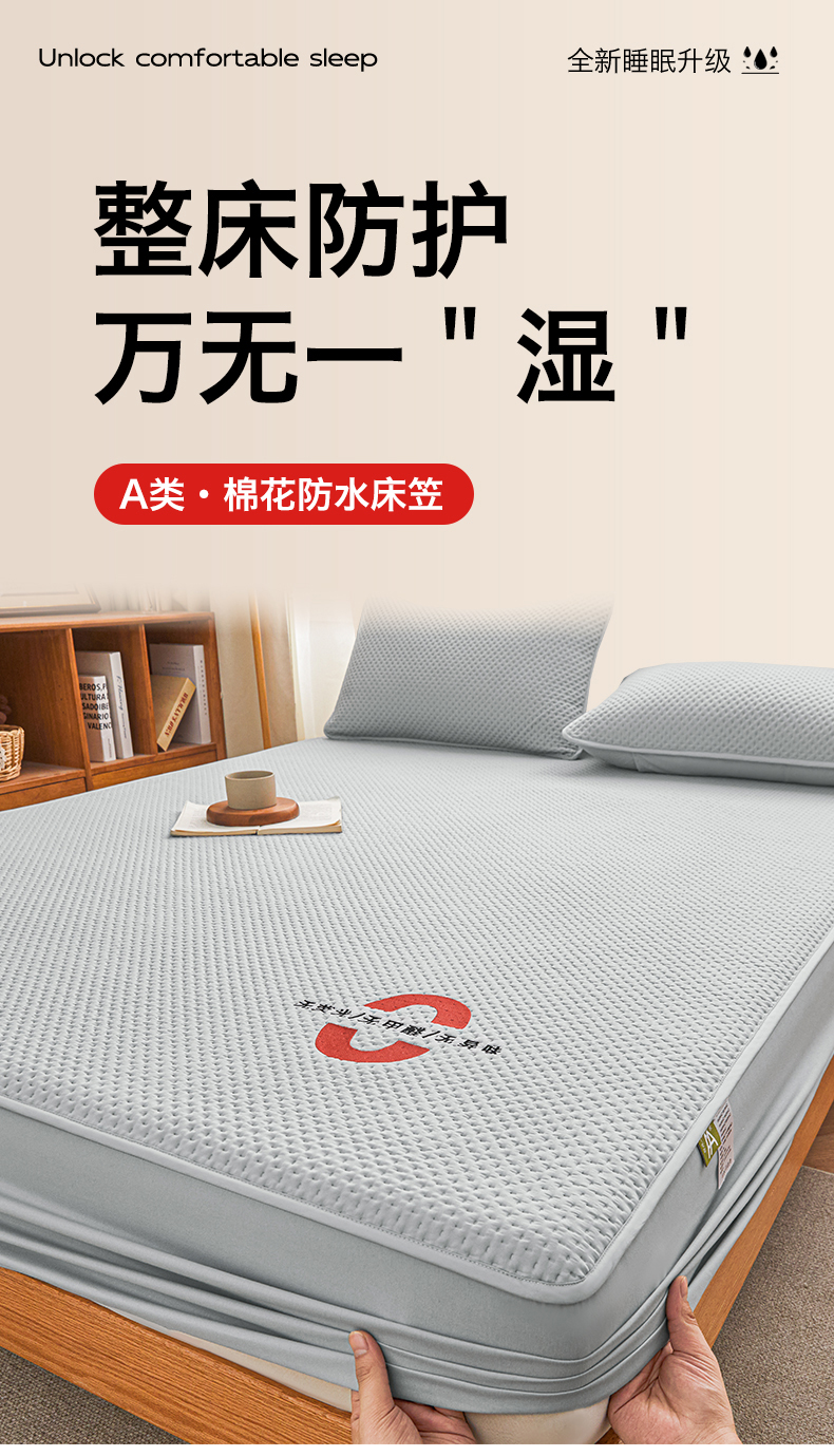 • 91家纺网 家纺一手货源 找家纺 居眠 2025新款安睡-防水棉花床笠 安睡-灰