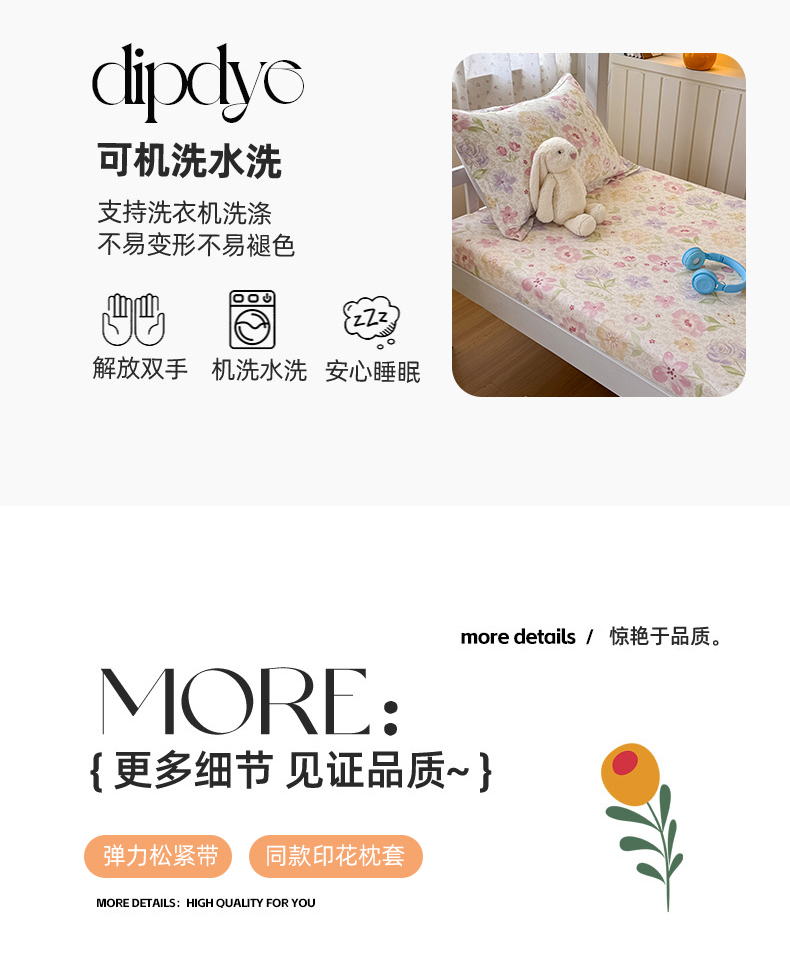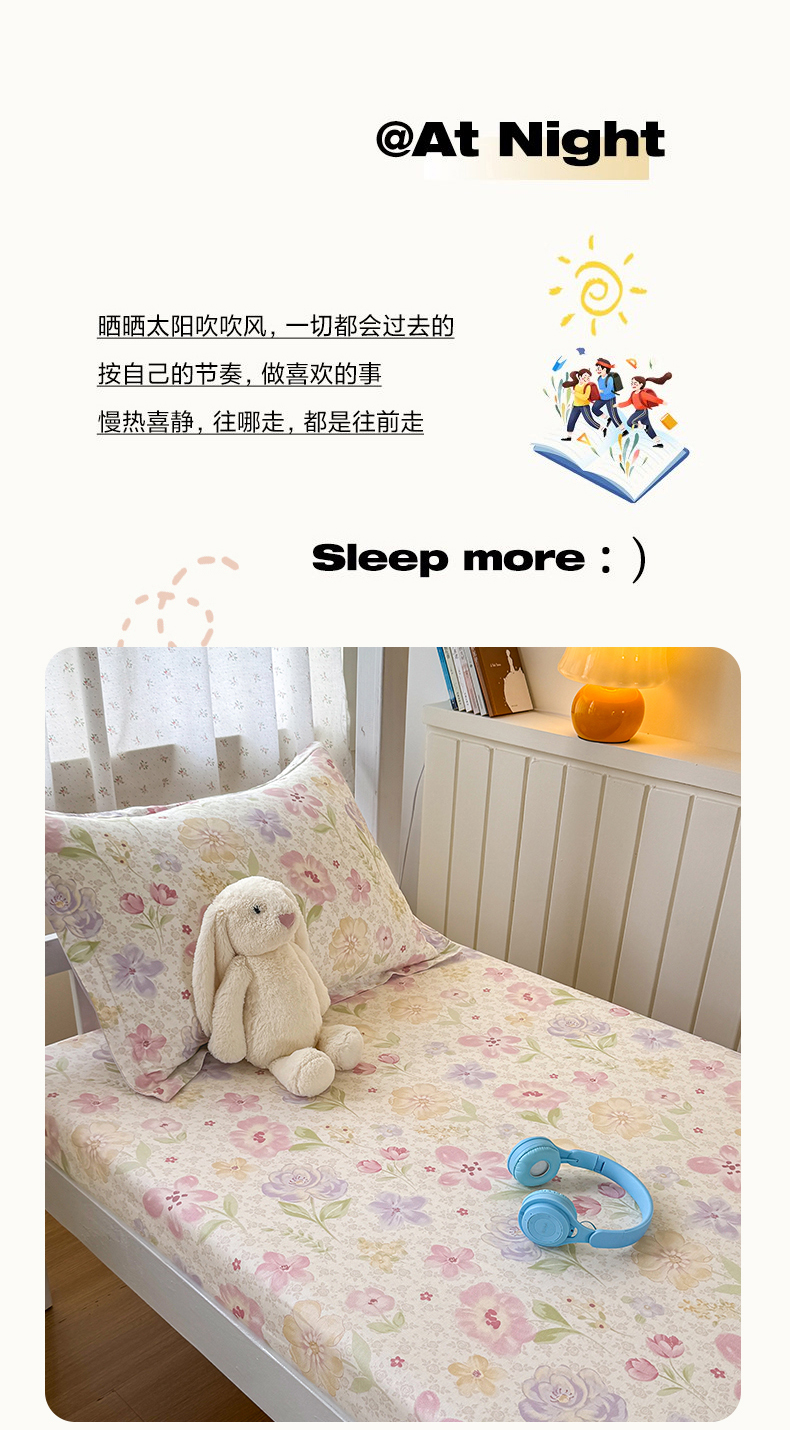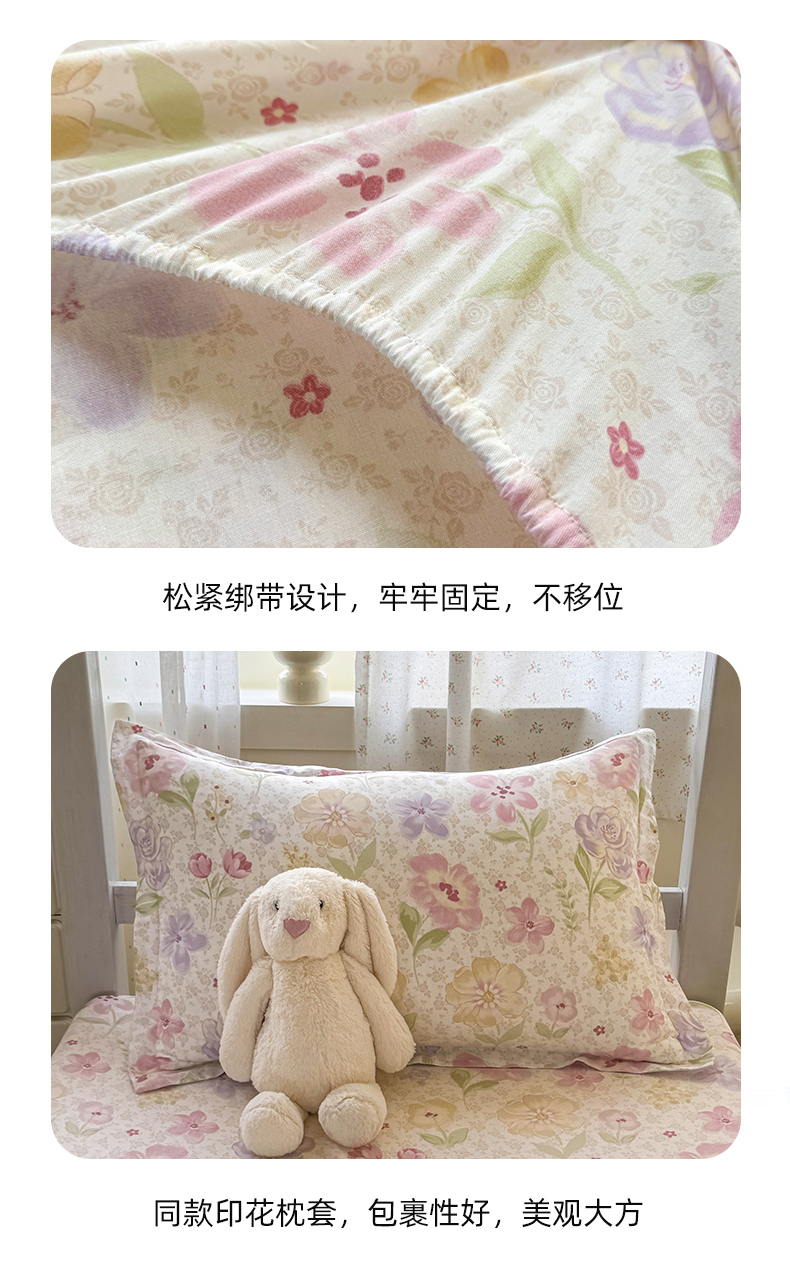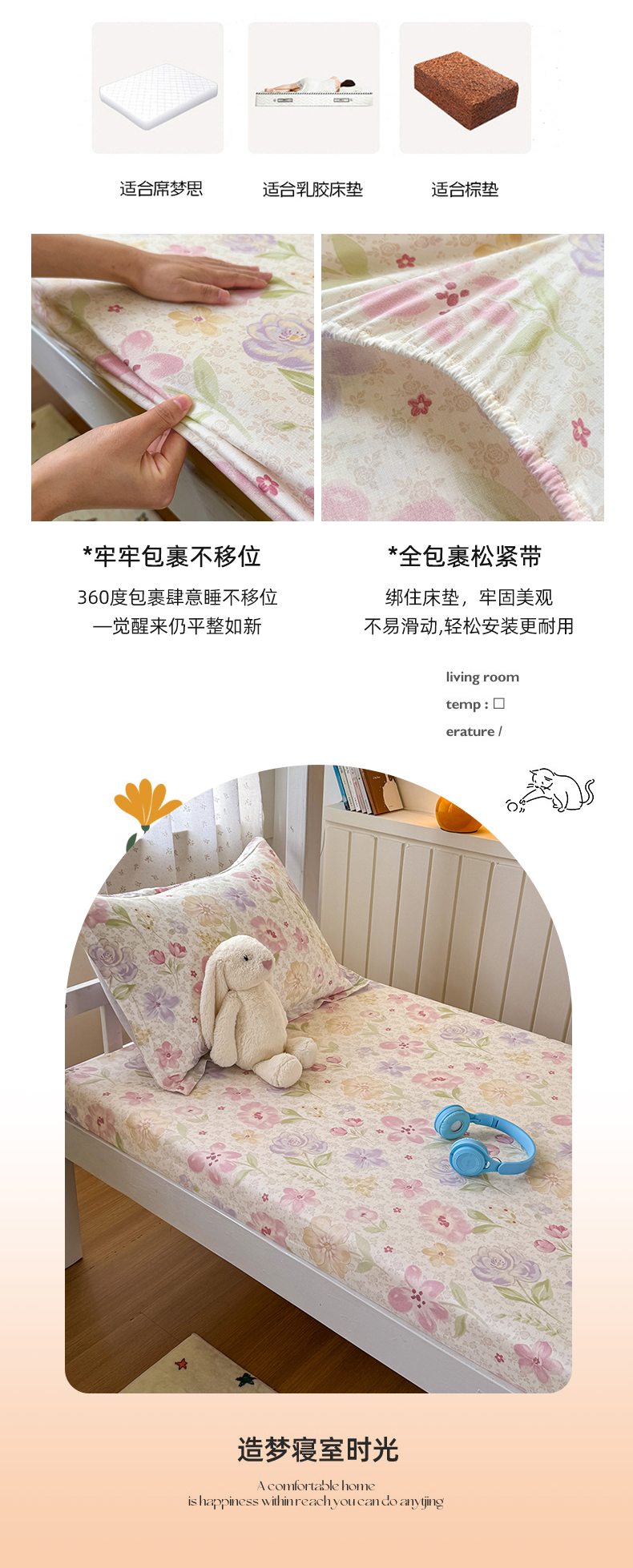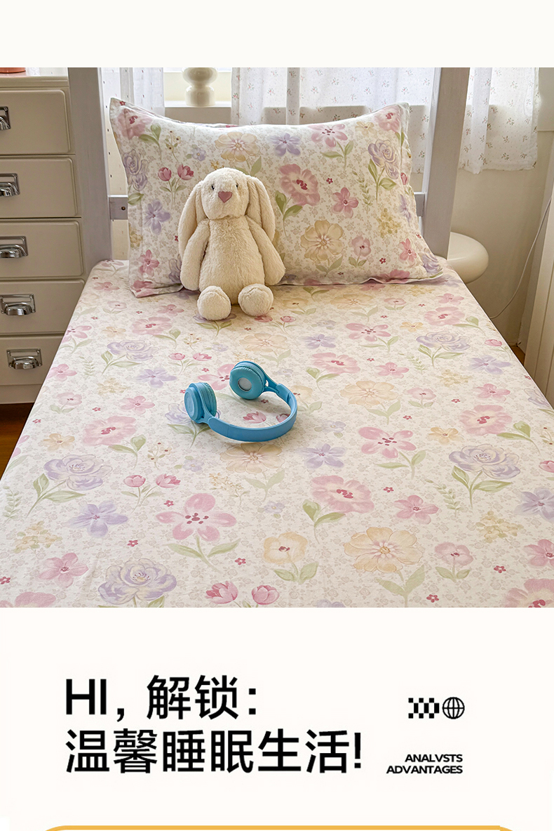 尚帛 2026新款全棉品质喷气印花爆款四件套 多规格套件 单品系列-学生款单床笠 甜心花朵