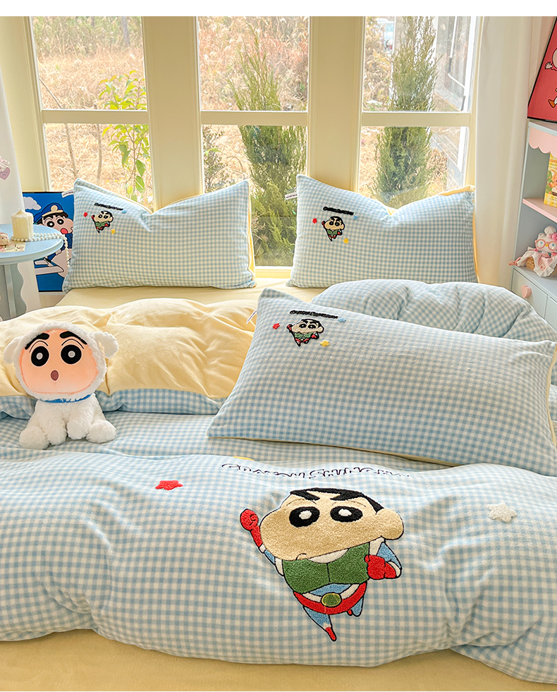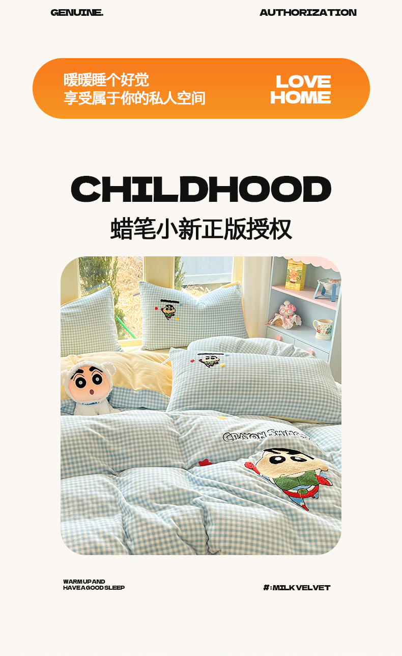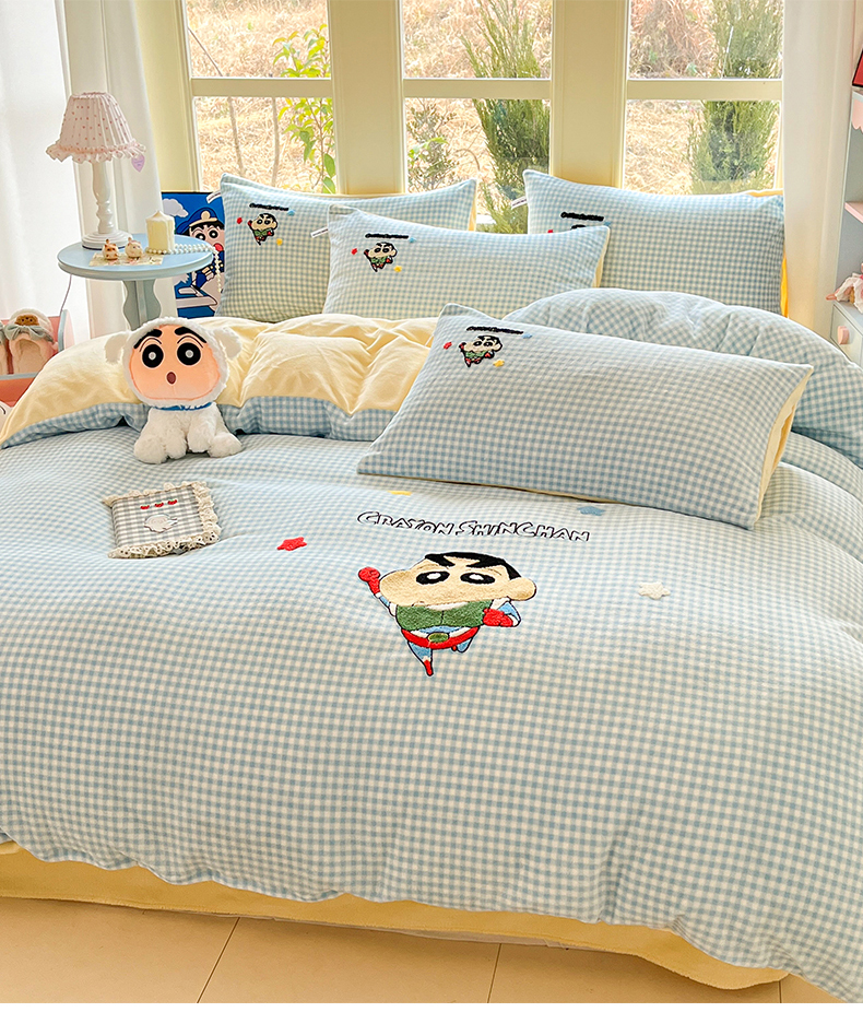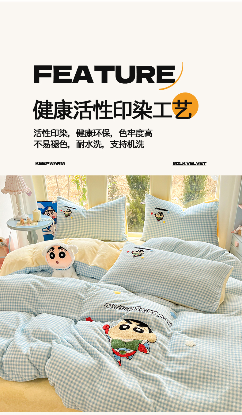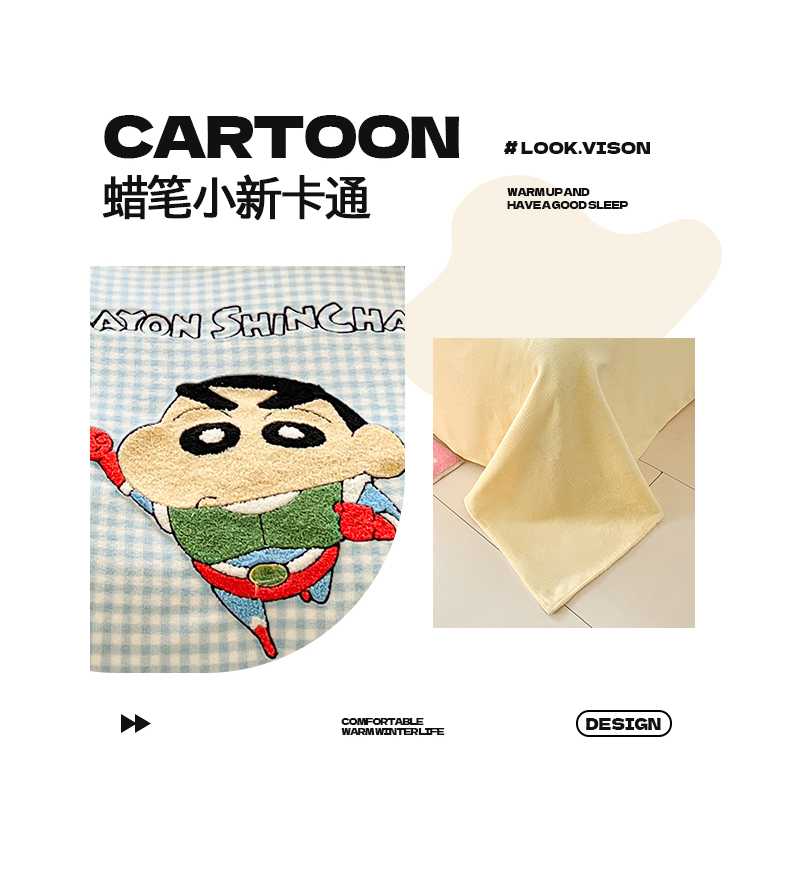 (总)桃子家居 2026新款A类蜡笔小新授权兔毛贴布绣毛巾绣印加绣卡通加厚牛奶绒系列四件套,绒贴布绣-小新日记,绒贴布绣-超人小新,绒贴布绣-快乐小新,绒贴布绣-贪睡小新,绒贴布绣-小新乐园