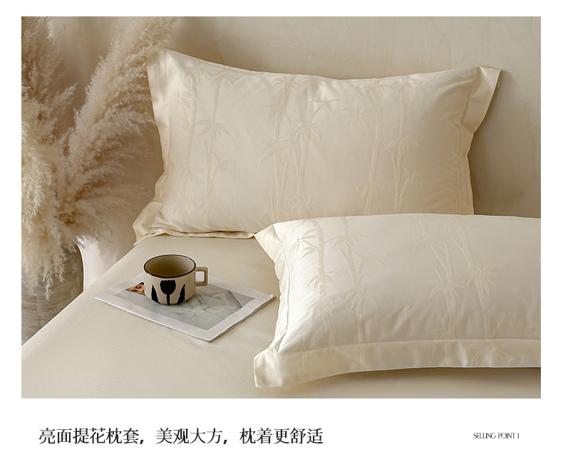 商品名称:笙意家纺 2026新款A版60S亮面提花B版13372全棉四件套 清风竹影-嫩绿
