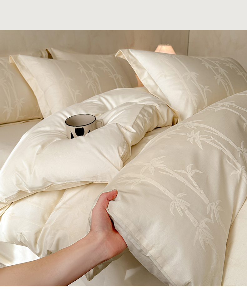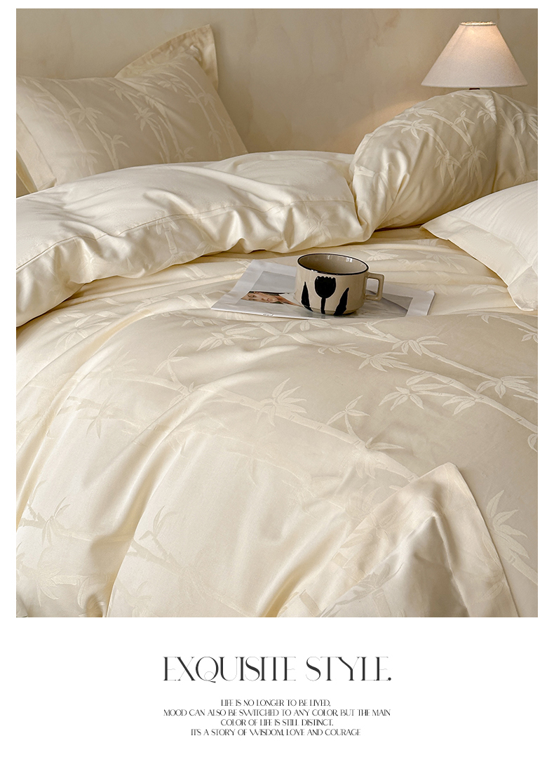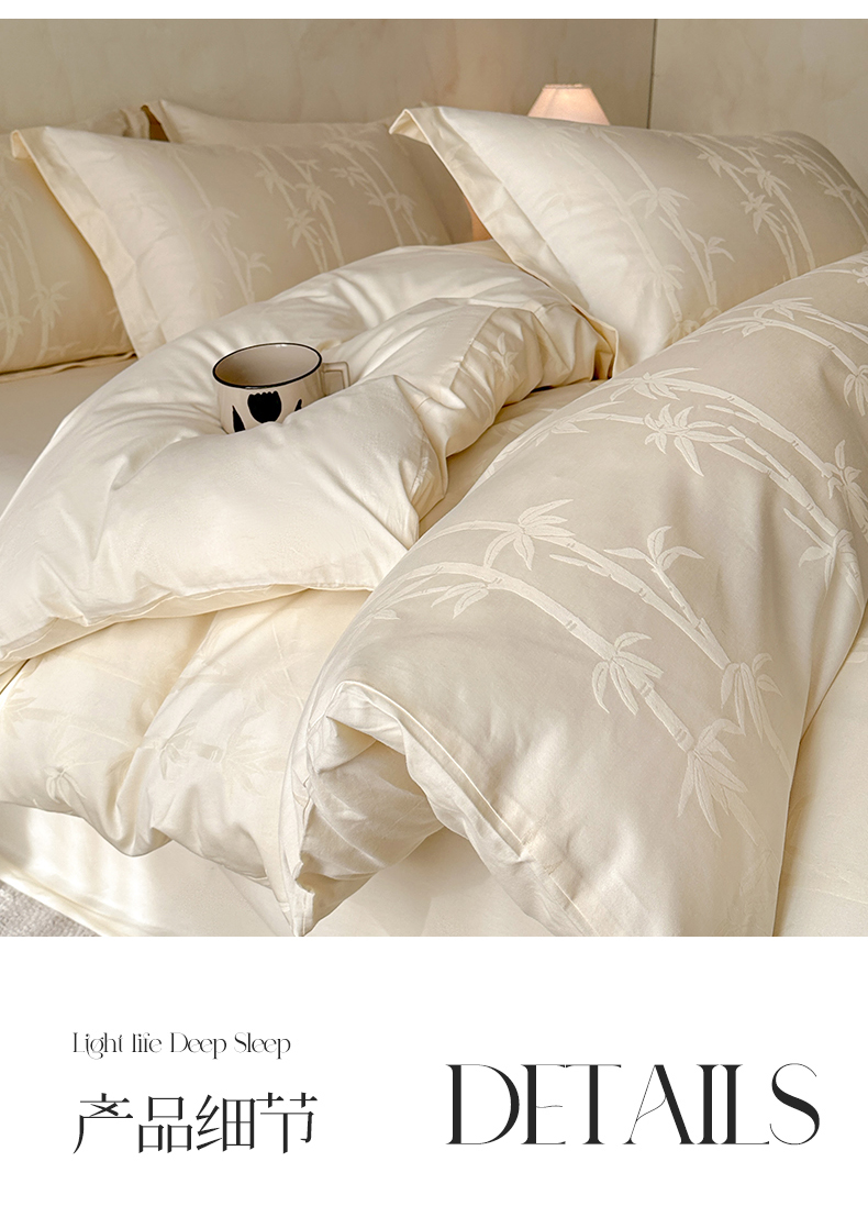 笙意家纺 2026新款A版60S亮面提花B版13372全棉四件套 清风竹影-嫩绿