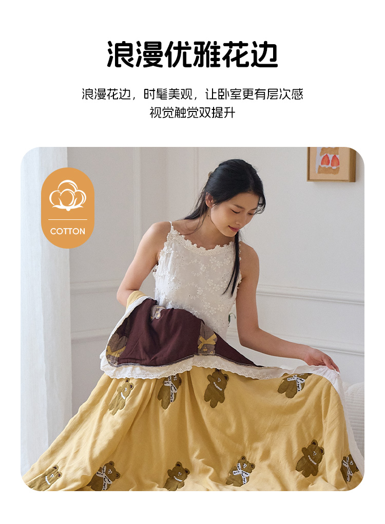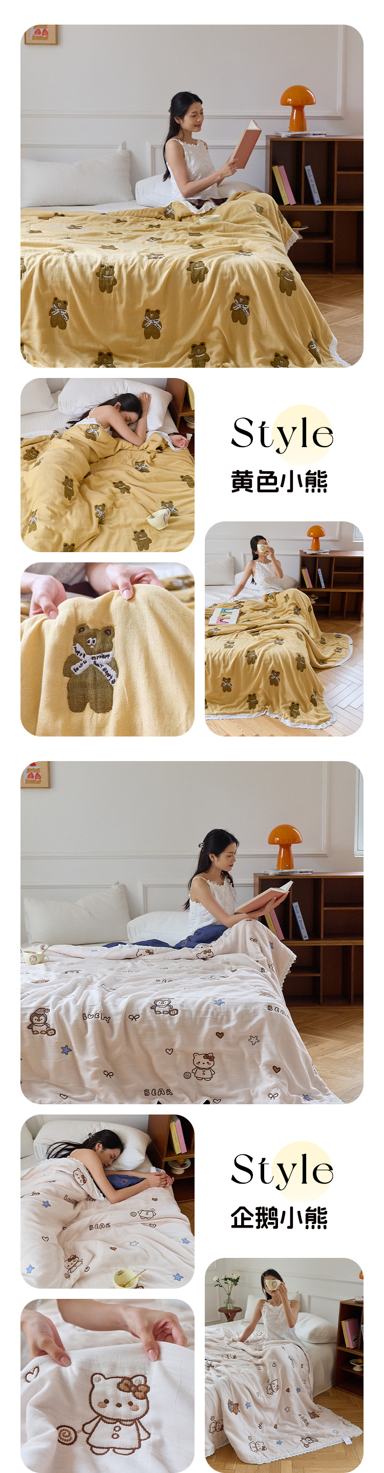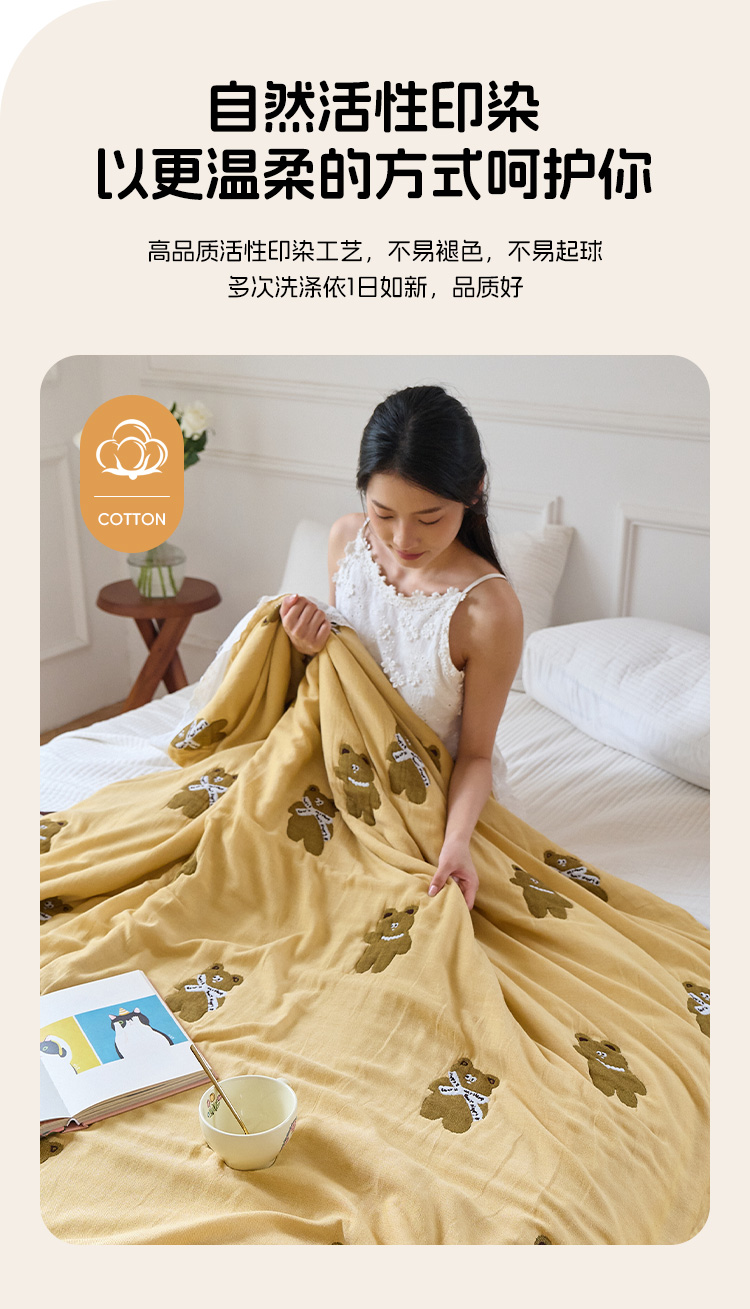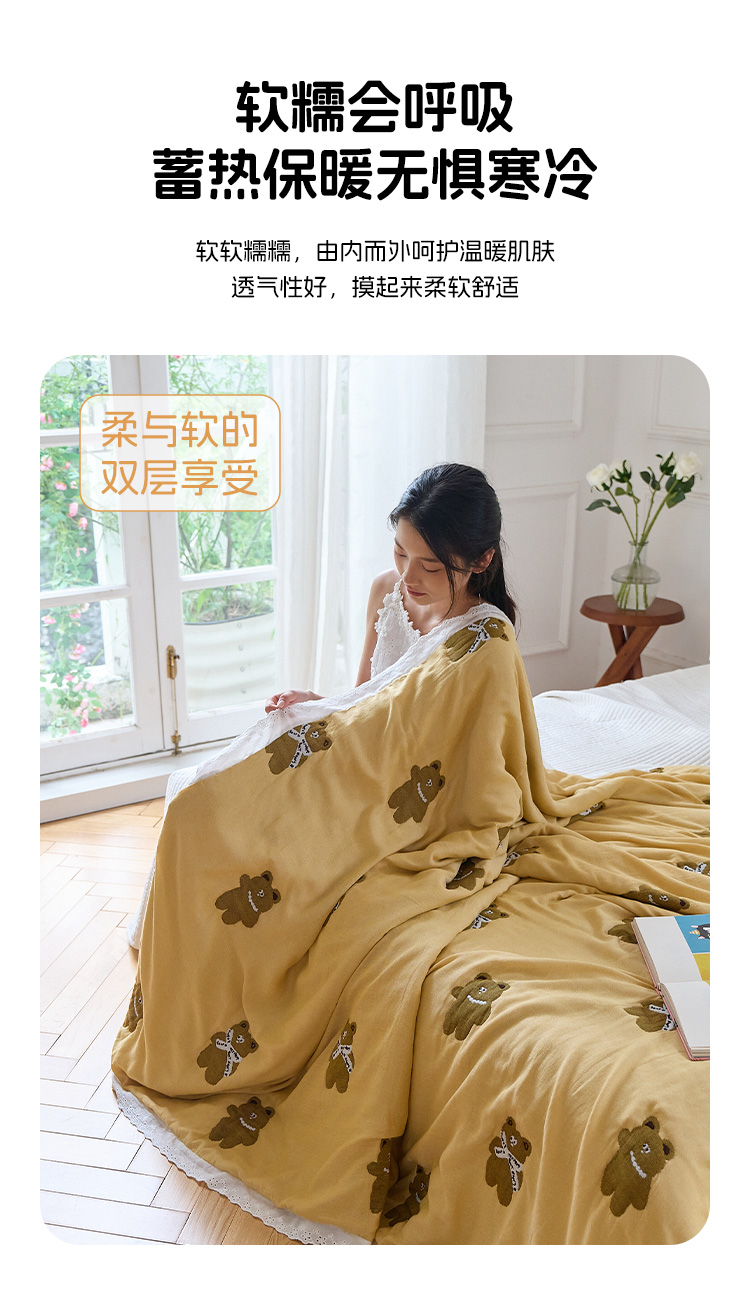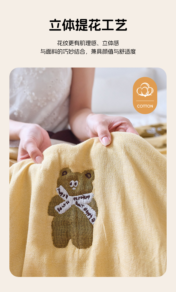 商品名称:沐瑟家纺 2026新款A类全棉纱布泡芙被夏被被子被芯 黄色小熊