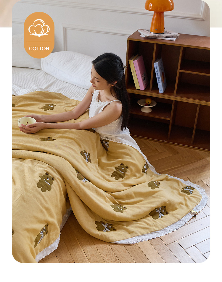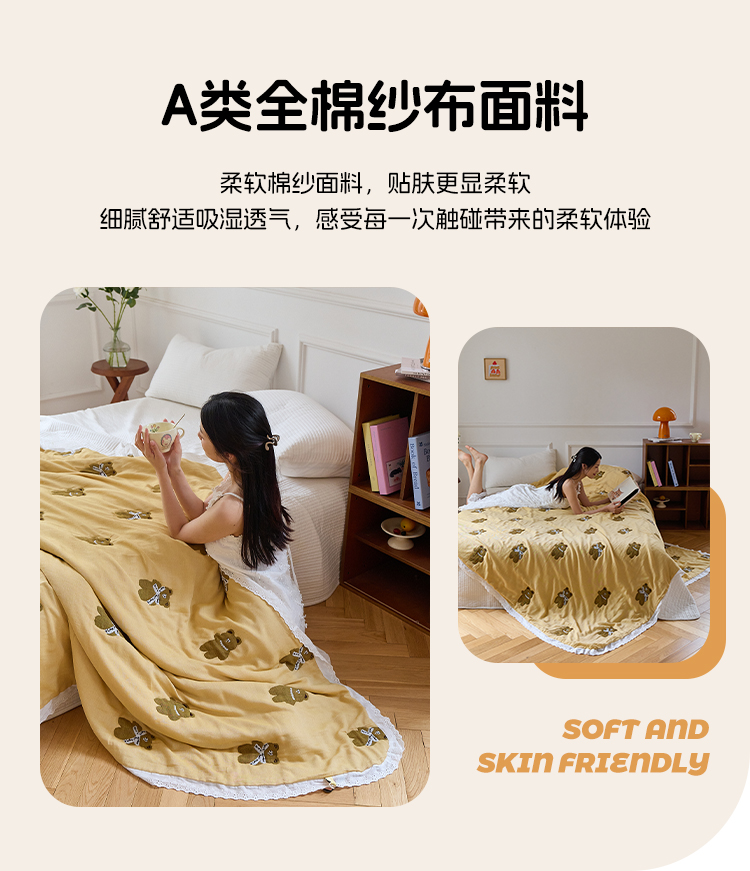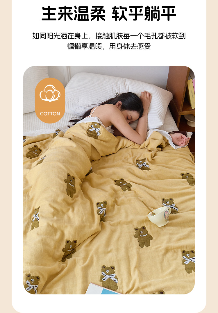 沐瑟家纺 2026新款A类全棉纱布泡芙被夏被被子被芯 黄色小熊