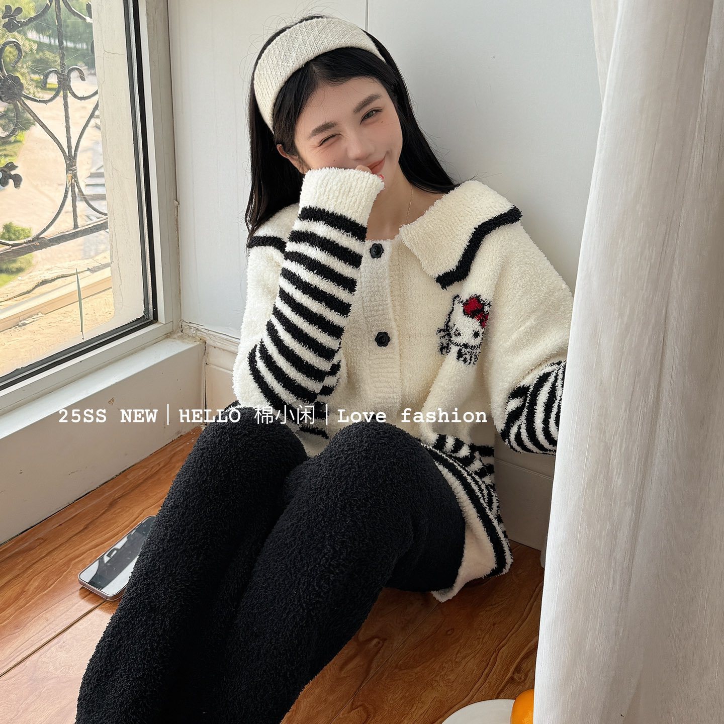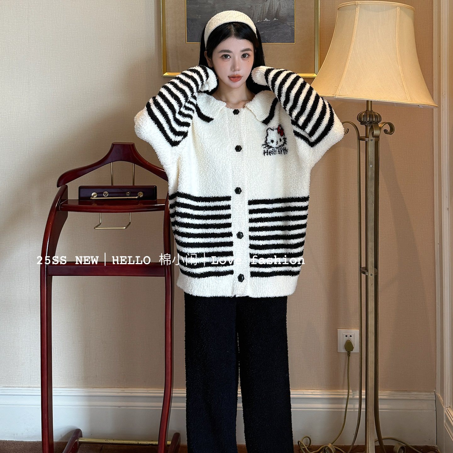 (总)妍景家居生活馆 2026新款软绵绵波点猫咪黑家居服睡衣套装,波点猫咪黑