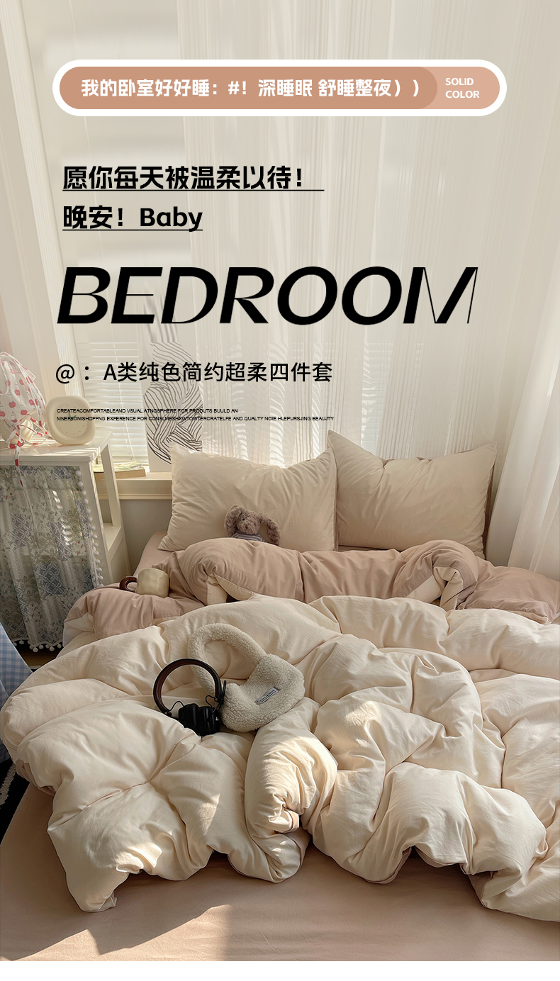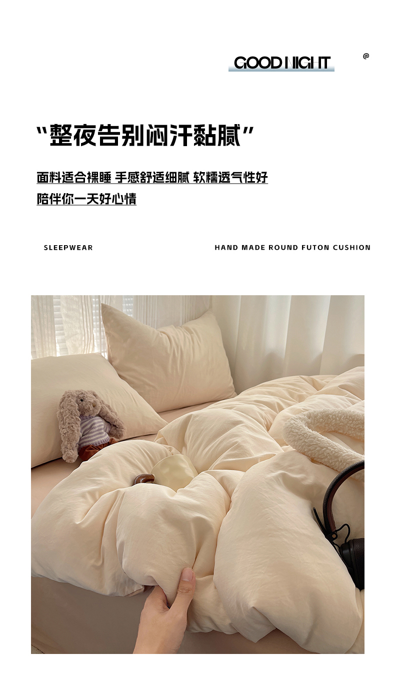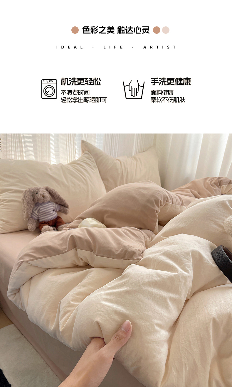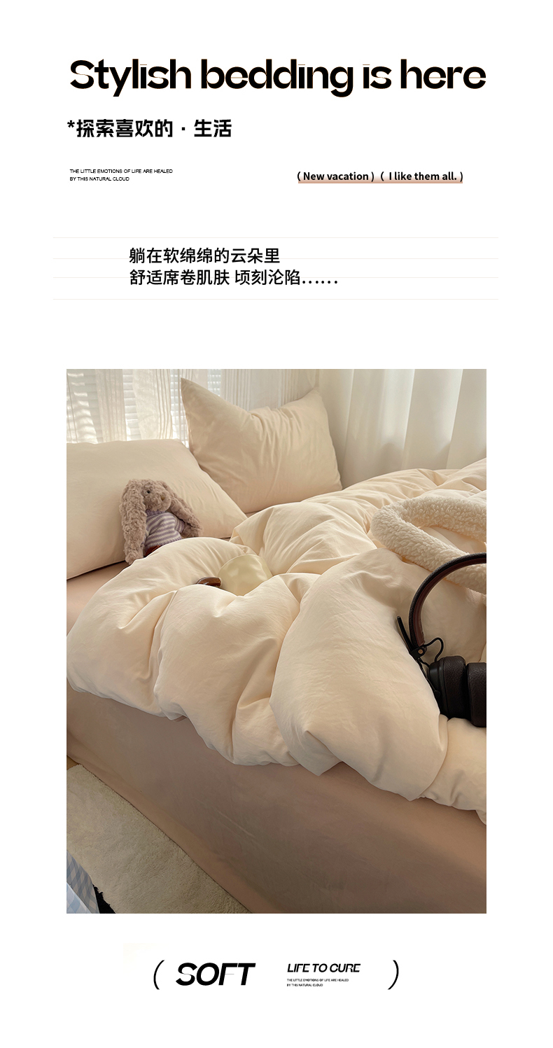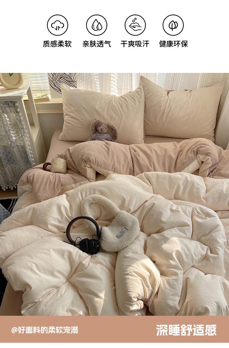 当前位置: 91家纺网 > 商品网购 > 床品套件 > 四件套 > 水洗棉四件套 > 沐芷 2026 纯色水洗棉A类四件套105g床上用品床单被套三件套---【提供买家秀】 杏色奶茶