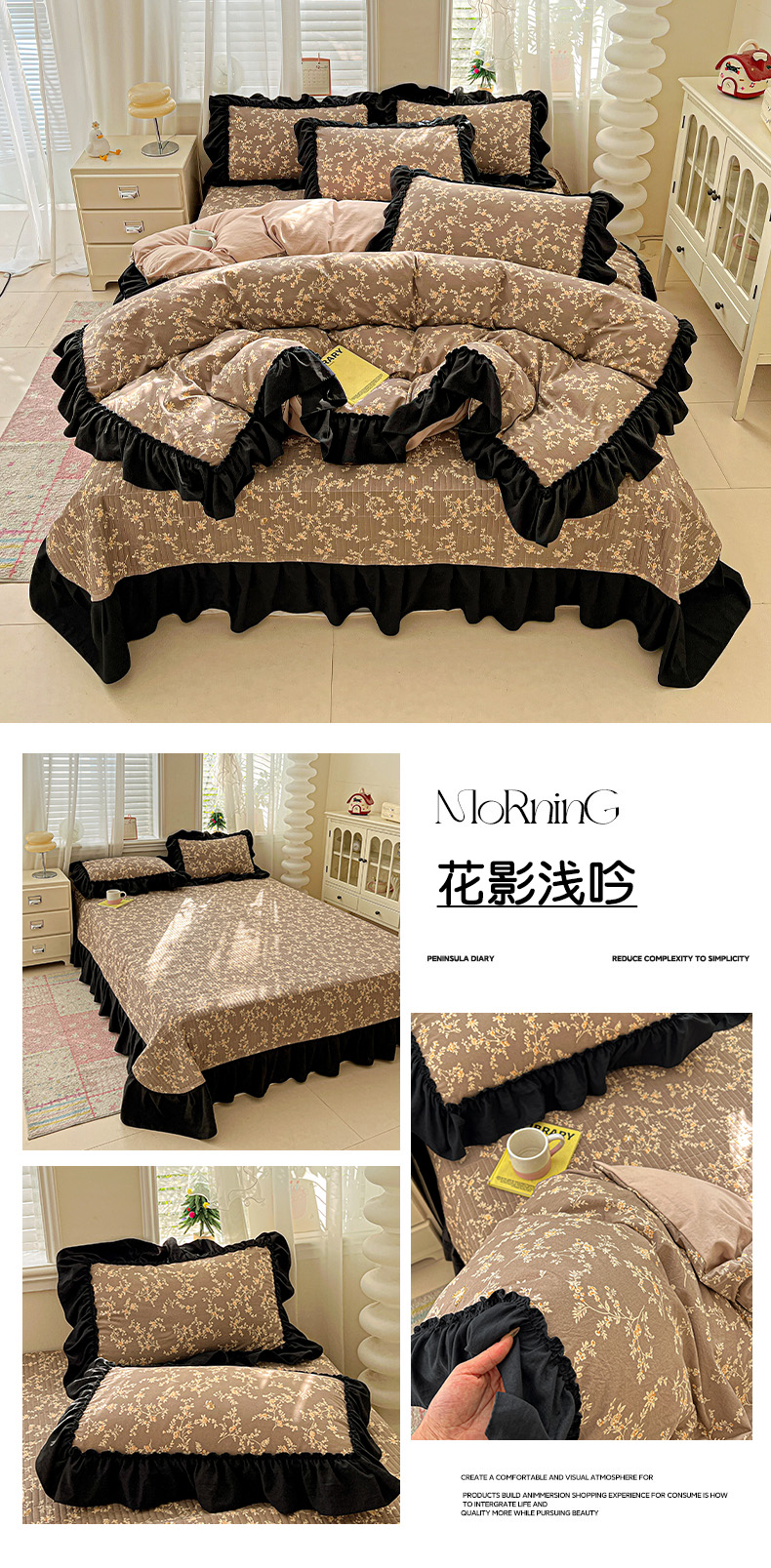 当前位置: 91家纺网 > 商品网购 > 床品套件 > 四件套 > 其它四件套 > 富米莱(原臻工厂) 2026新款法式赫本风大花边A类古法仿棉云感纱床盖床裙四件套-场景二 花影浅吟