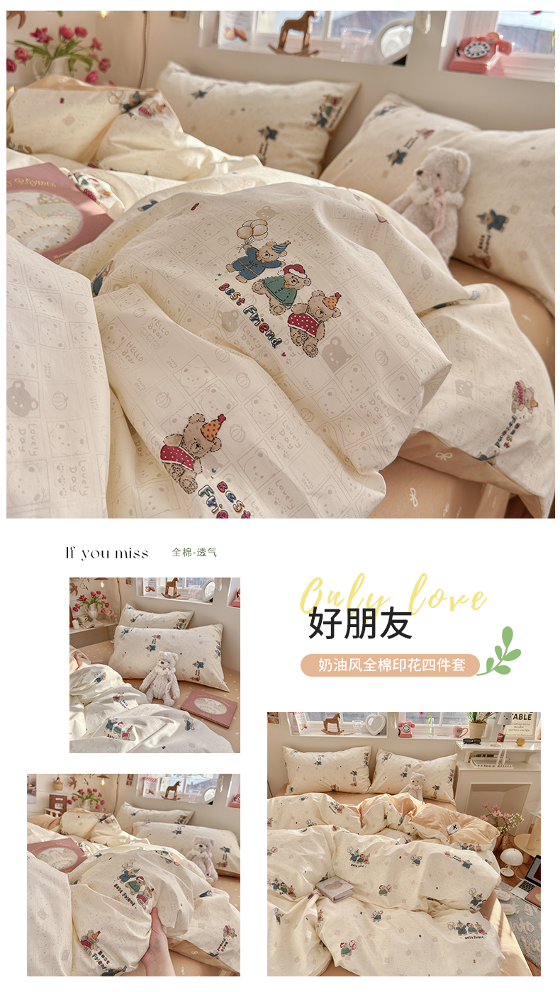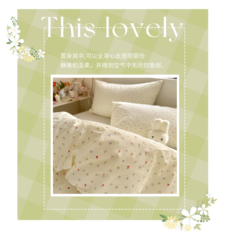 当前位置: 91家纺网 > 商品网购 > 床品套件 > 四件套 > 全棉普通四件套 > 捌月 2026新款奶油风全棉印花四件套 花屿