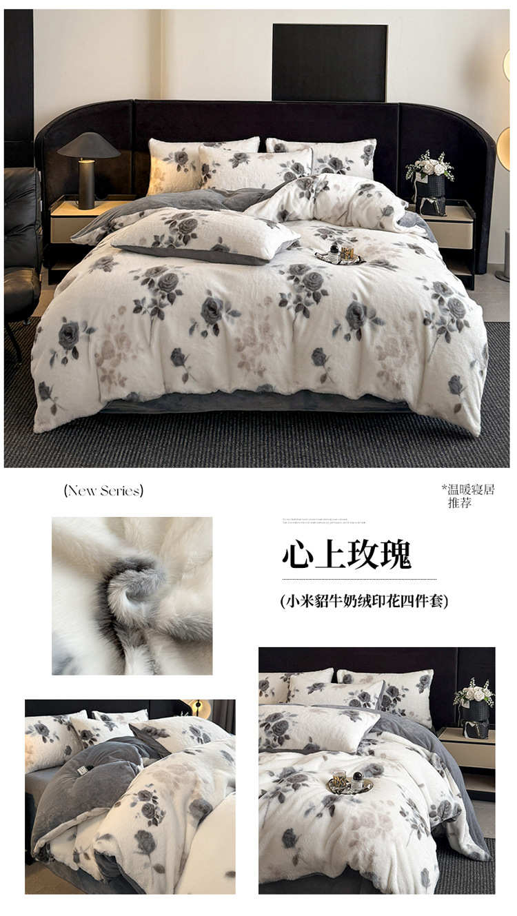 良品汇馆 2026新款【小米貂绒套件】秋冬保暖四件套良品绒布加厚床品牛奶绒冬天印花 小米貂-心上玫瑰