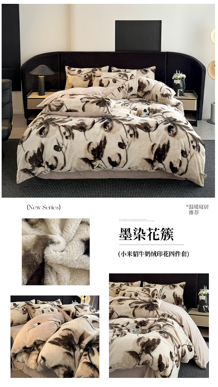 【小米貂绒套件】秋冬保暖四件套良品绒布加厚床品牛奶绒冬天印花,小米貂-蝶语,小米貂-秋华,小米貂-心上玫瑰,小米貂-墨韵花影,小米貂-墨染花簇,小米貂-棕影绘花