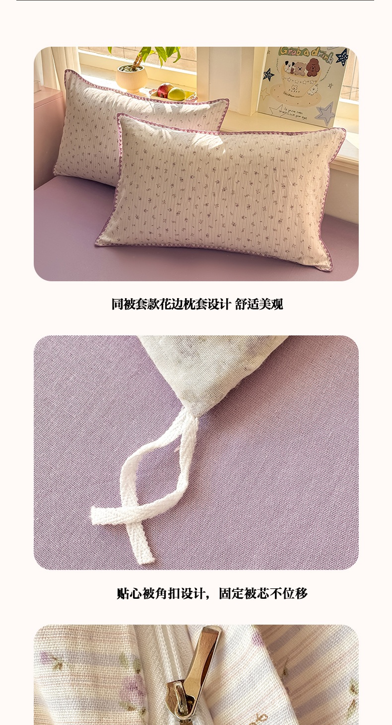 当前位置: 91家纺网 > 商品网购 > 床上用品 > 枕套 > 对白 2026新款A类全棉纯棉有氧双层纱贝壳边三角针单枕套枕套单件 花颜-紫