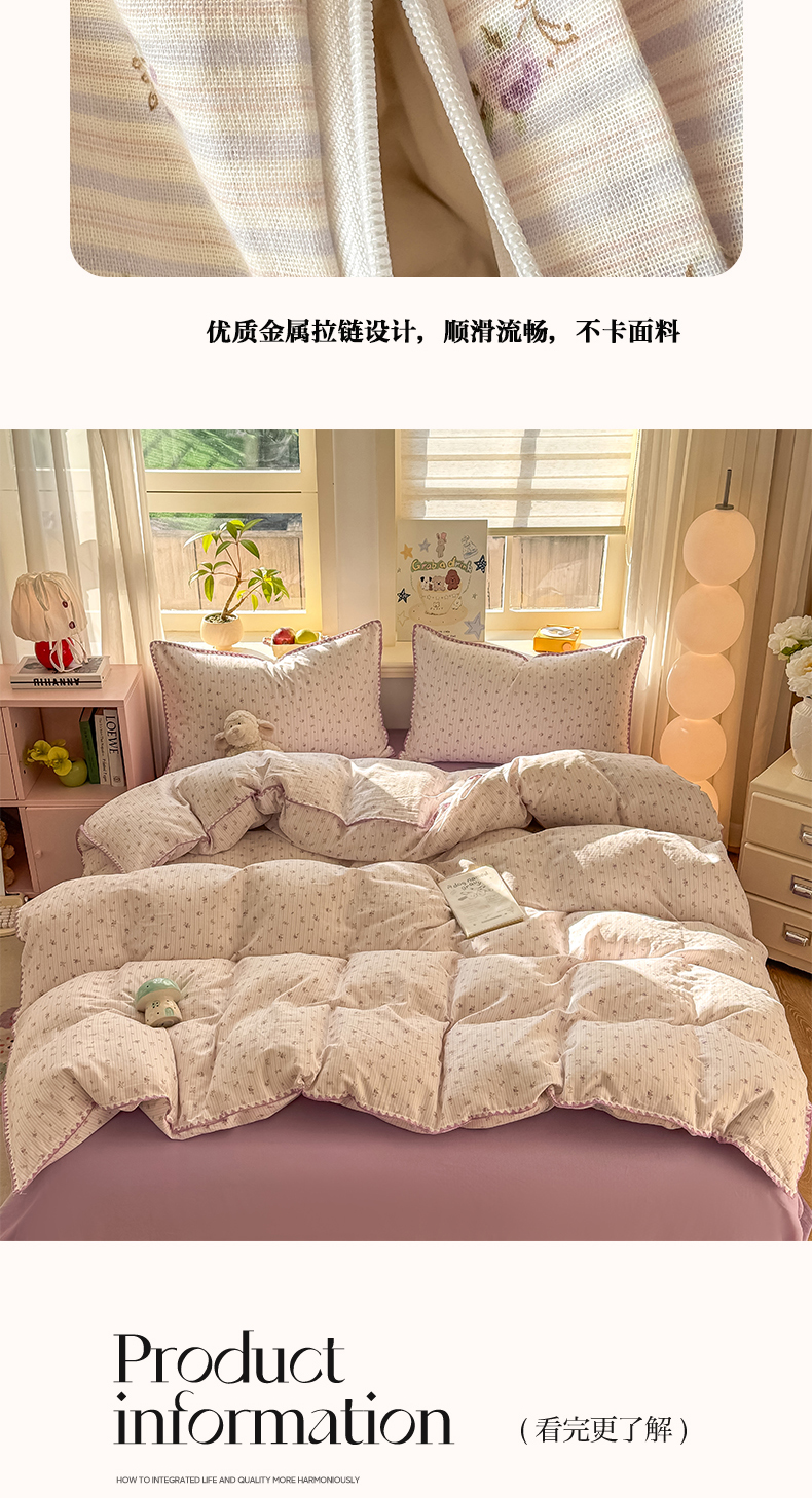 • 91家纺网 家纺一手货源 找家纺 (总)对白 2026新款ins风全棉色织水洗棉纯棉简约极简格子系列四件套-草莓奶昔【提供买家秀】,草莓奶昔(枕套格子+小花),草莓奶昔(枕套小花),草莓奶昔(枕套格子)