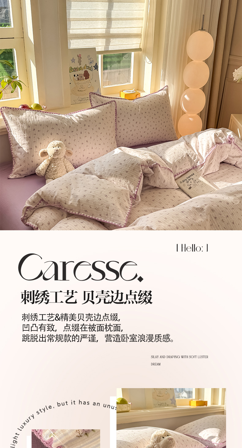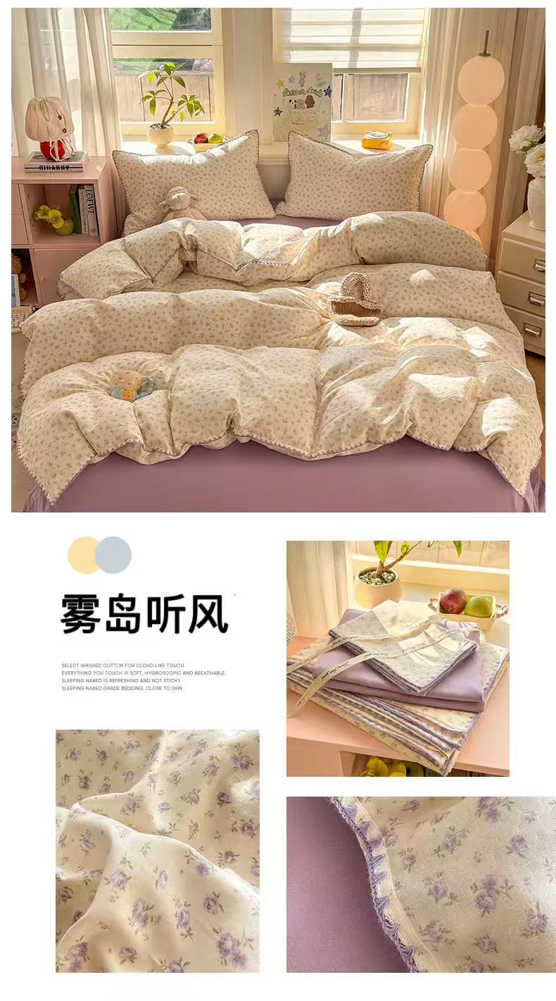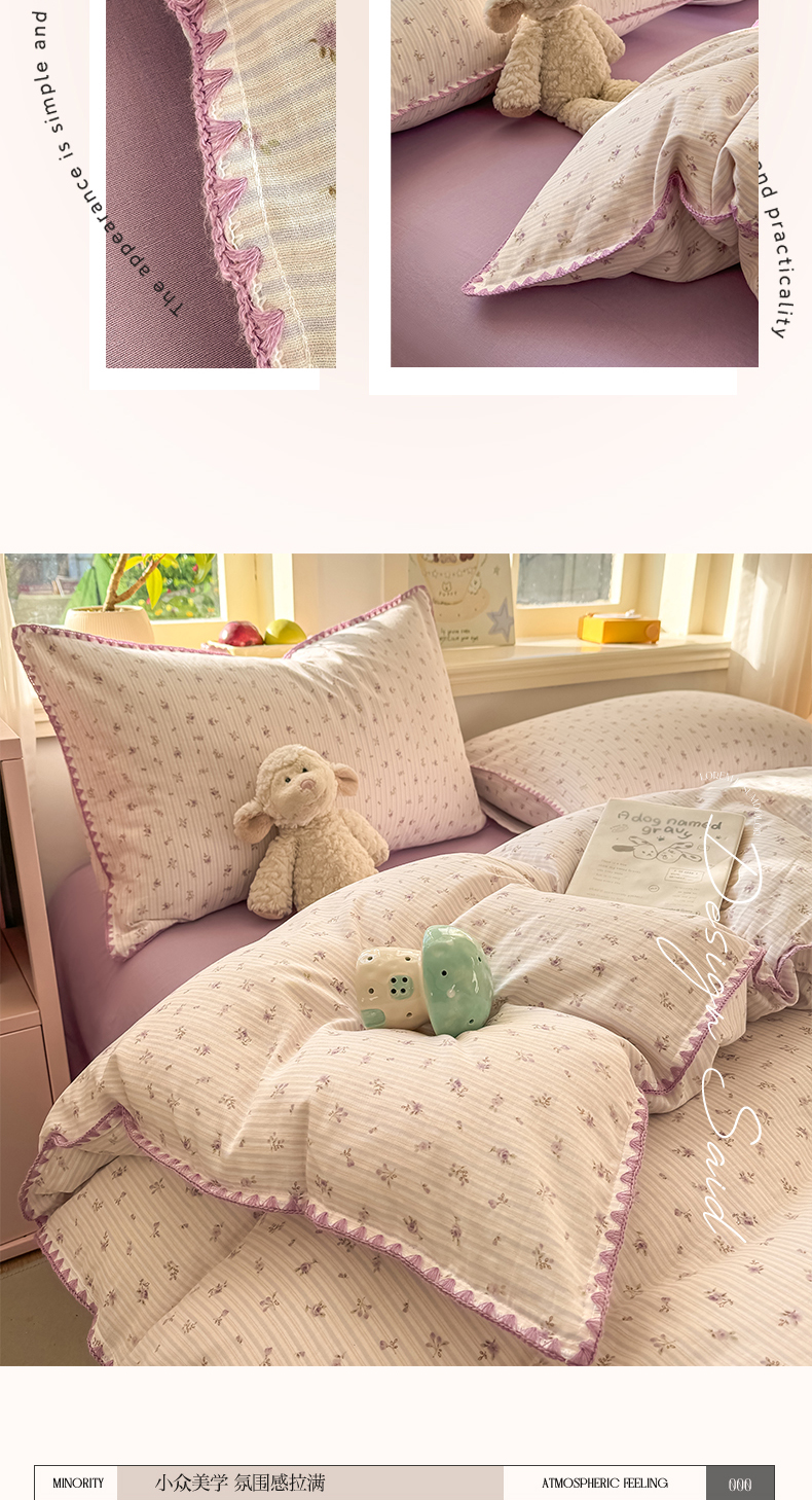 (总)对白 2026新款ins风全棉色织水洗棉纯棉简约极简格子系列四件套-草莓奶昔【提供买家秀】,草莓奶昔(枕套格子+小花),草莓奶昔(枕套小花),草莓奶昔(枕套格子)