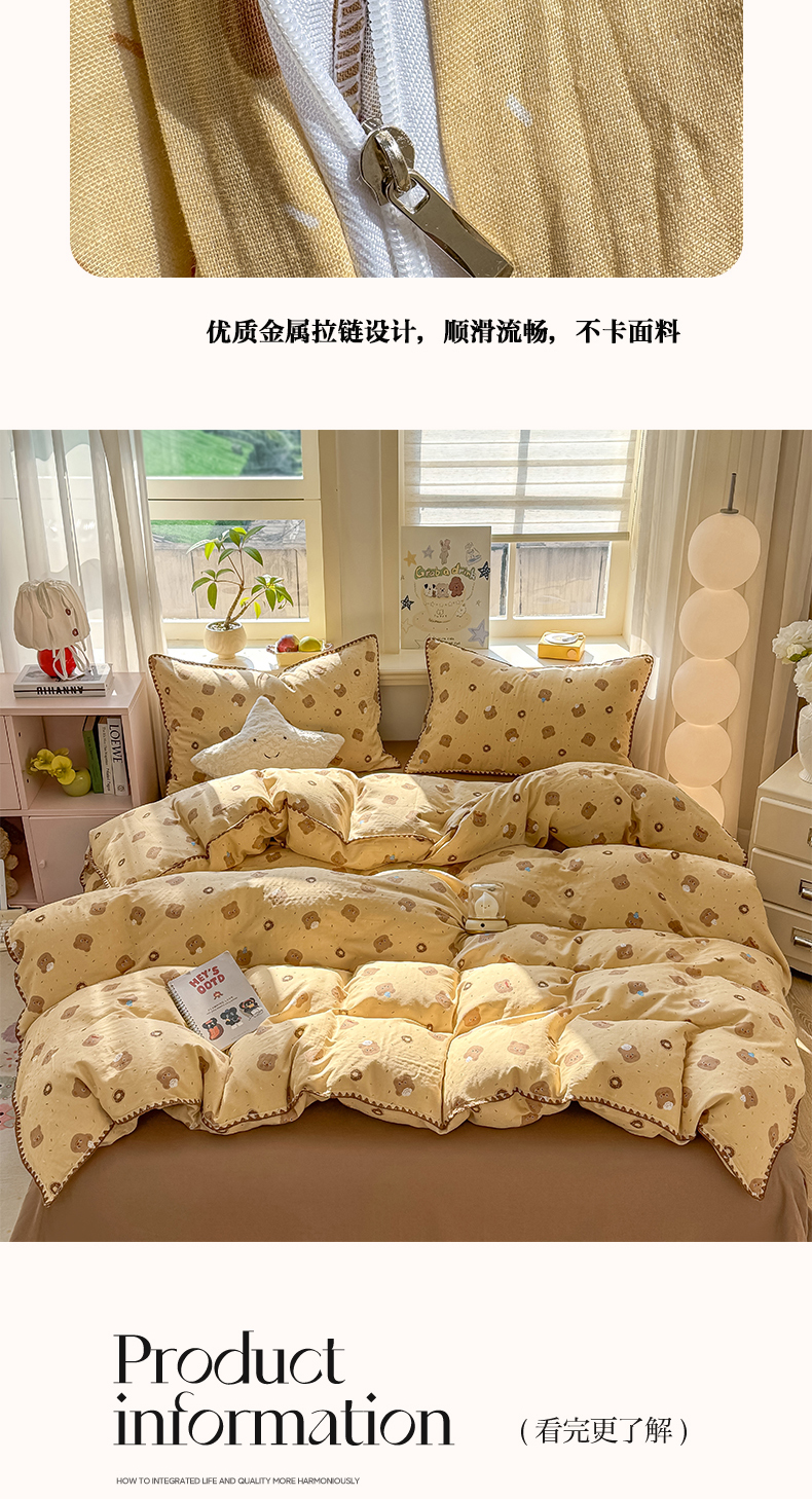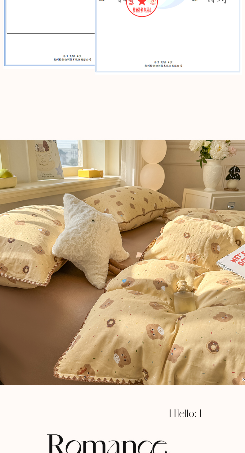 • 91家纺网 家纺一手货源 找家纺 对白 2026新款A类全棉纯棉有氧双层纱贝壳边三角针单枕套枕套单件 小熊奶盖