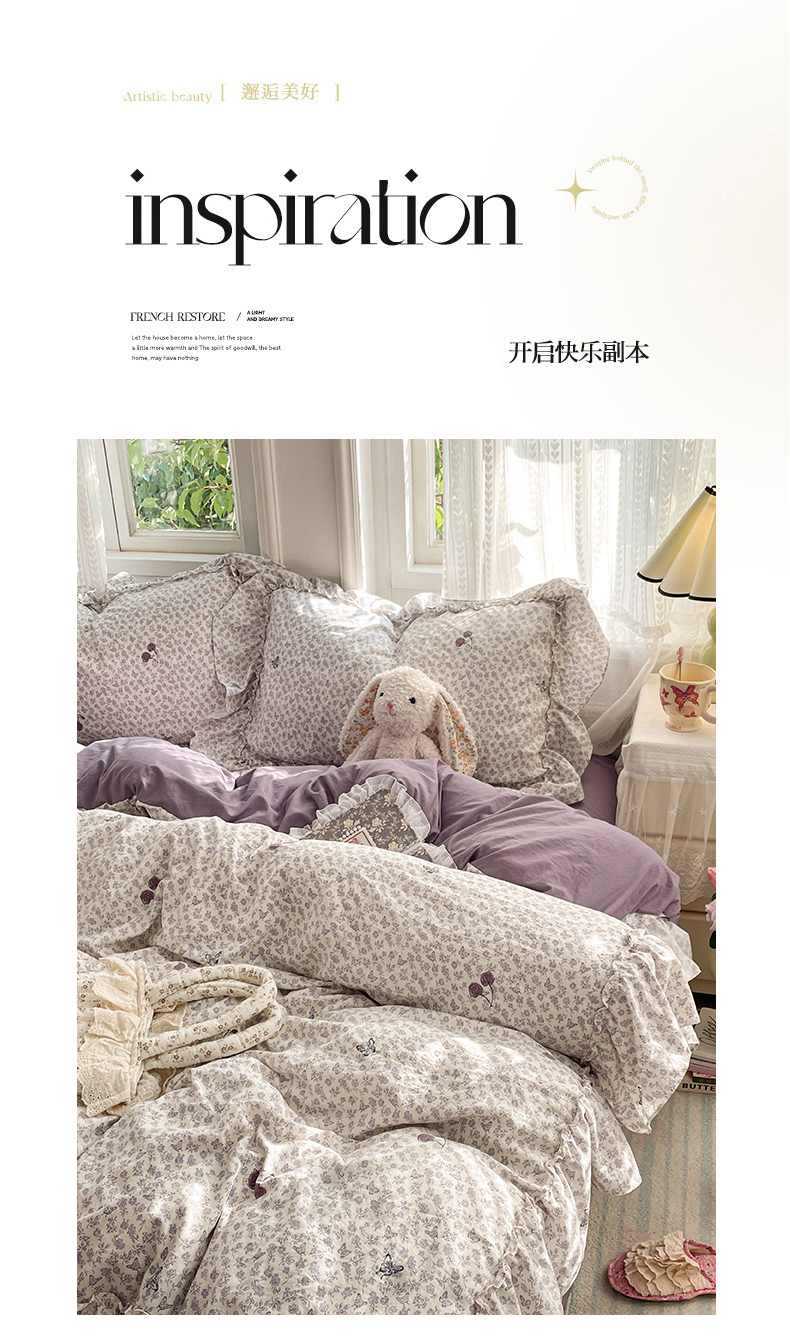 当前位置: 91家纺网 > 商品网购 > 床品套件 > 四件套 > 其它四件套 > 优佳优品 2026新款A类仿棉水洗法式工艺花边四件套 云樱染紫