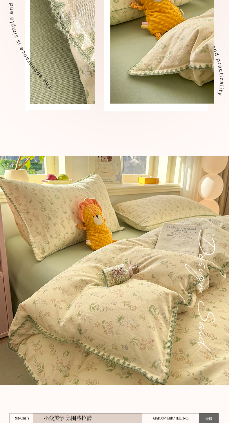 (总)对白 2026新款ins风全棉色织水洗棉纯棉简约极简格子系列四件套-草莓奶昔【提供买家秀】,草莓奶昔(枕套格子+小花),草莓奶昔(枕套小花),草莓奶昔(枕套格子)