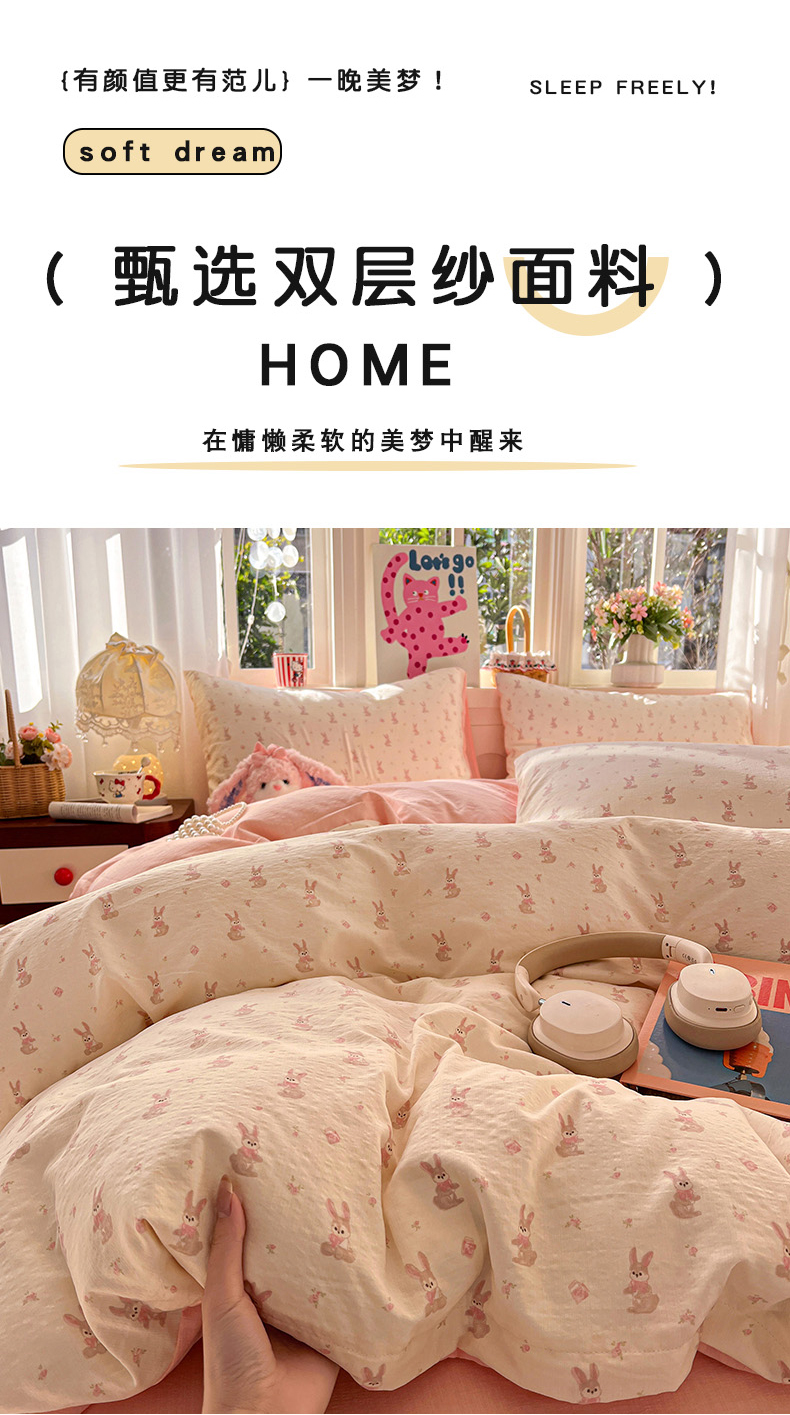 当前位置: 91家纺网 > 商品网购 > 床品套件 > 四件套 > 双层纱四件套 > 水木坊 2026春夏新款云感双层纱可爱系列四件套 调皮腊肠狗