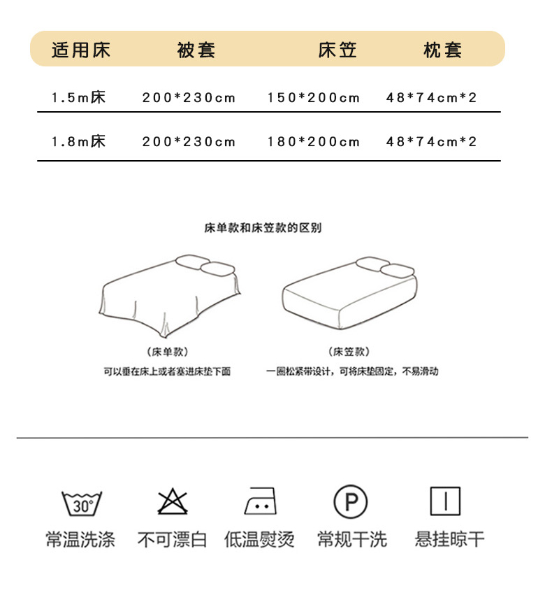 【床笠款】1.8四件套-被套200x230 | ¥52.00 |