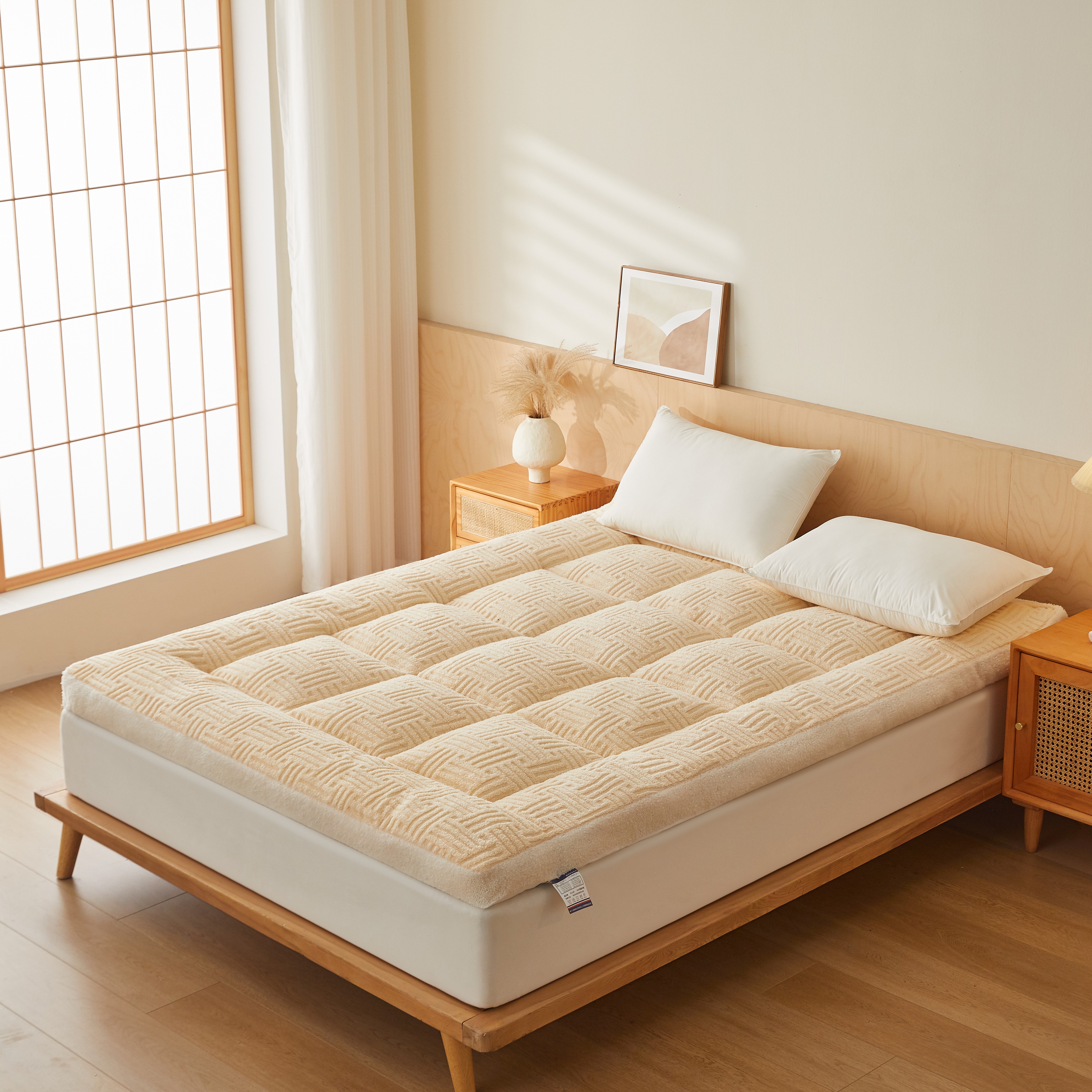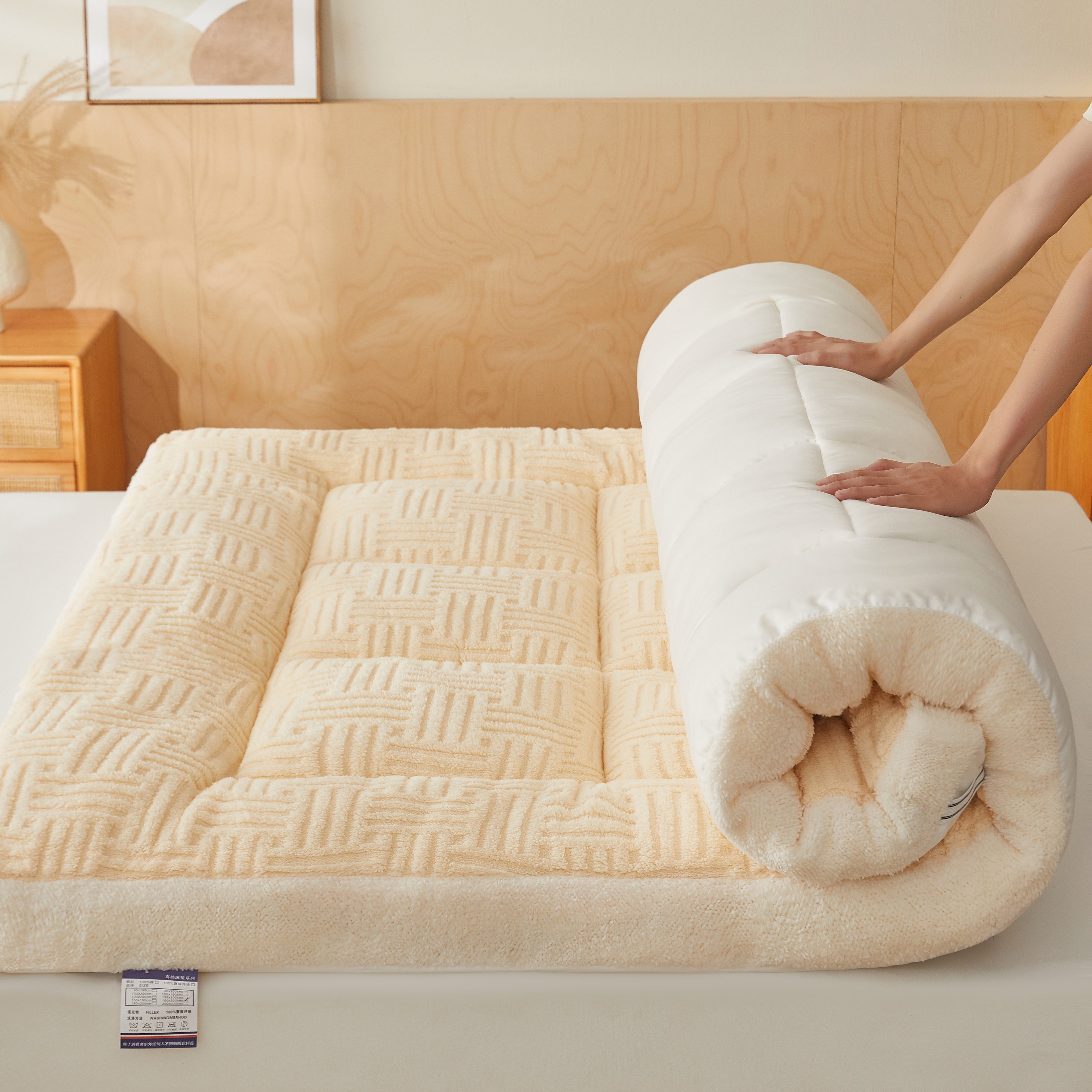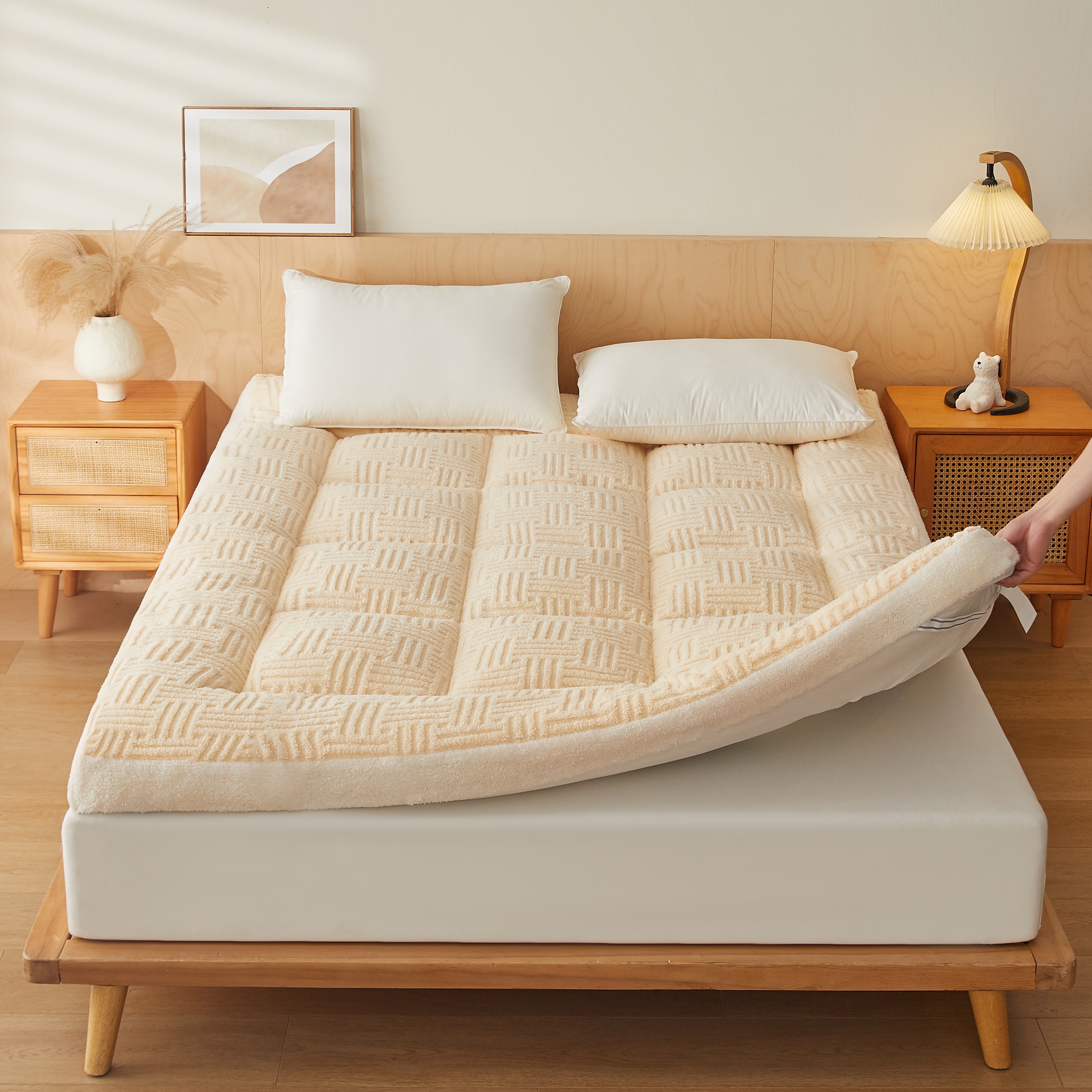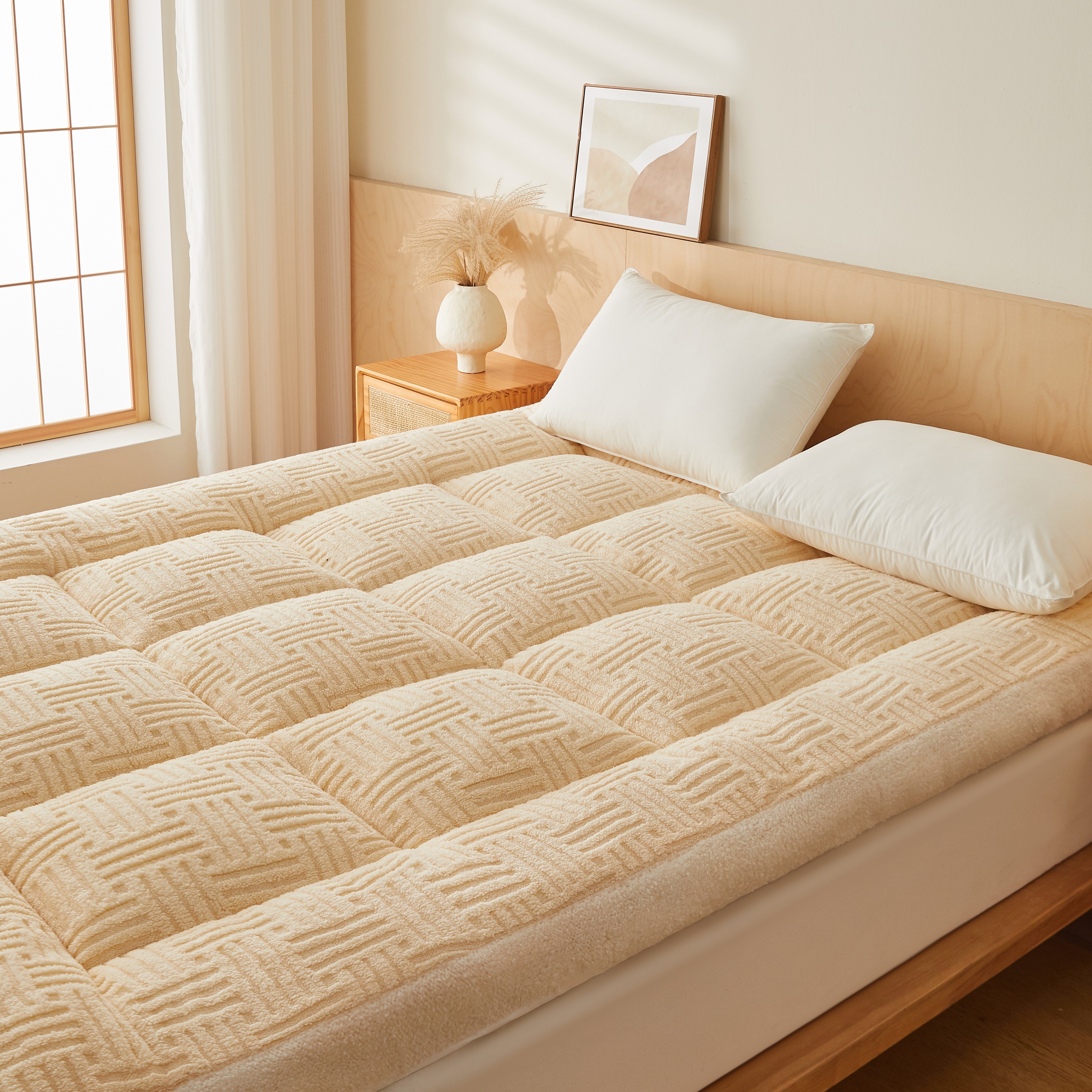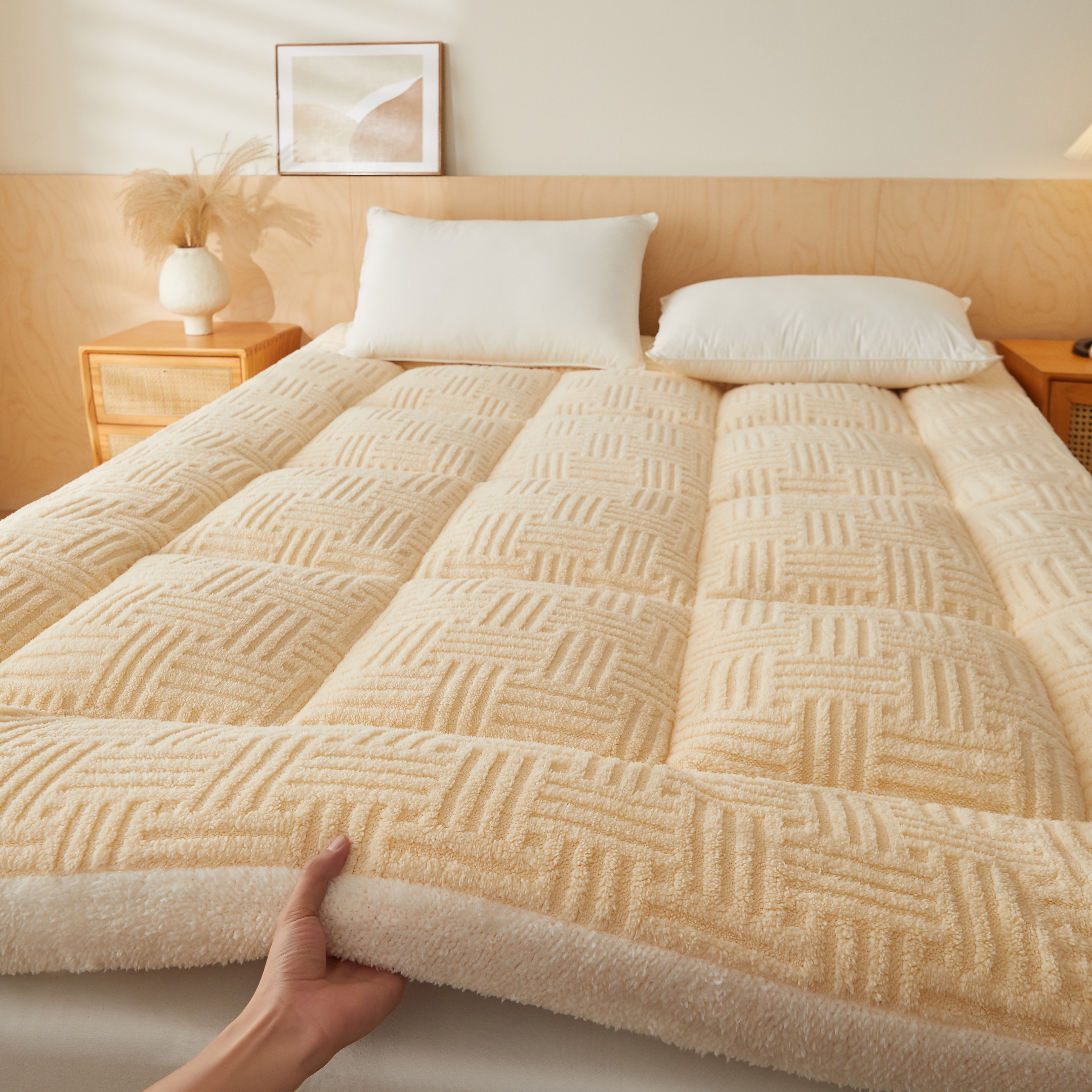 (总)蓝冰家纺 2025新款雕花牛奶绒羊羔绒床垫,宾利兰,粉桃桃,落日橙,绅士灰