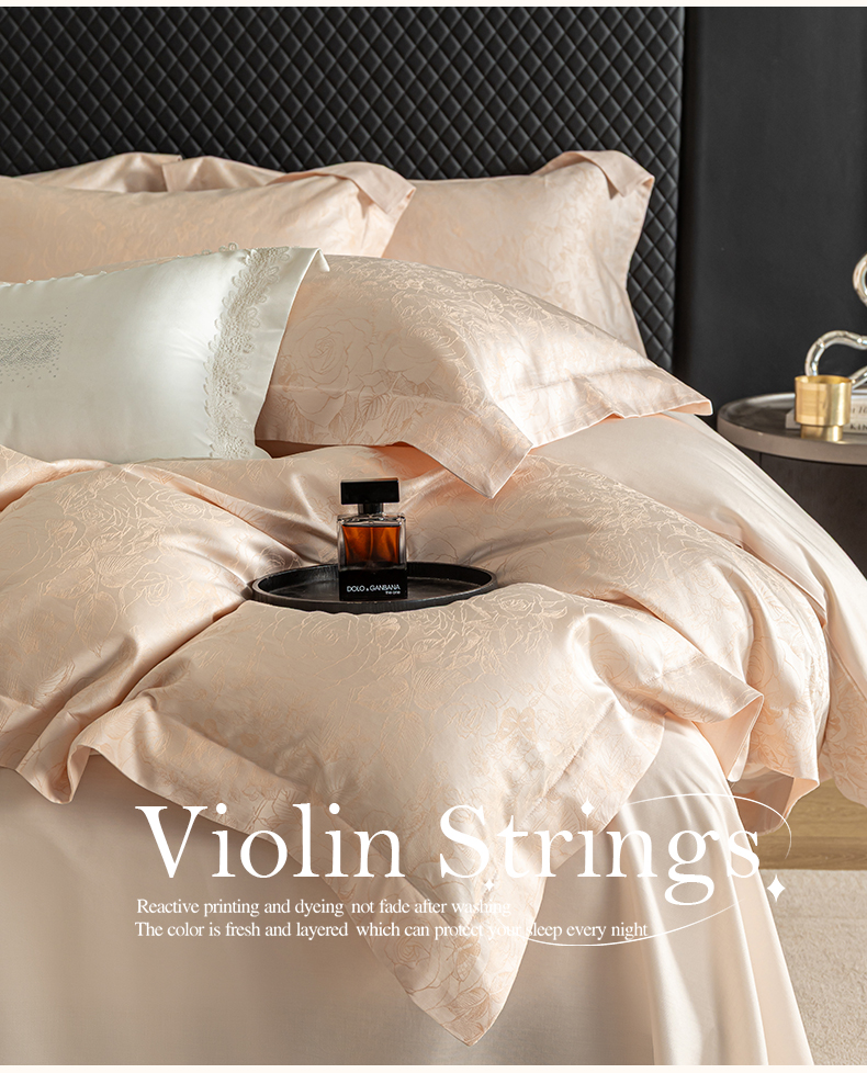 (总)魅都 2025新款100s长绒棉简约织带轻奢风四件套-罗伊,爱马橙,亮粉,浅灰,香槟金,香芋紫