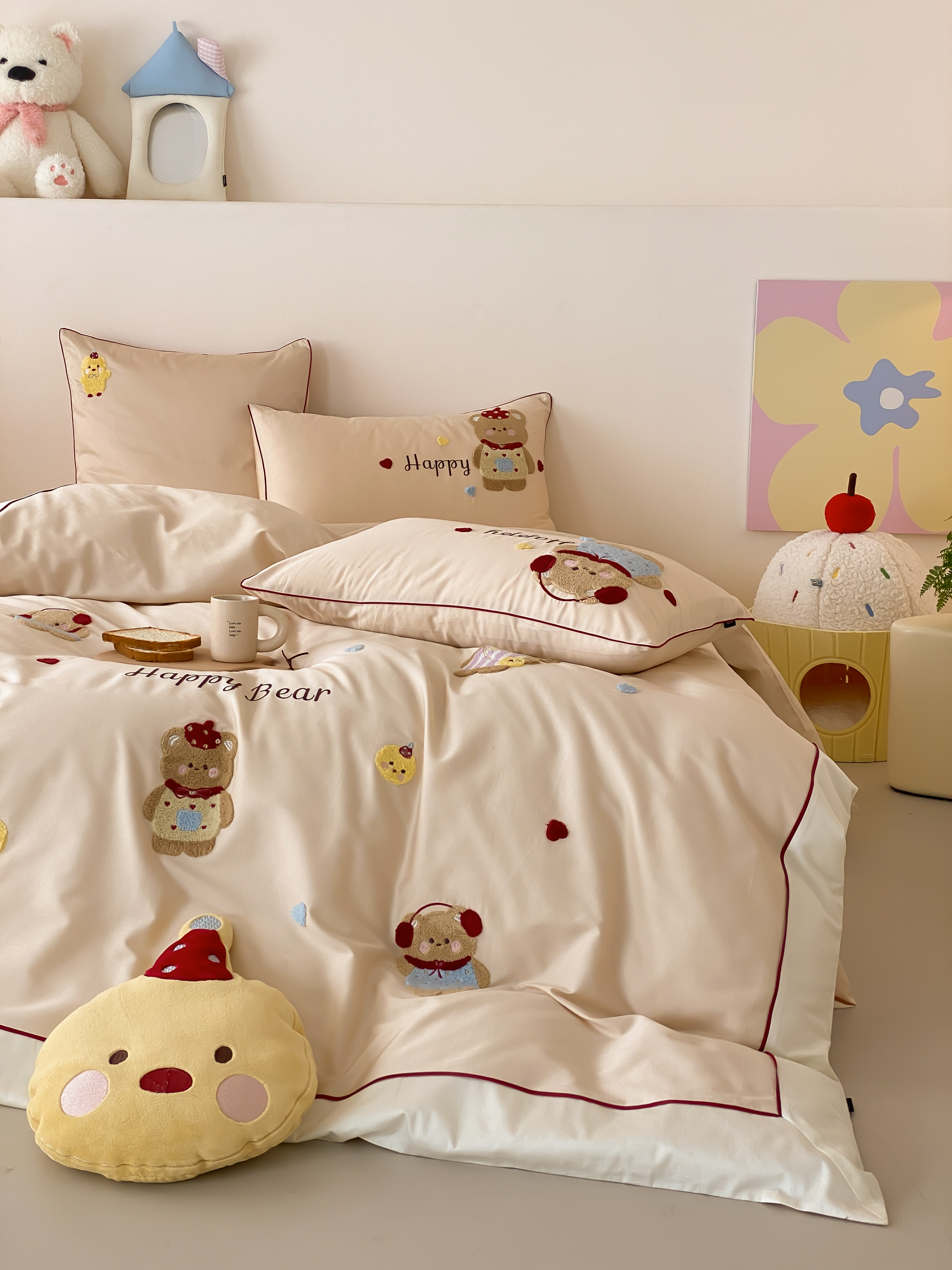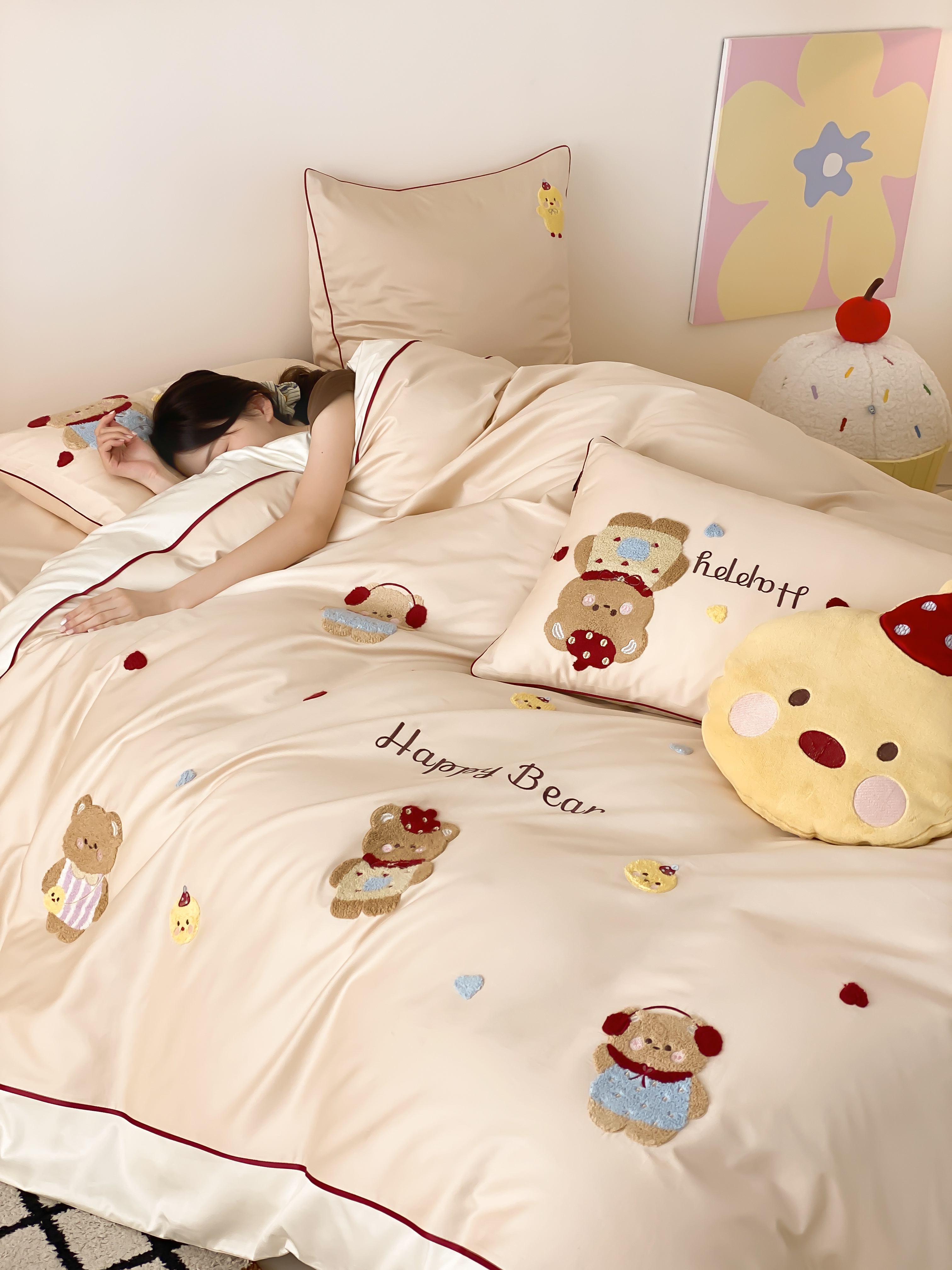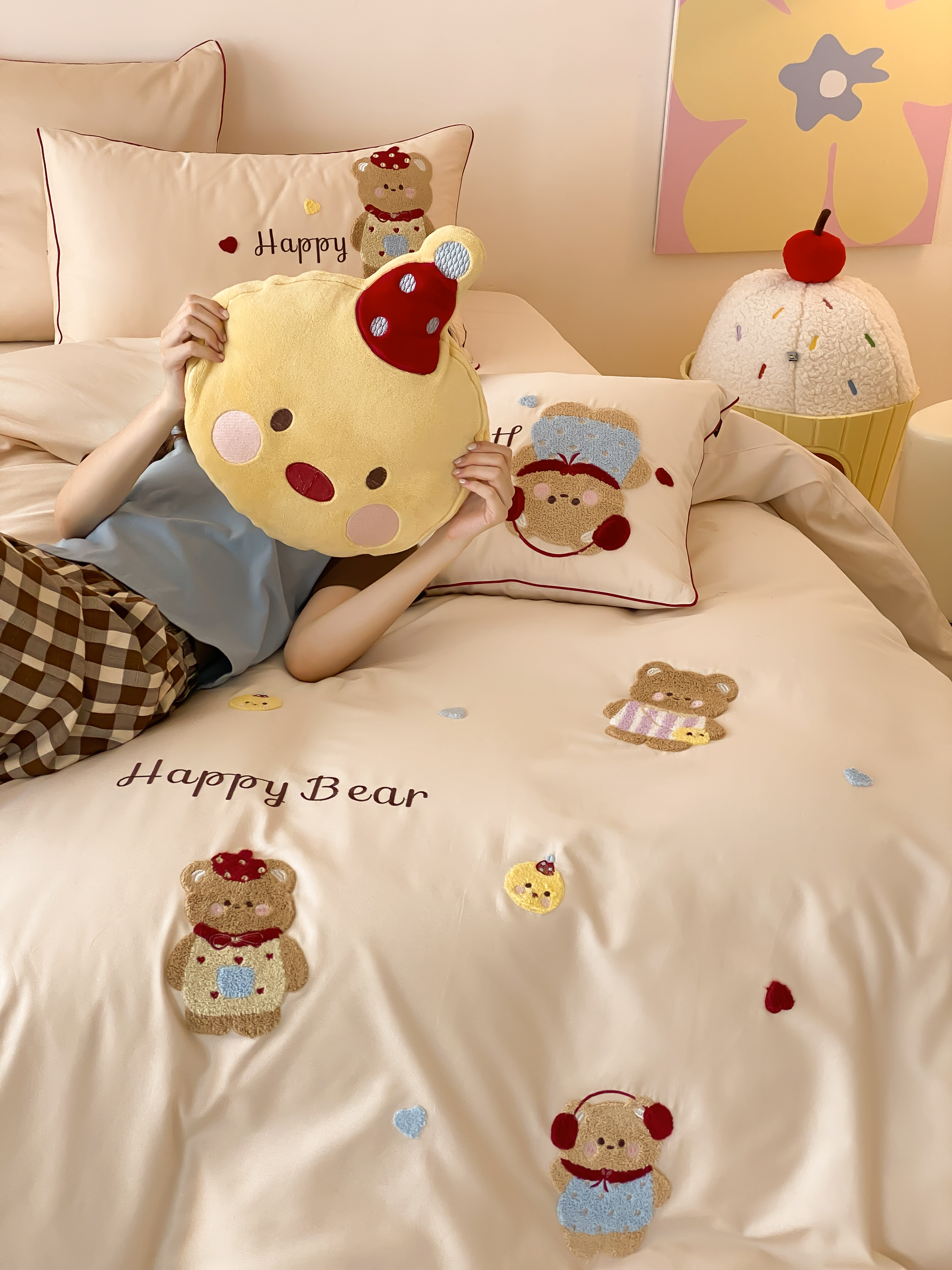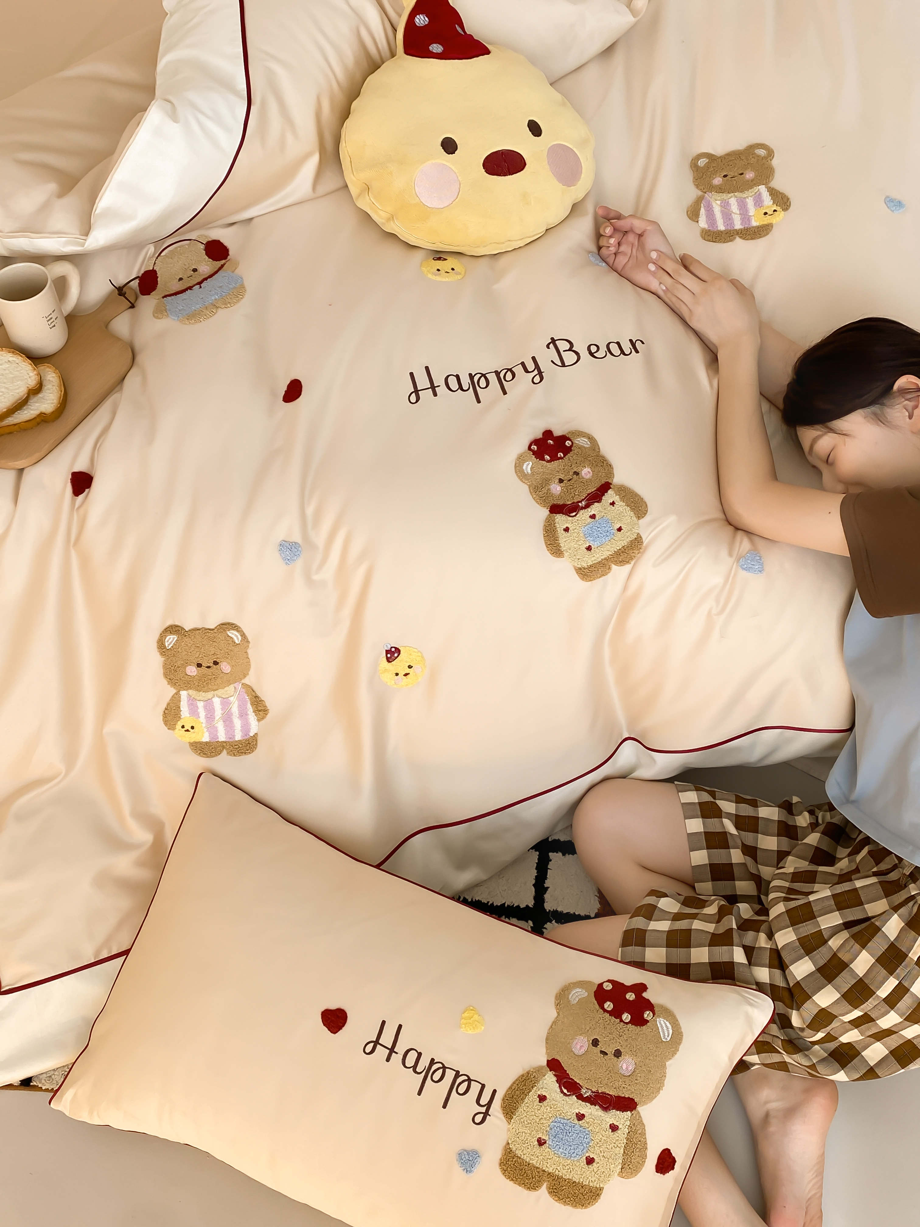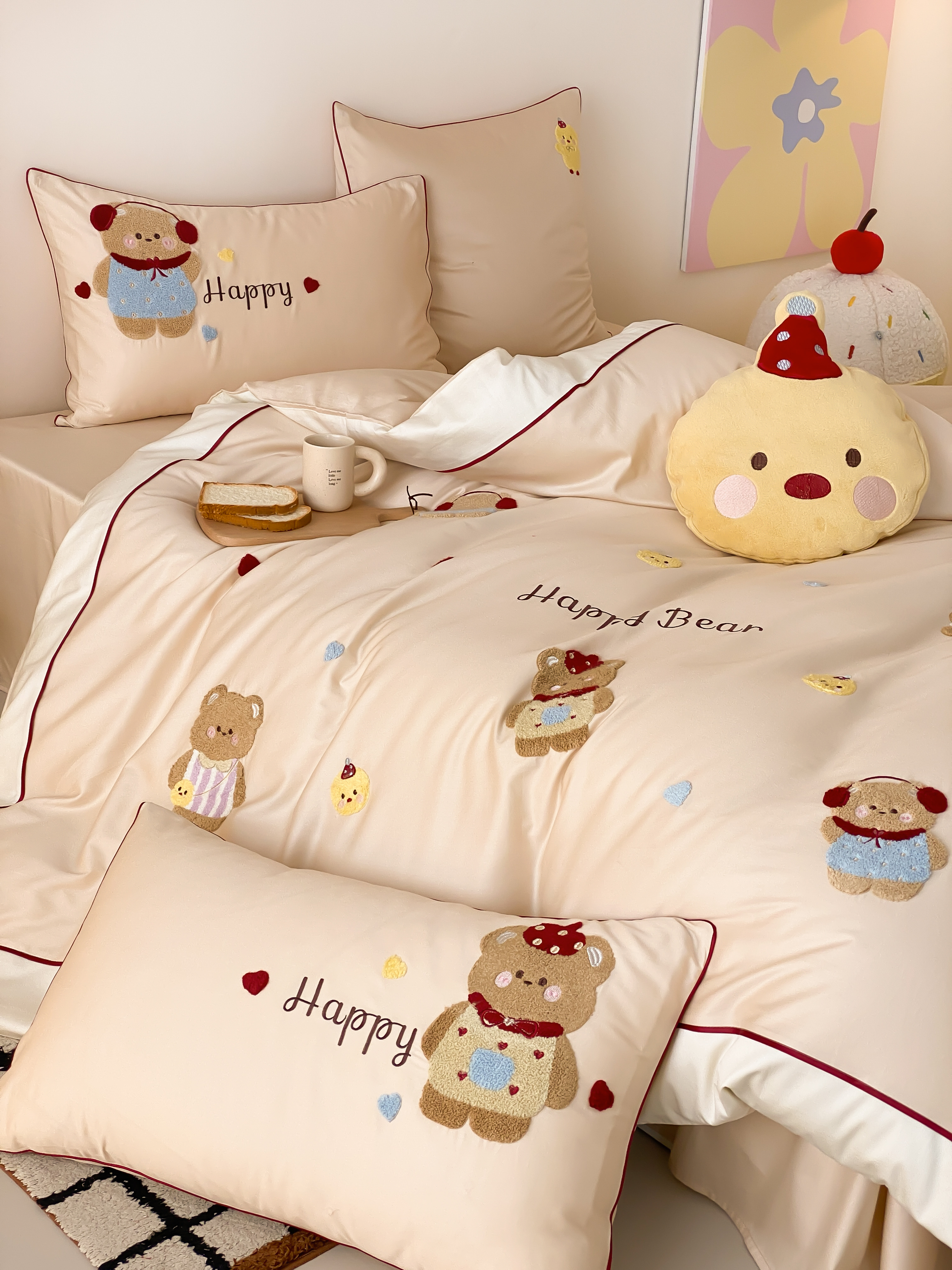 商品名称:馨蕊家居 2026新款新品超细旦磨毛高奢系列四件套 磨毛卡通-奶油泡芙