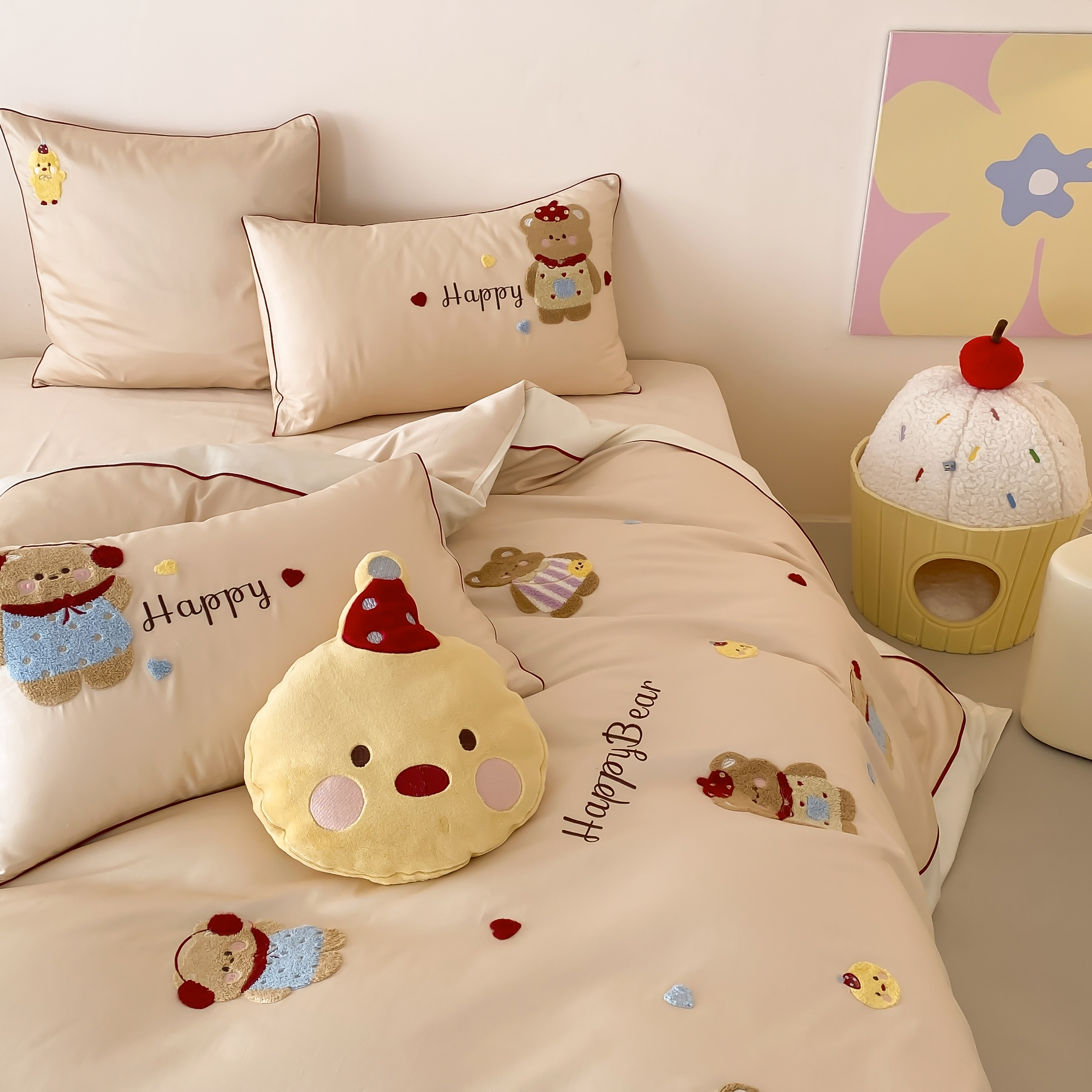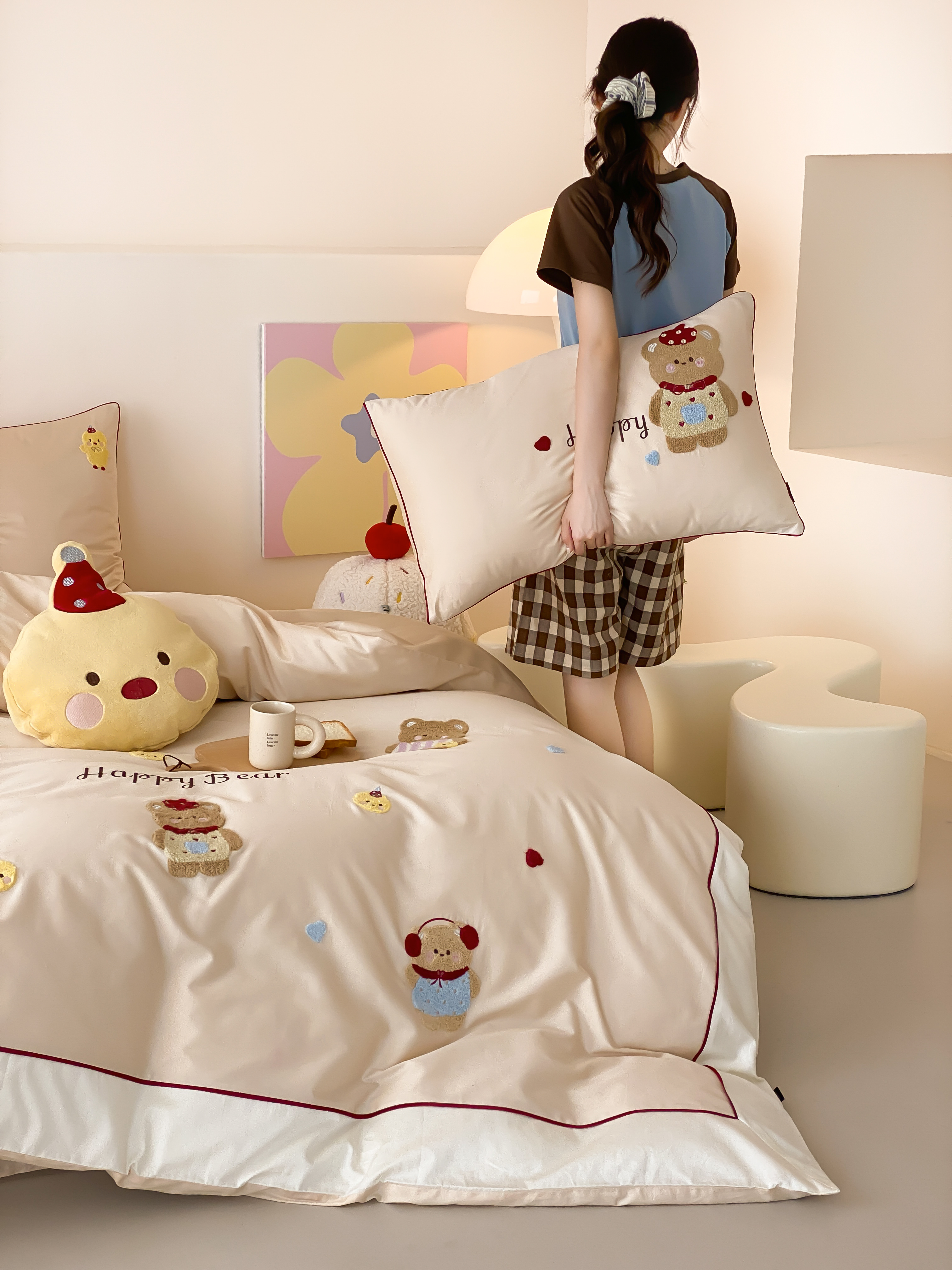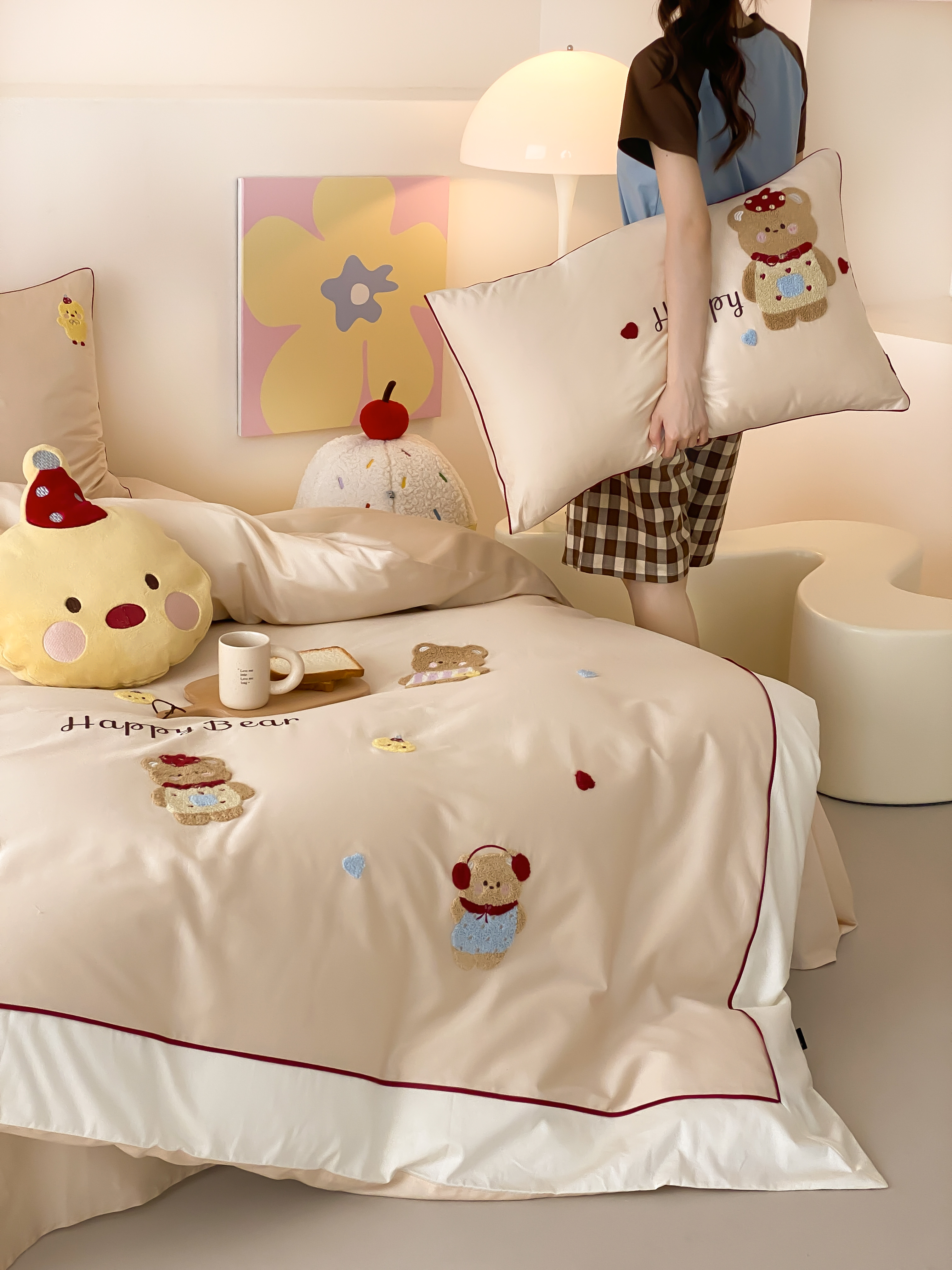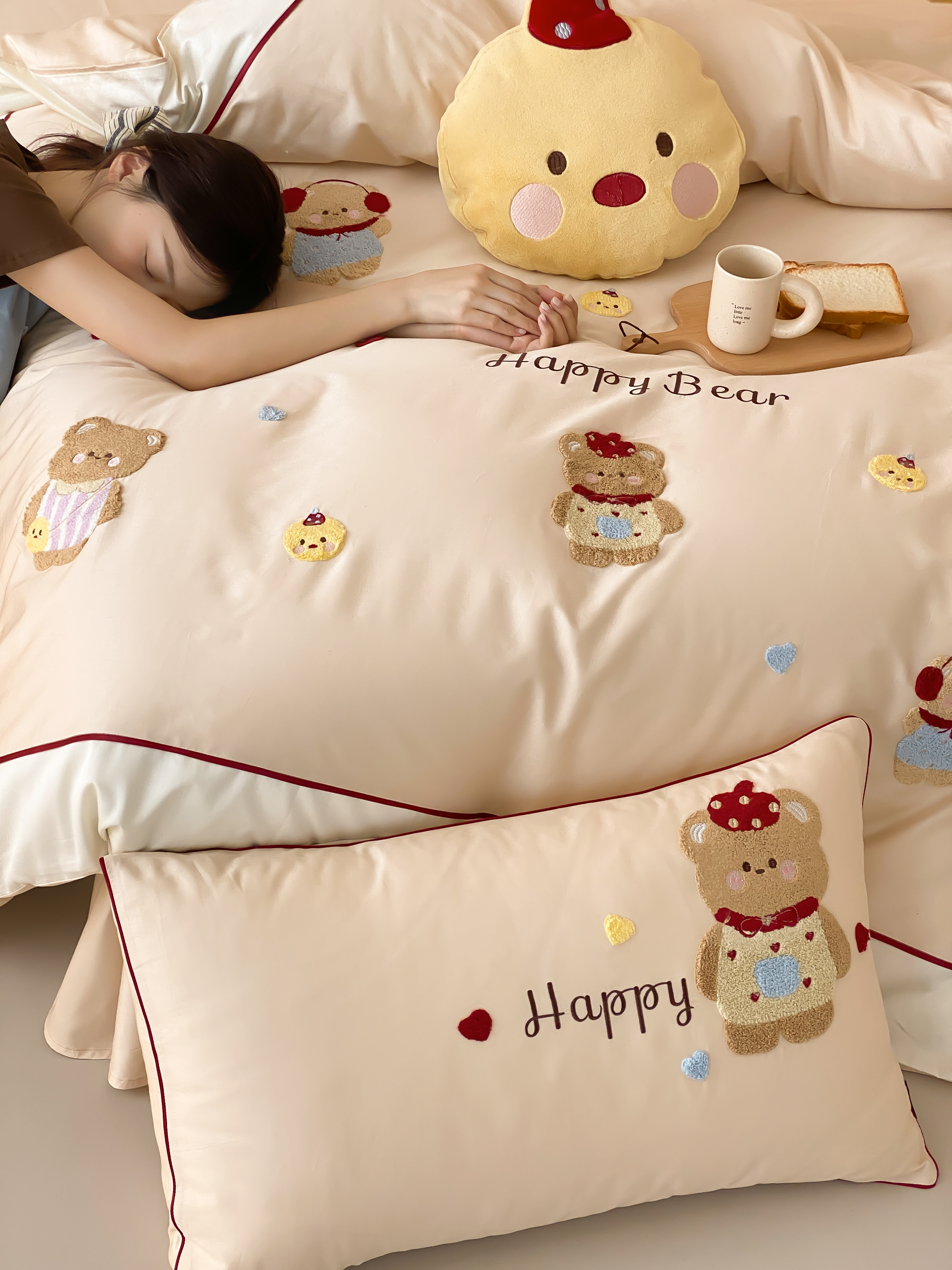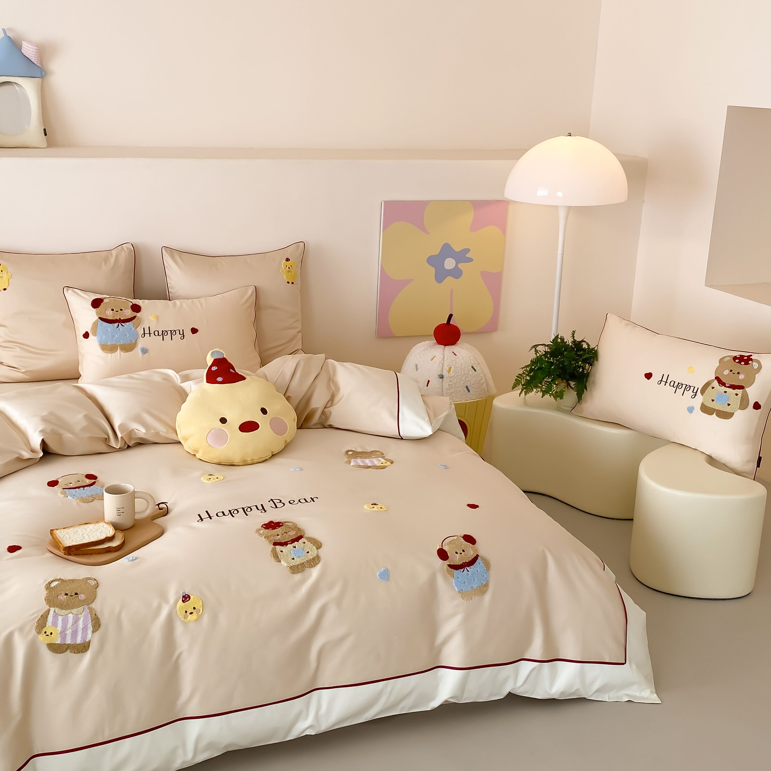 商品名称:馨蕊家居 2026新款新品超细旦磨毛高奢系列四件套 磨毛卡通-奶油泡芙