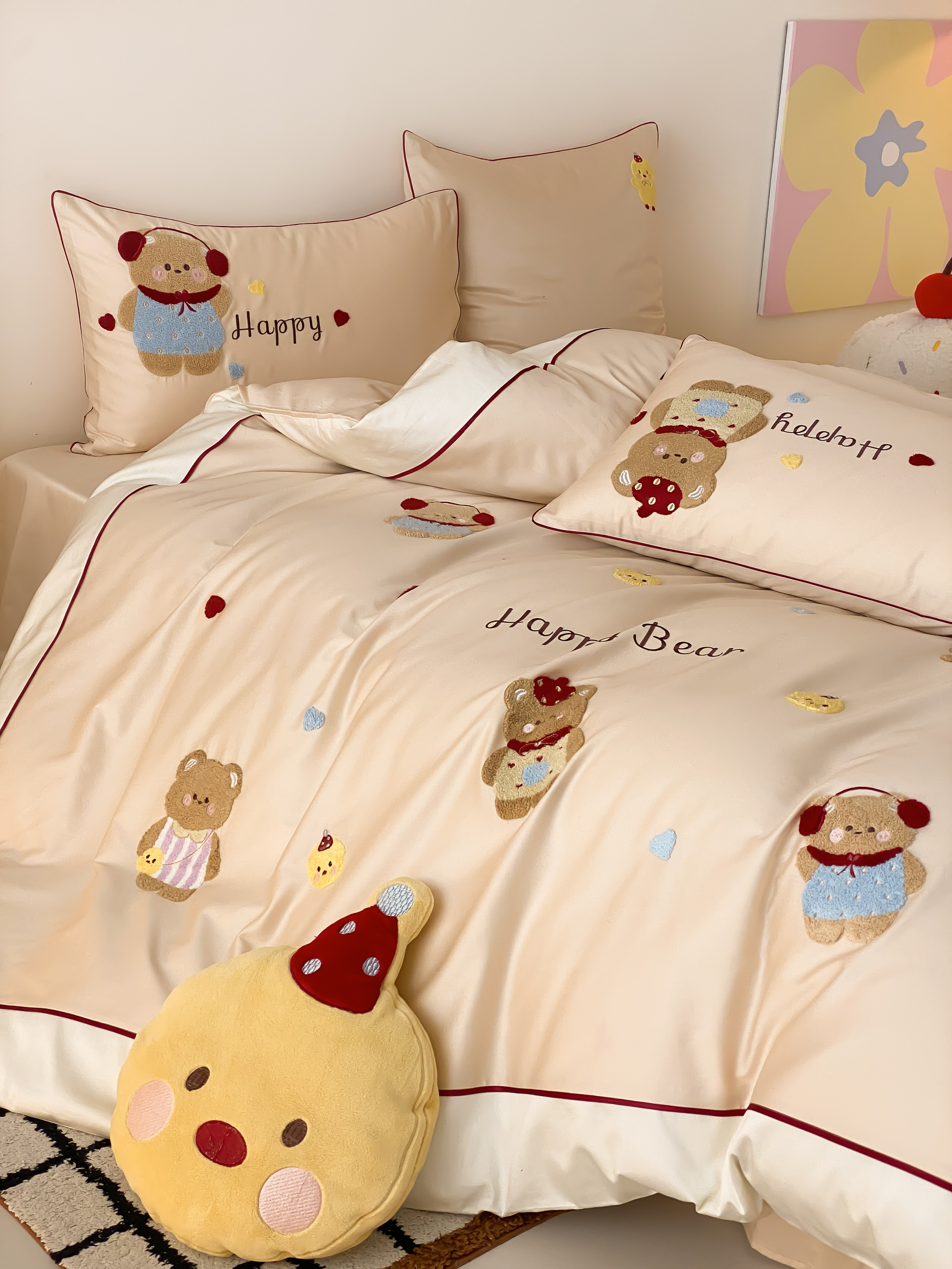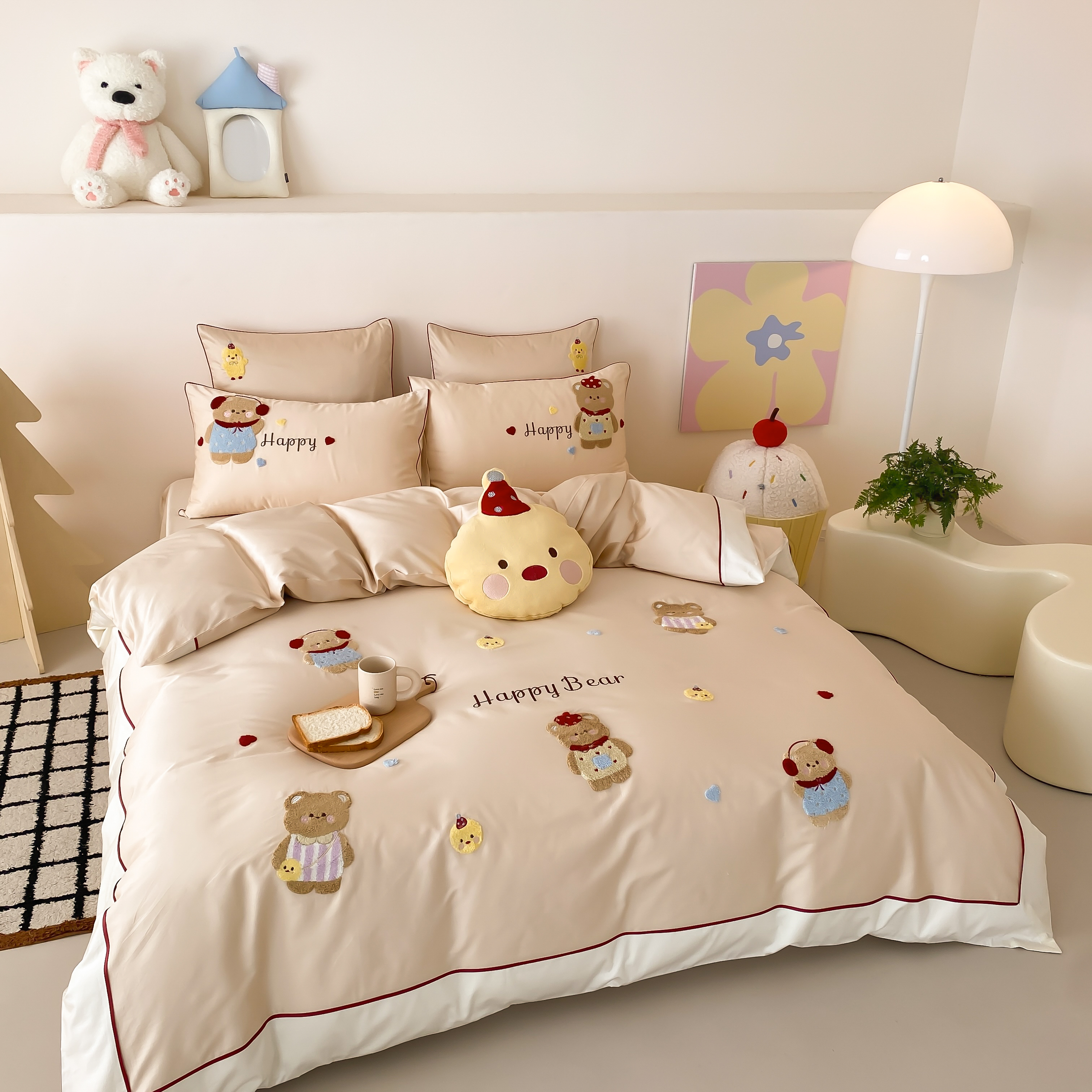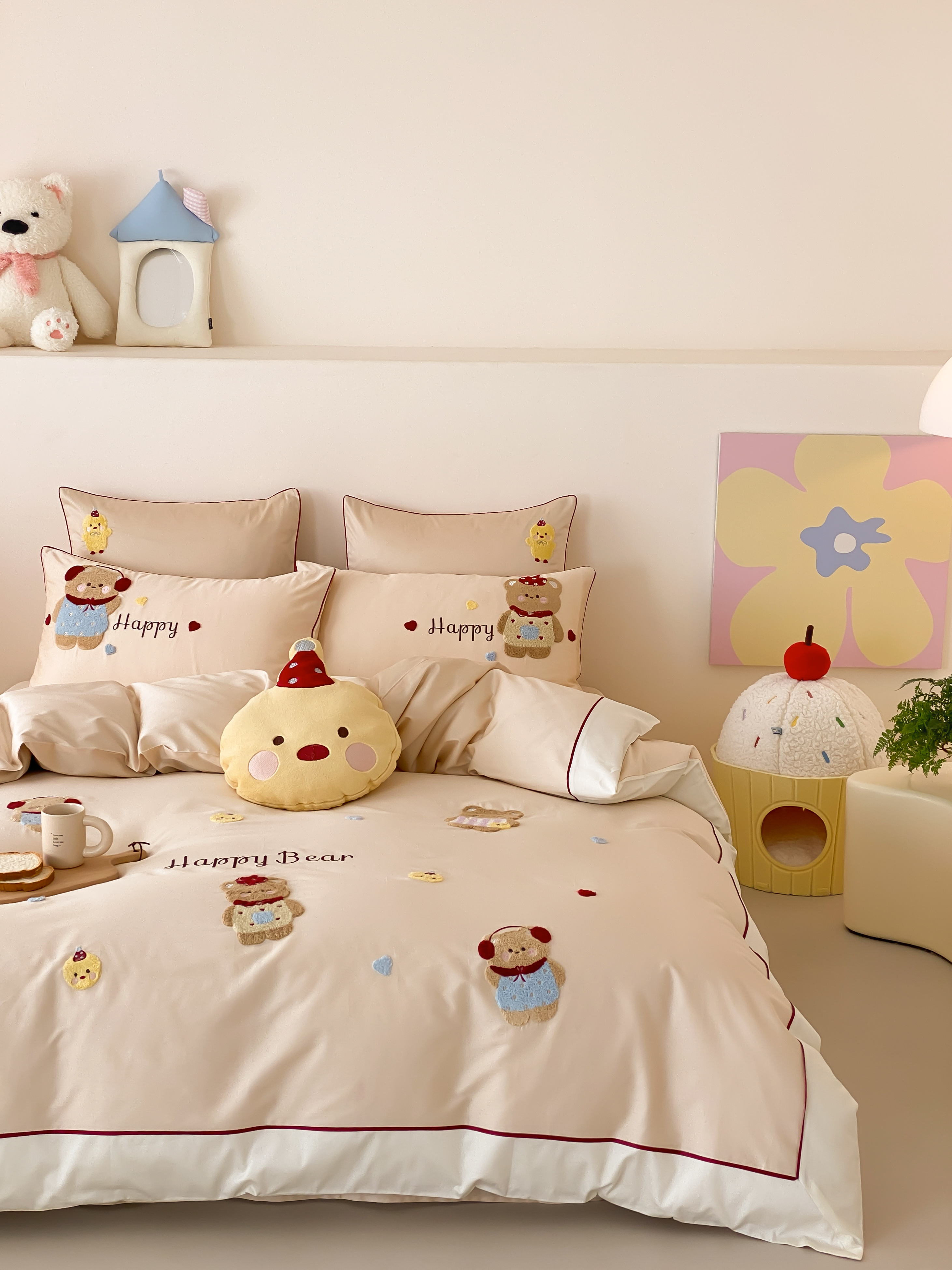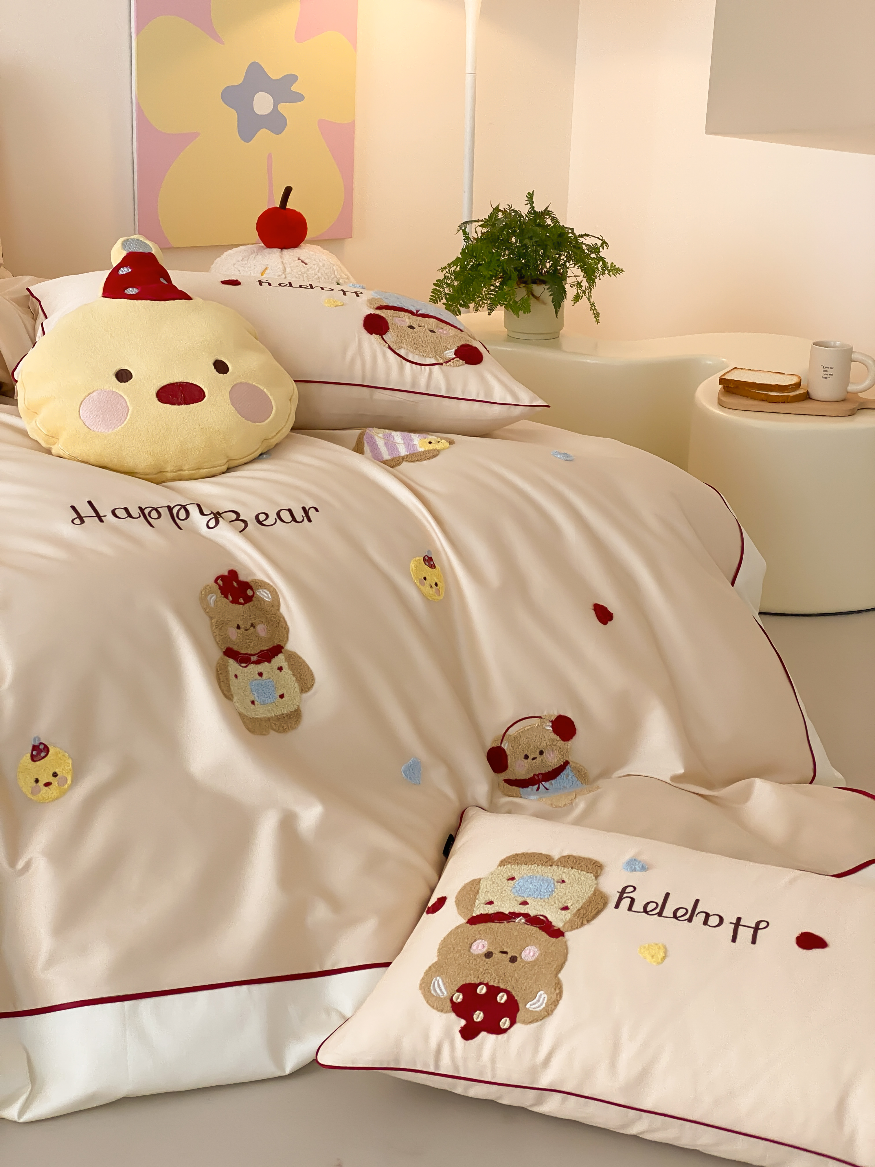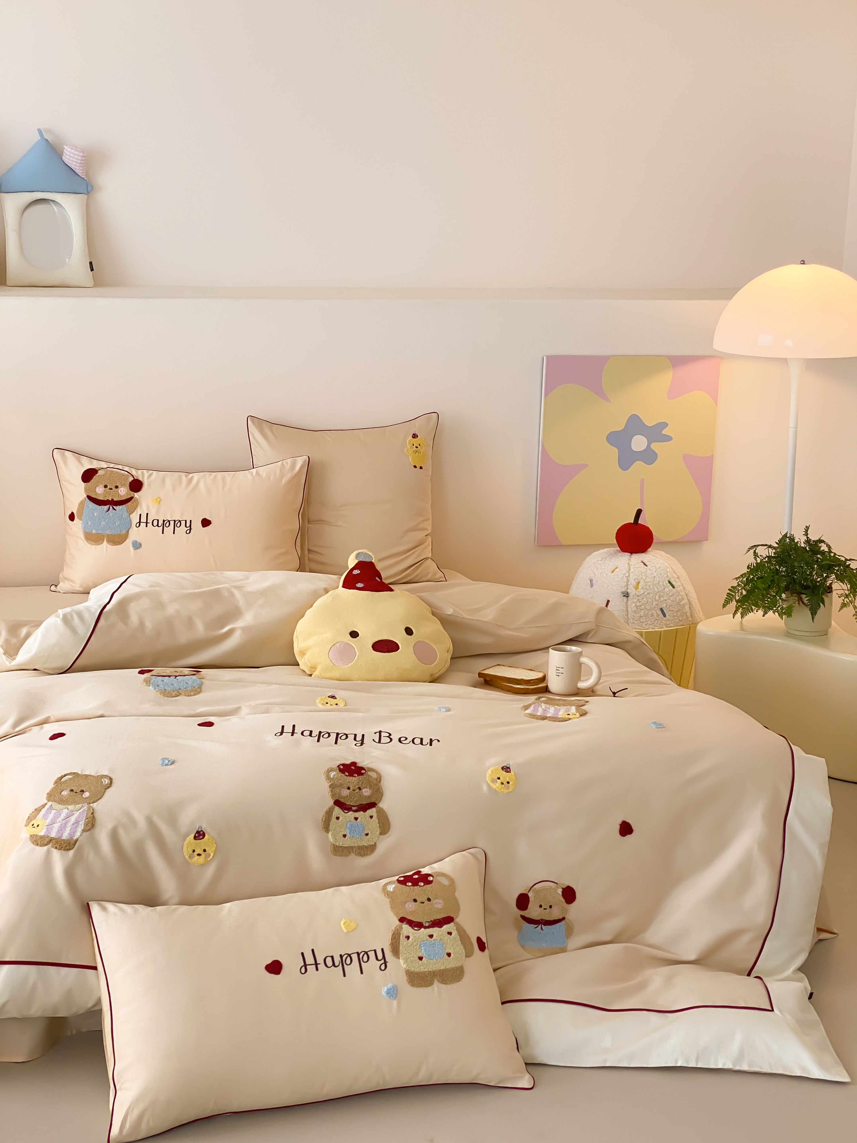 商品名称:馨蕊家居 2026新款新品超细旦磨毛高奢系列四件套 磨毛卡通-奶油泡芙