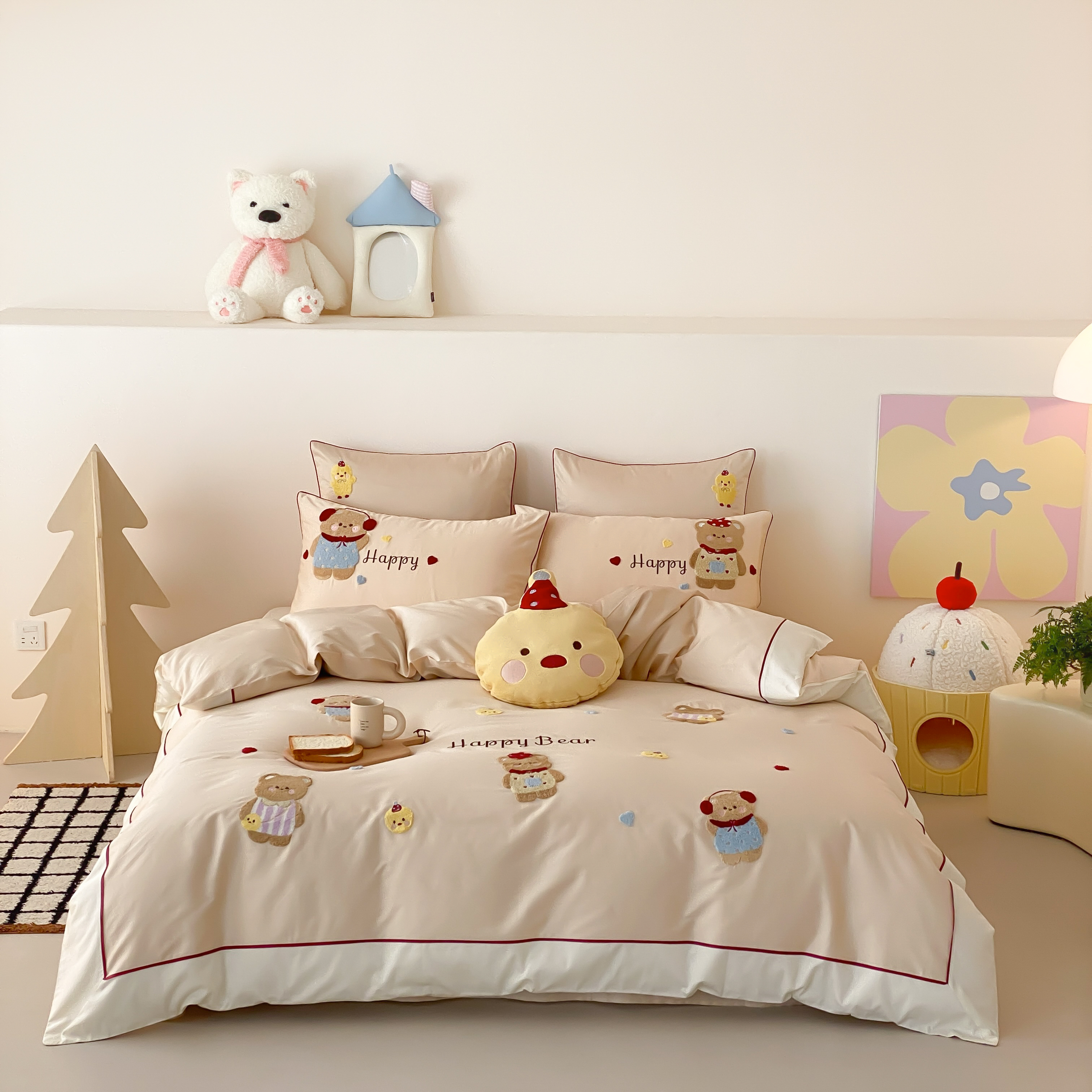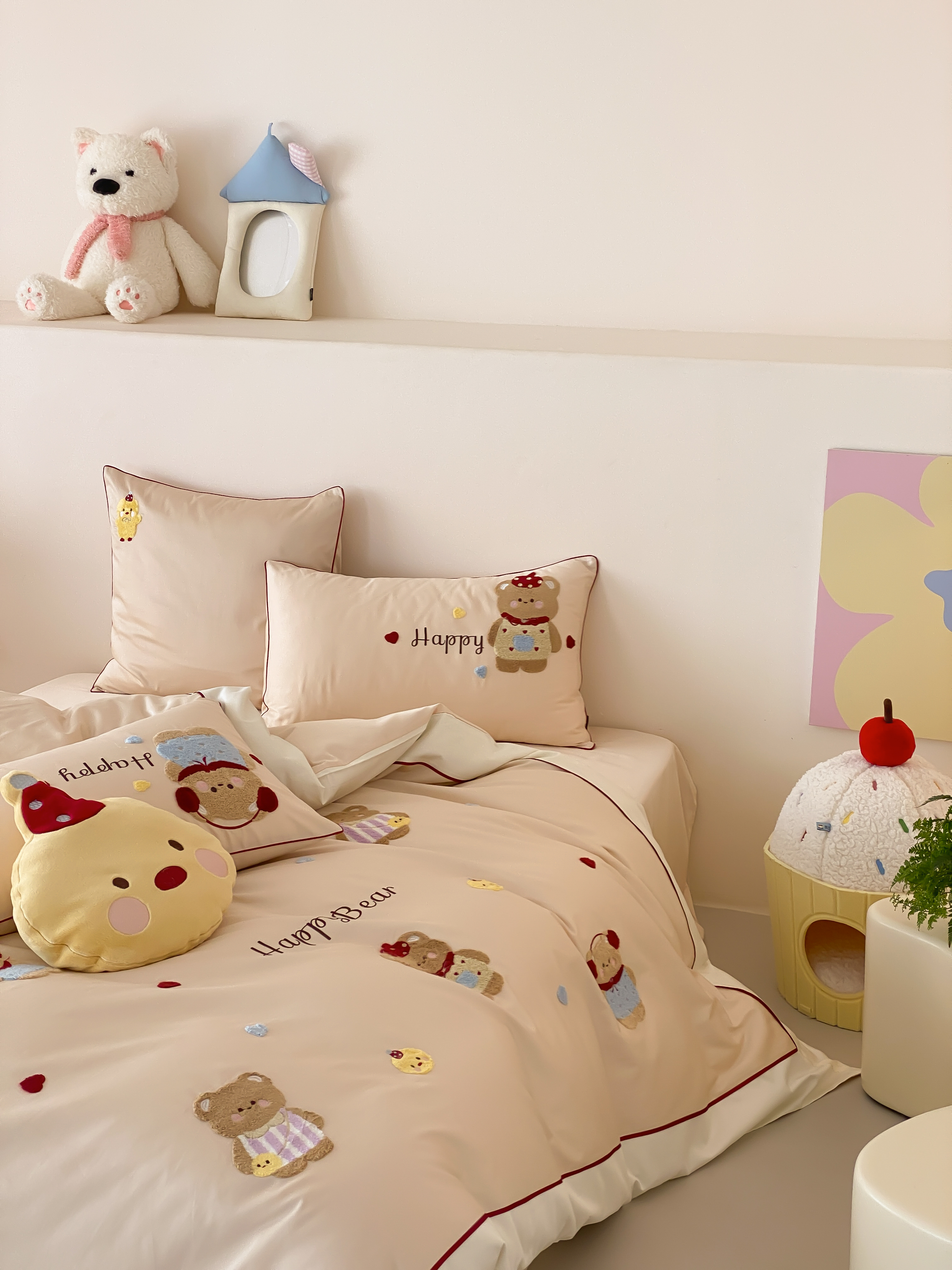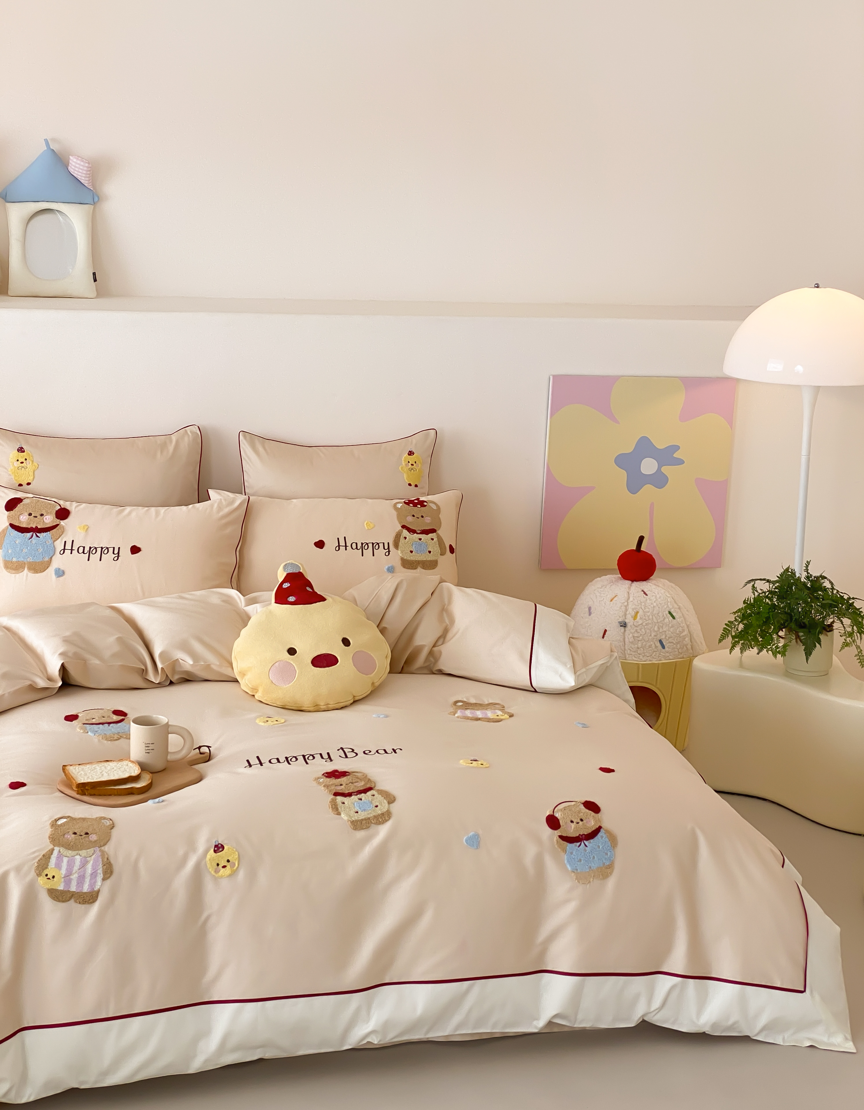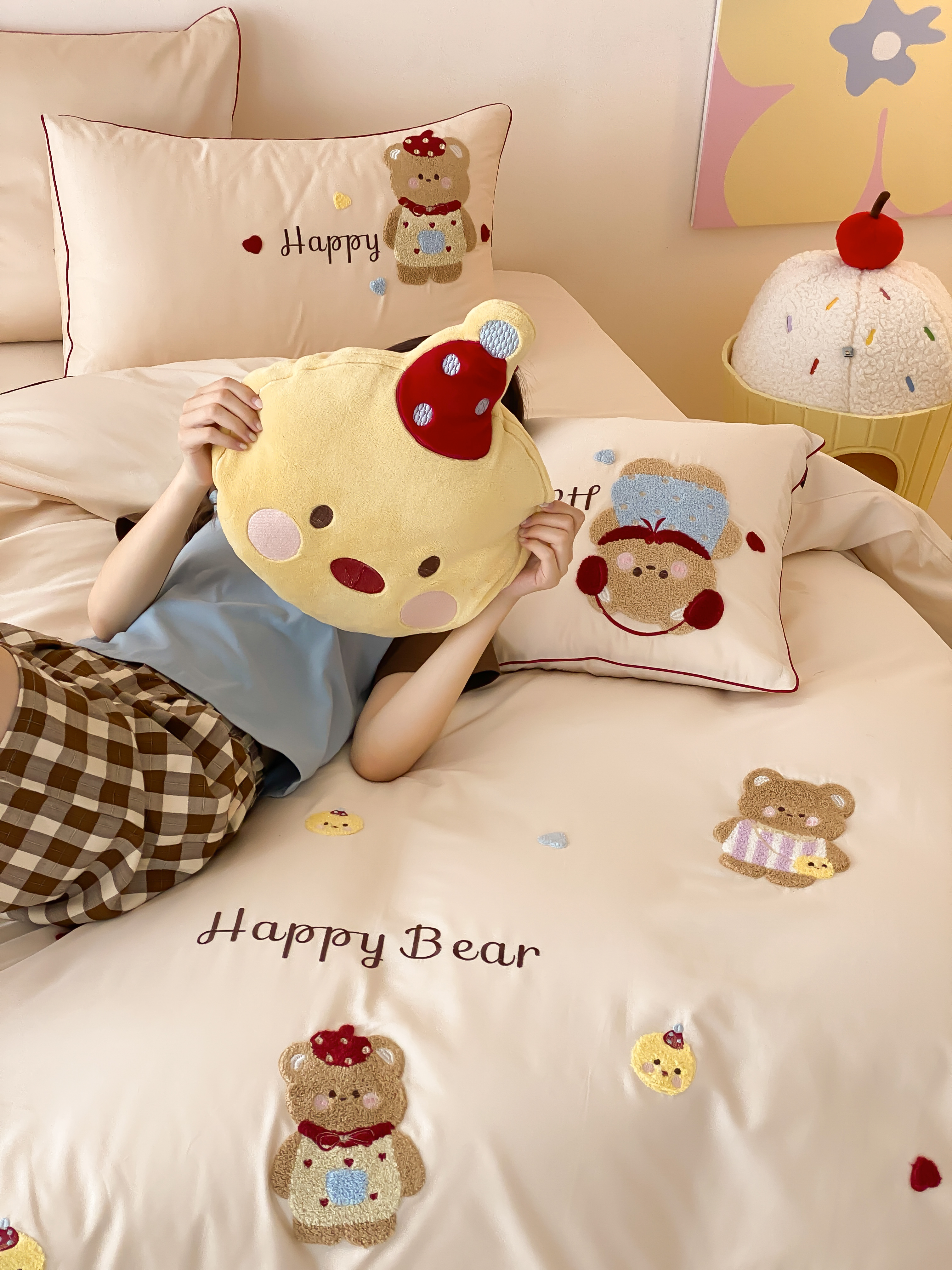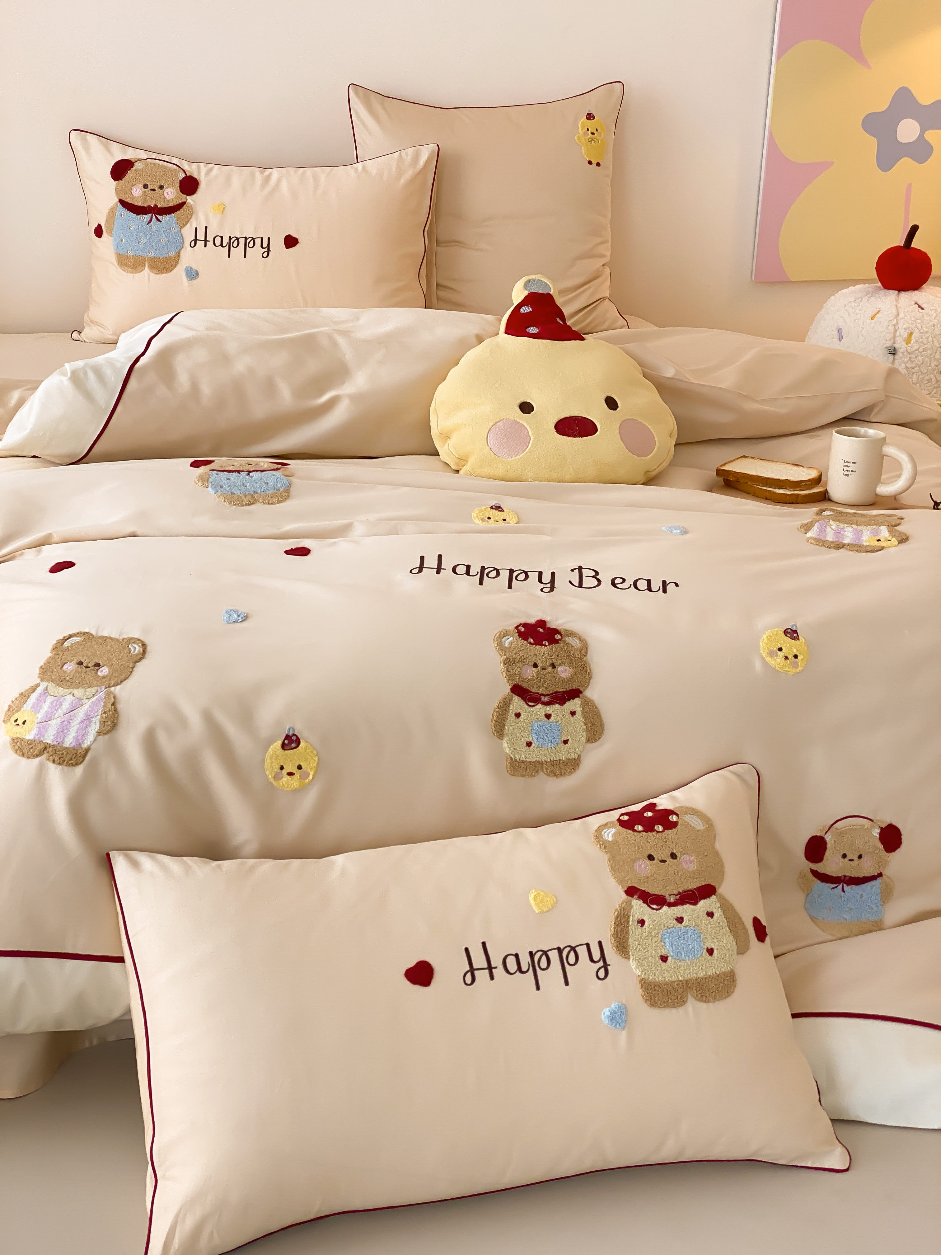 商品名称:馨蕊家居 2026新款新品超细旦磨毛高奢系列四件套 磨毛卡通-奶油泡芙