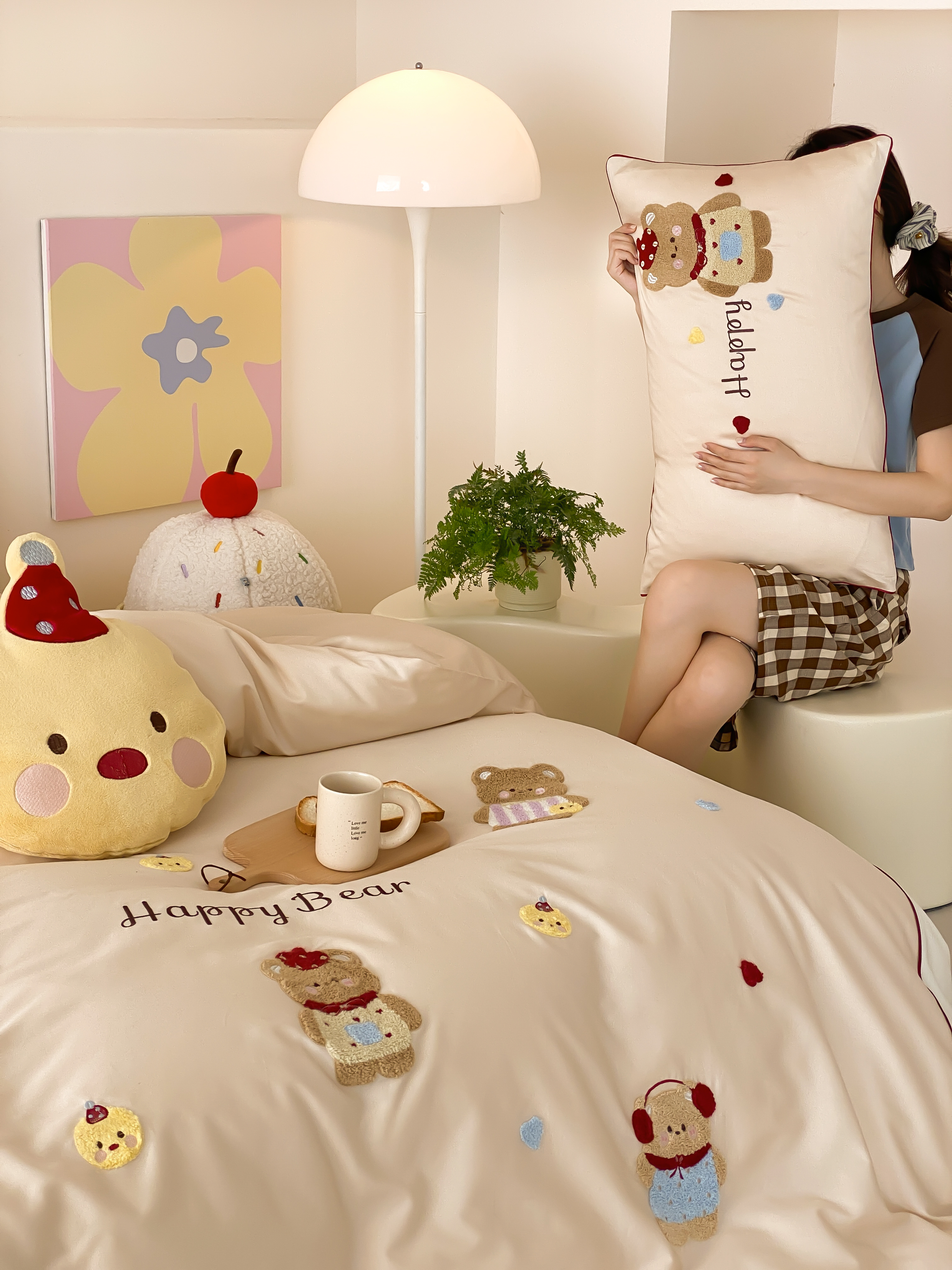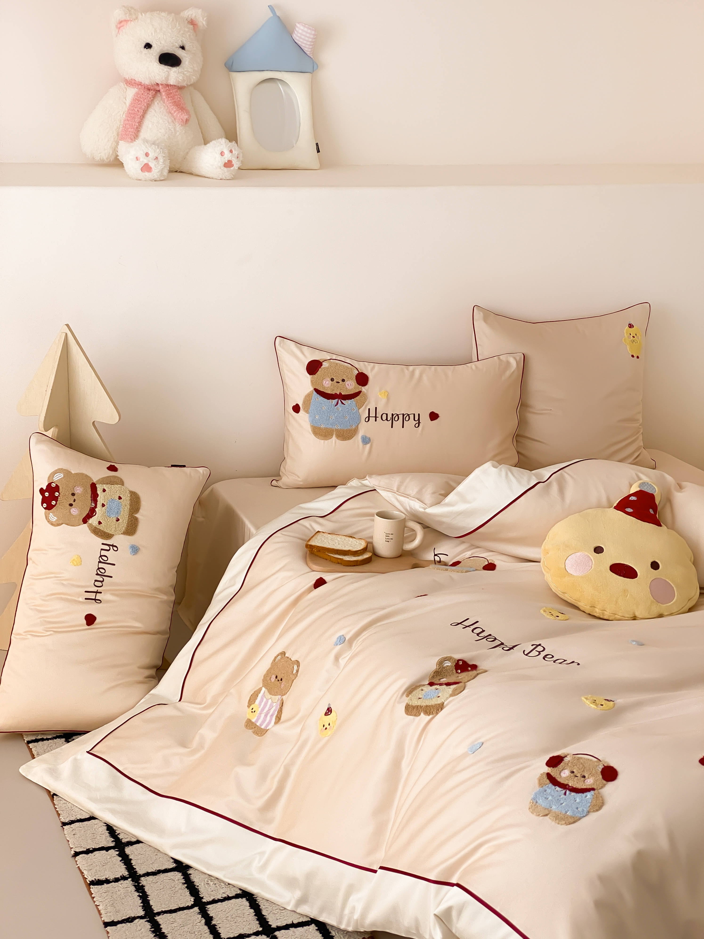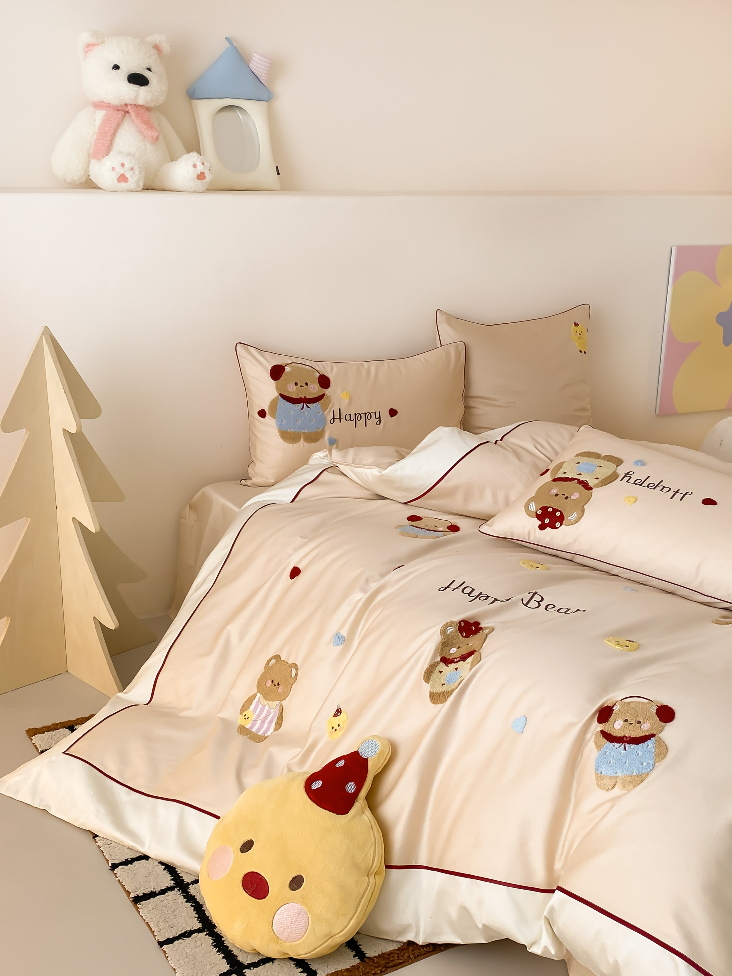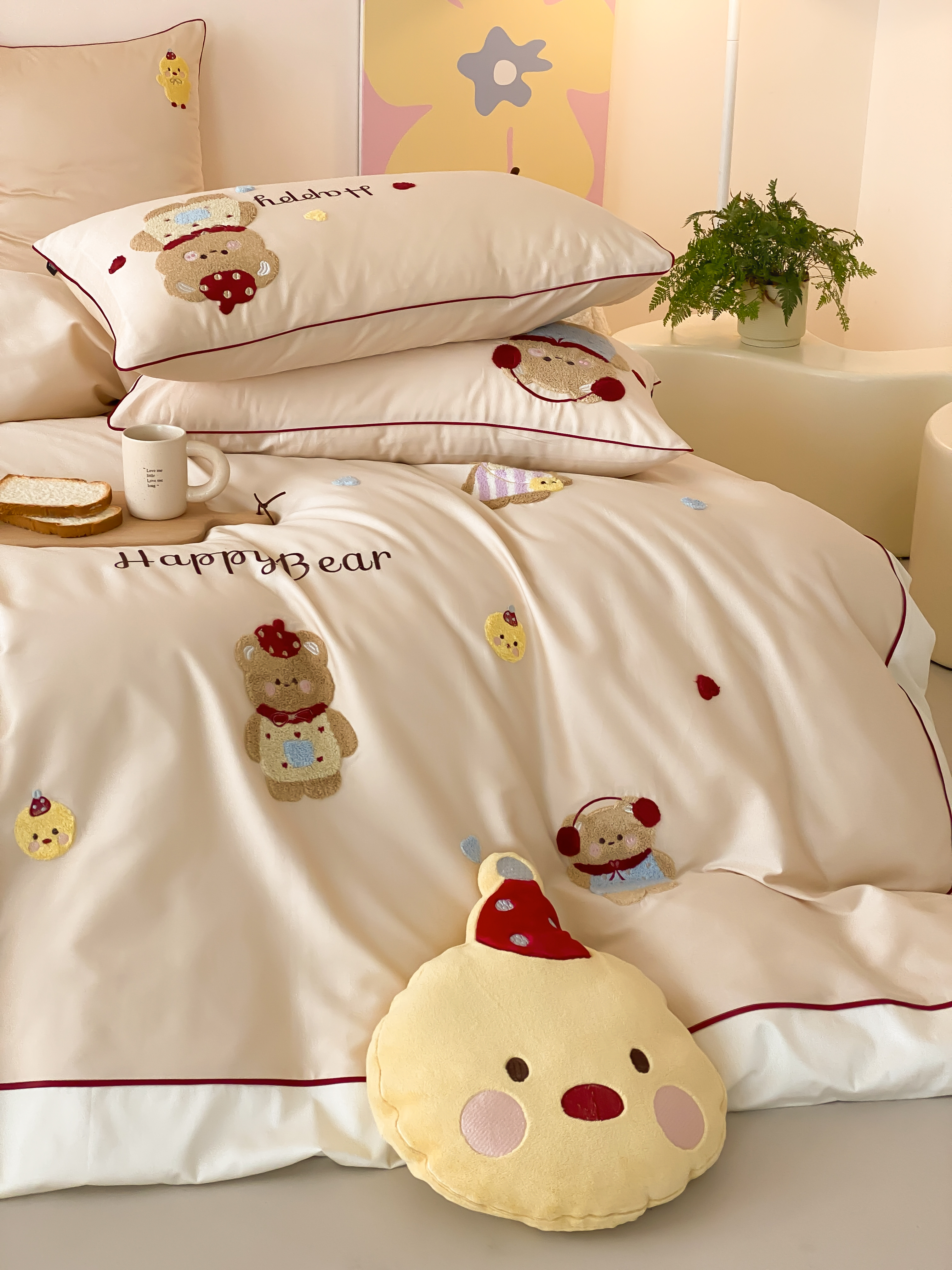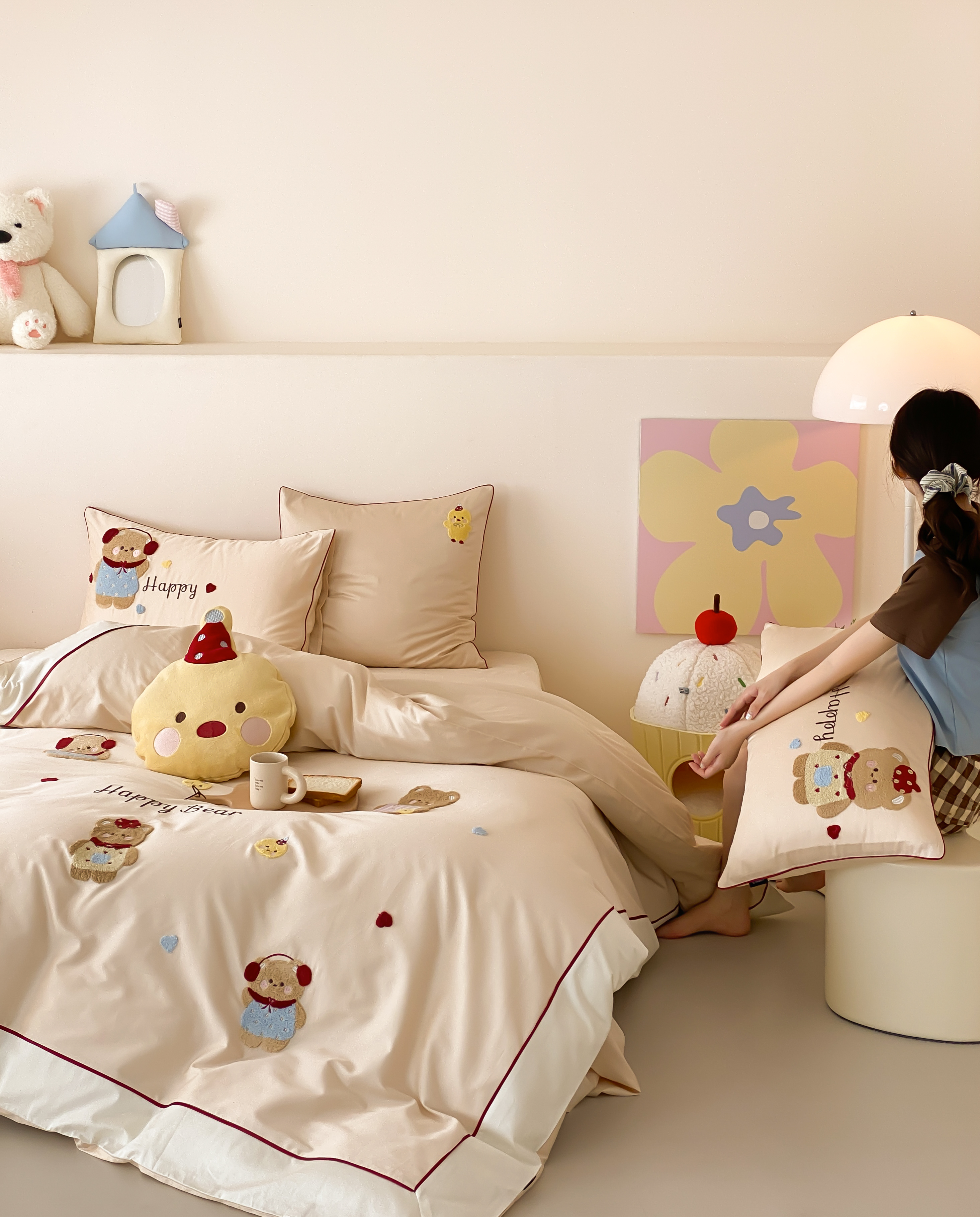 商品名称:馨蕊家居 2026新款新品超细旦磨毛高奢系列四件套 磨毛卡通-奶油泡芙