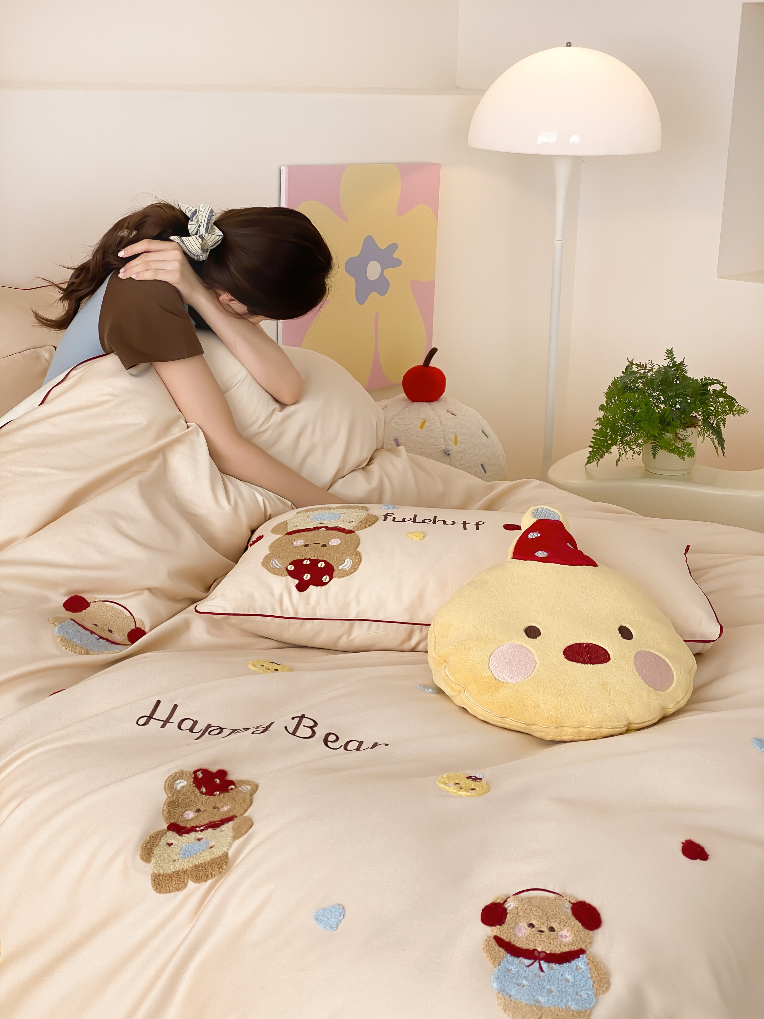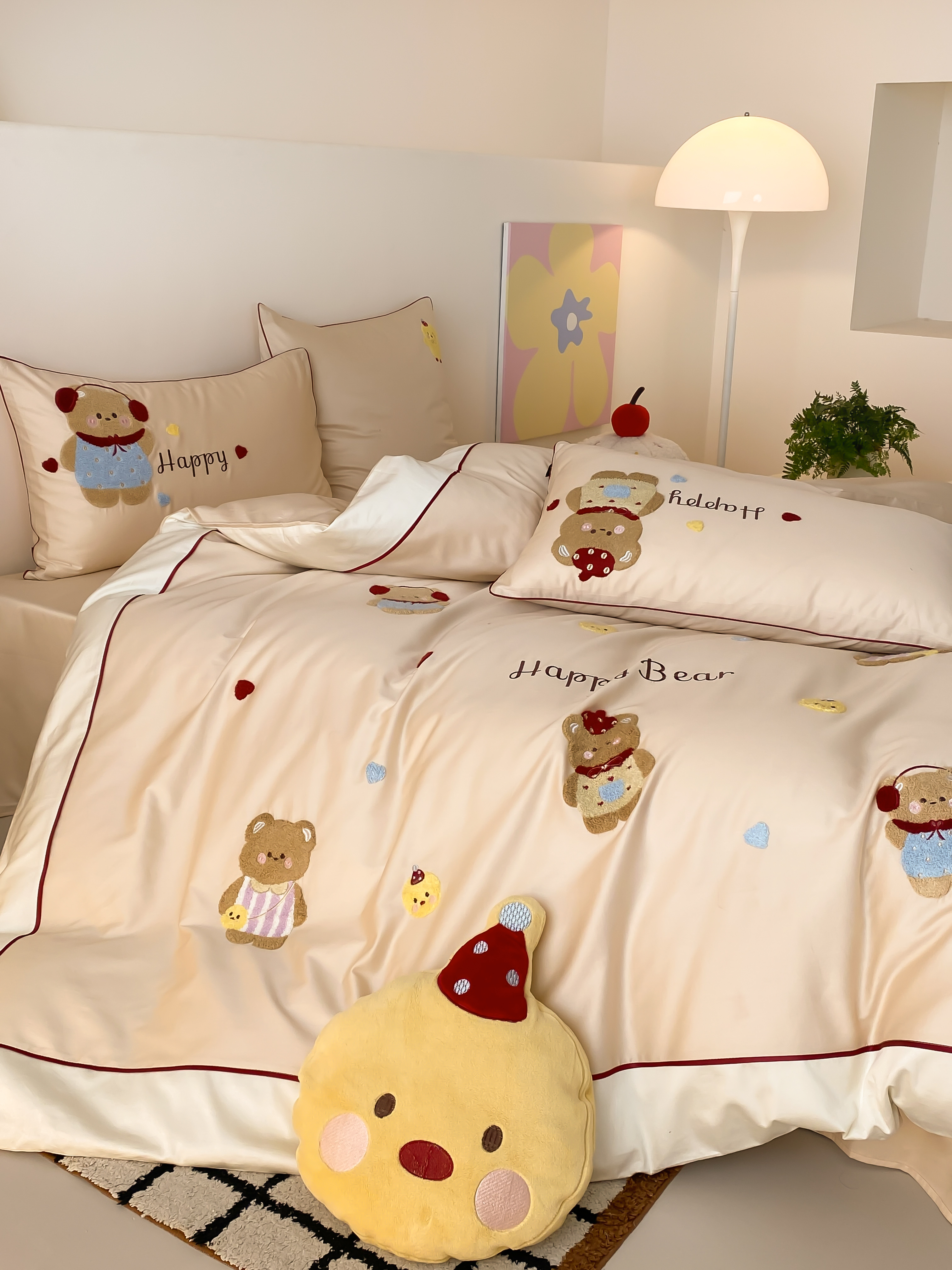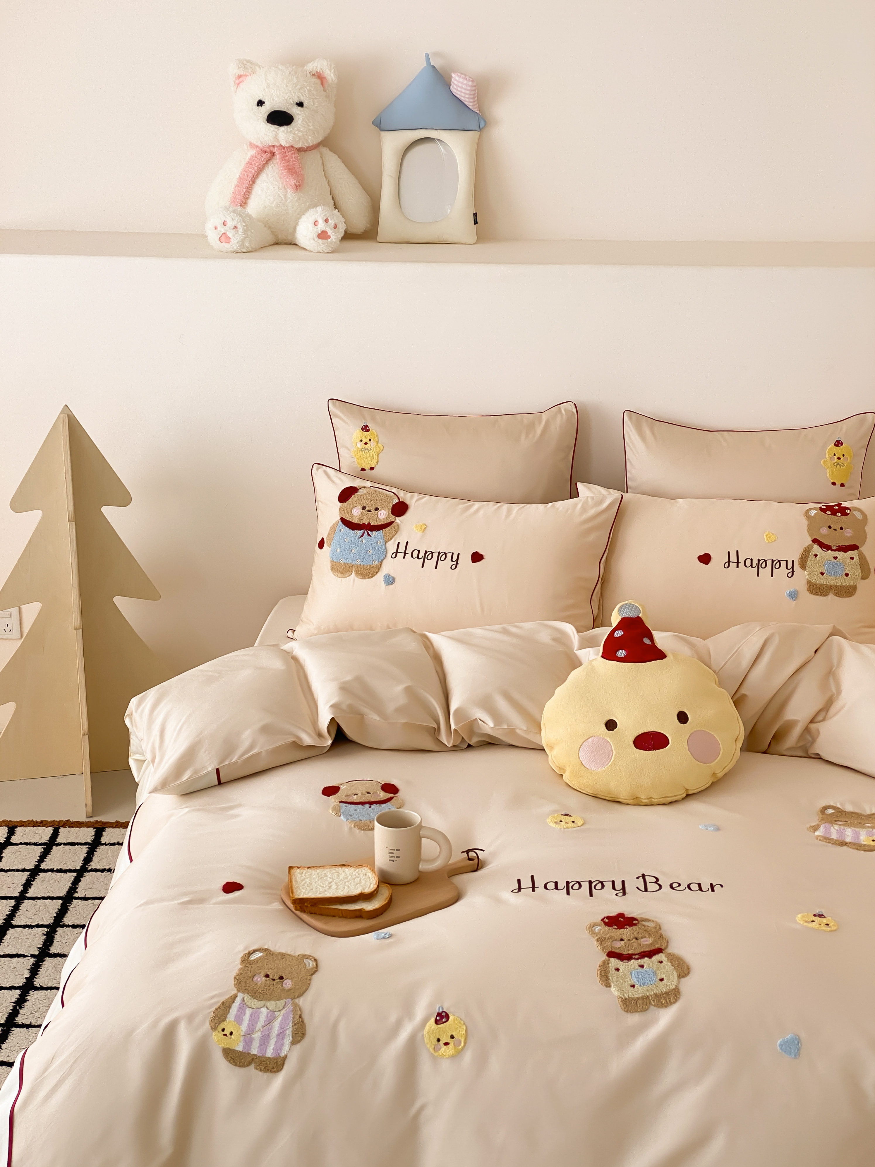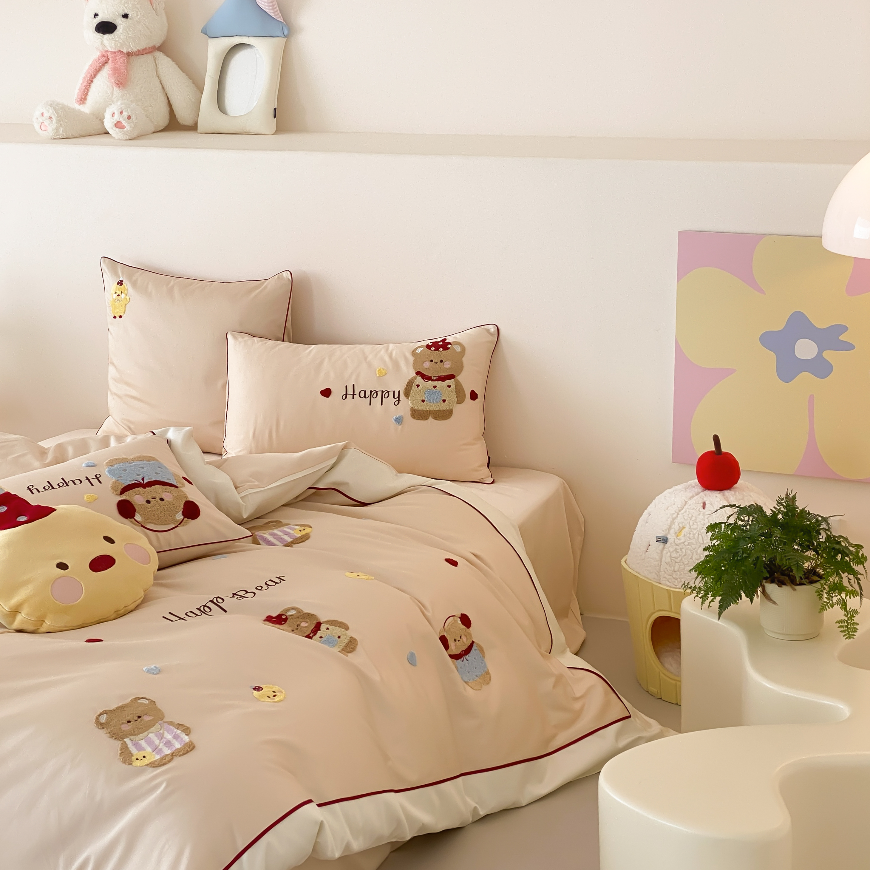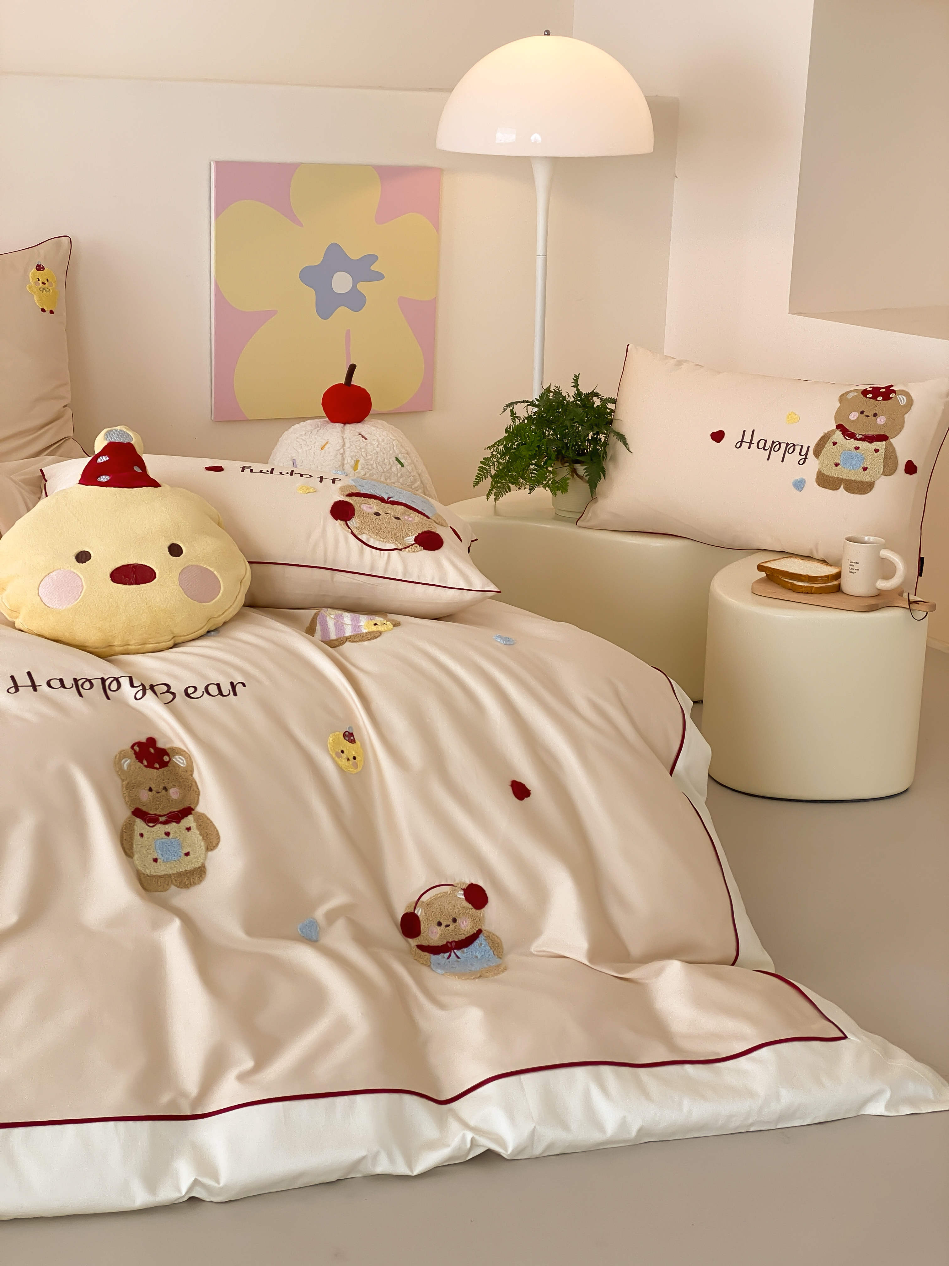 商品名称:馨蕊家居 2026新款新品超细旦磨毛高奢系列四件套 磨毛卡通-奶油泡芙
