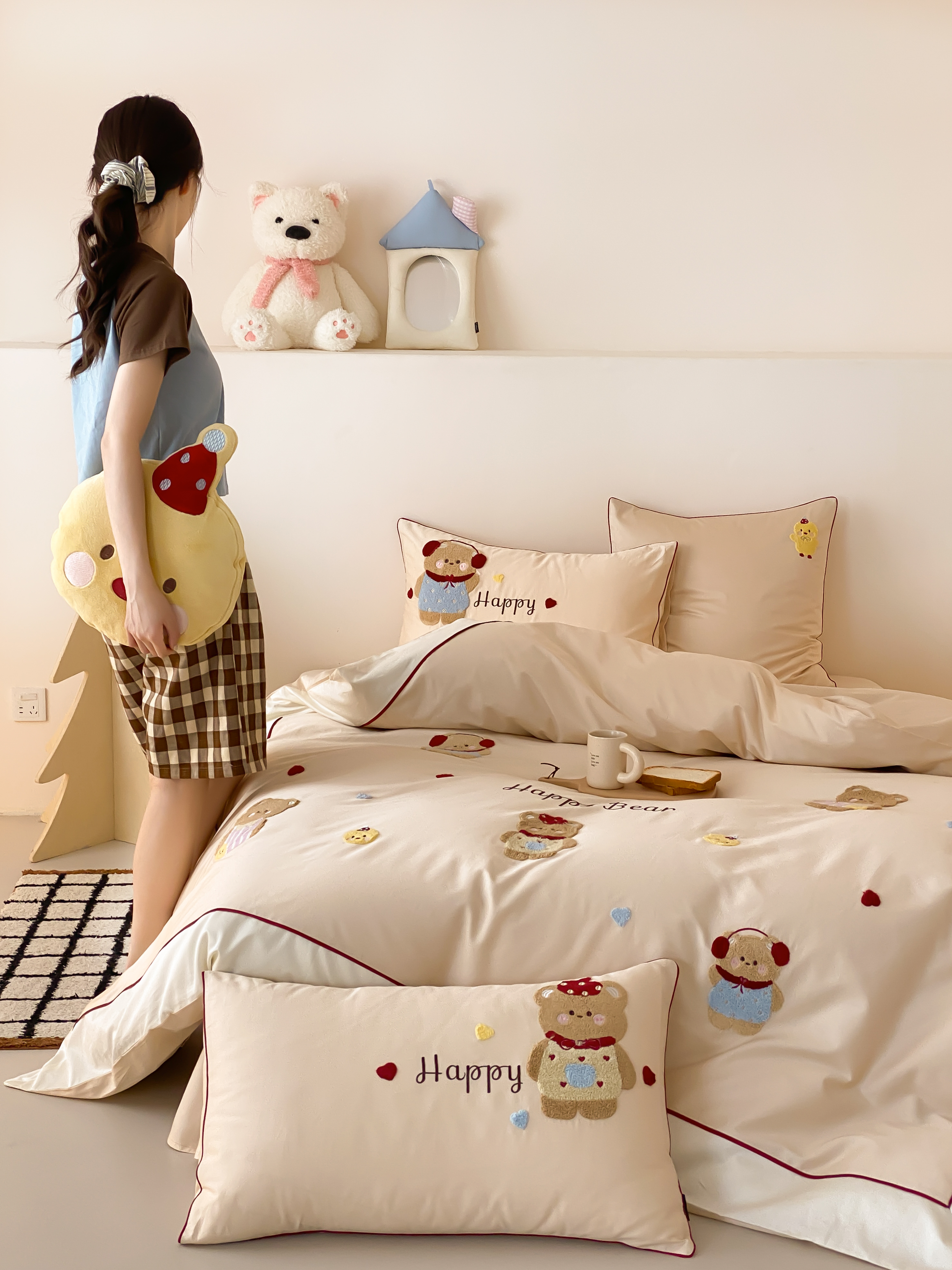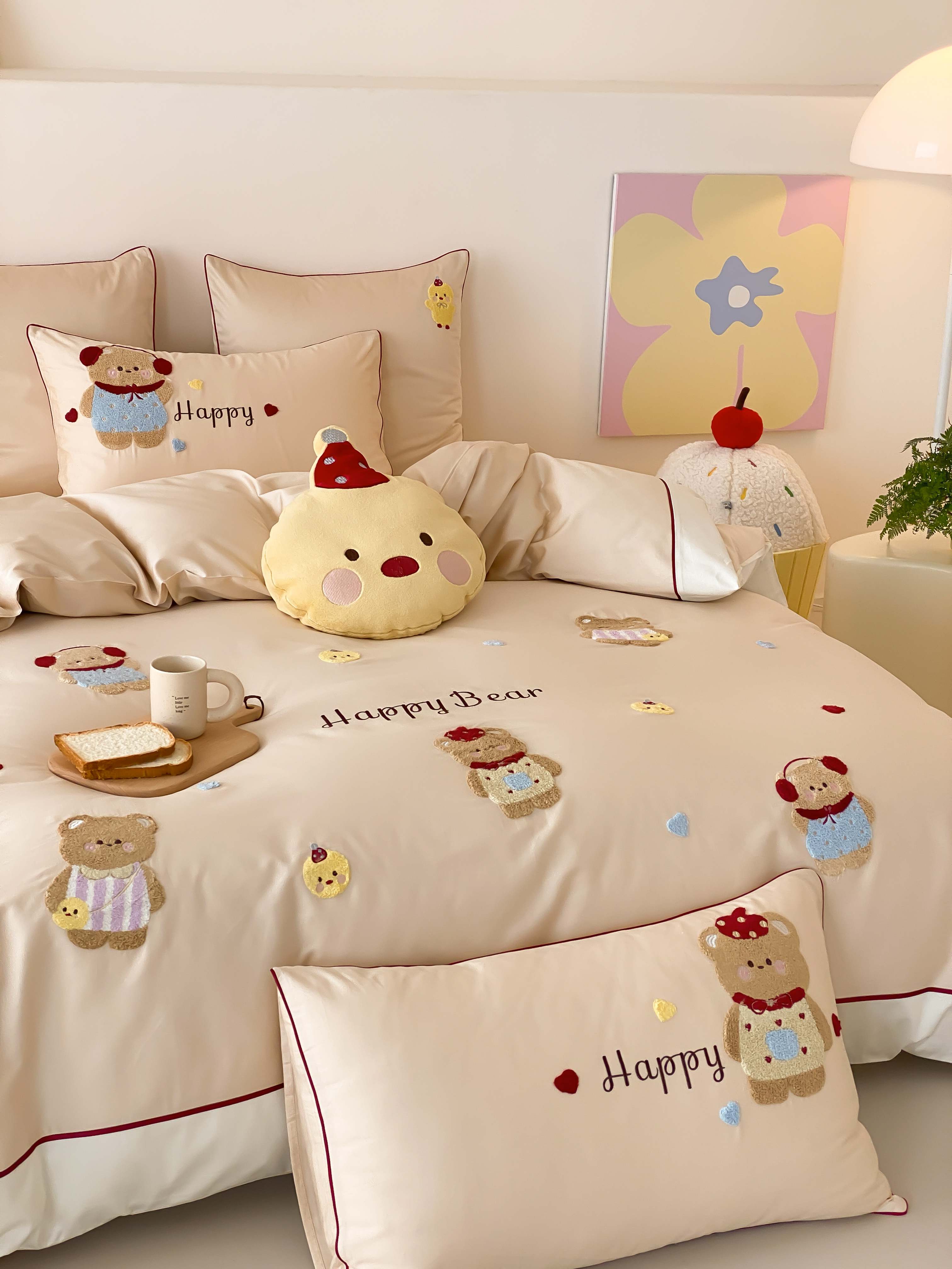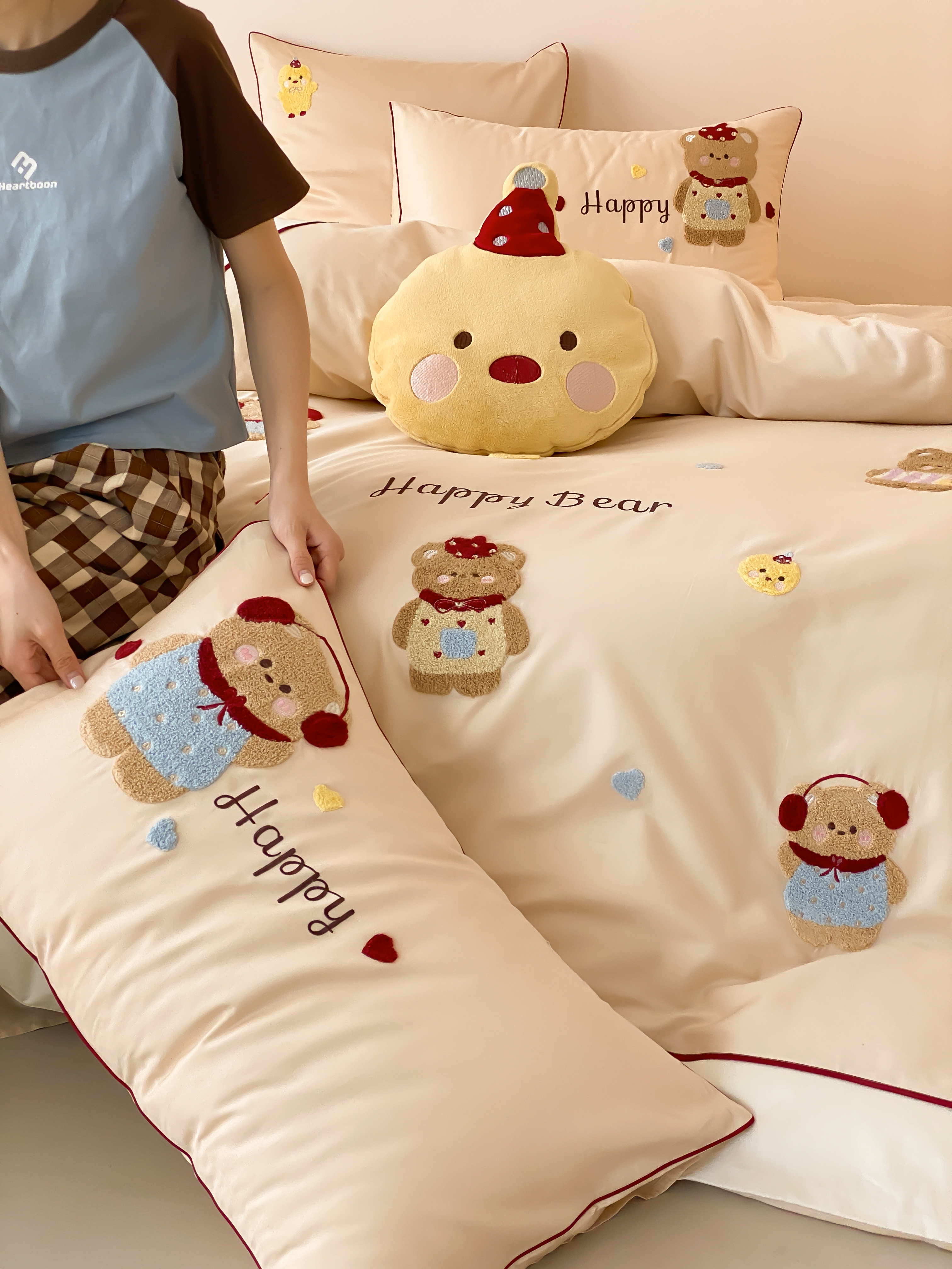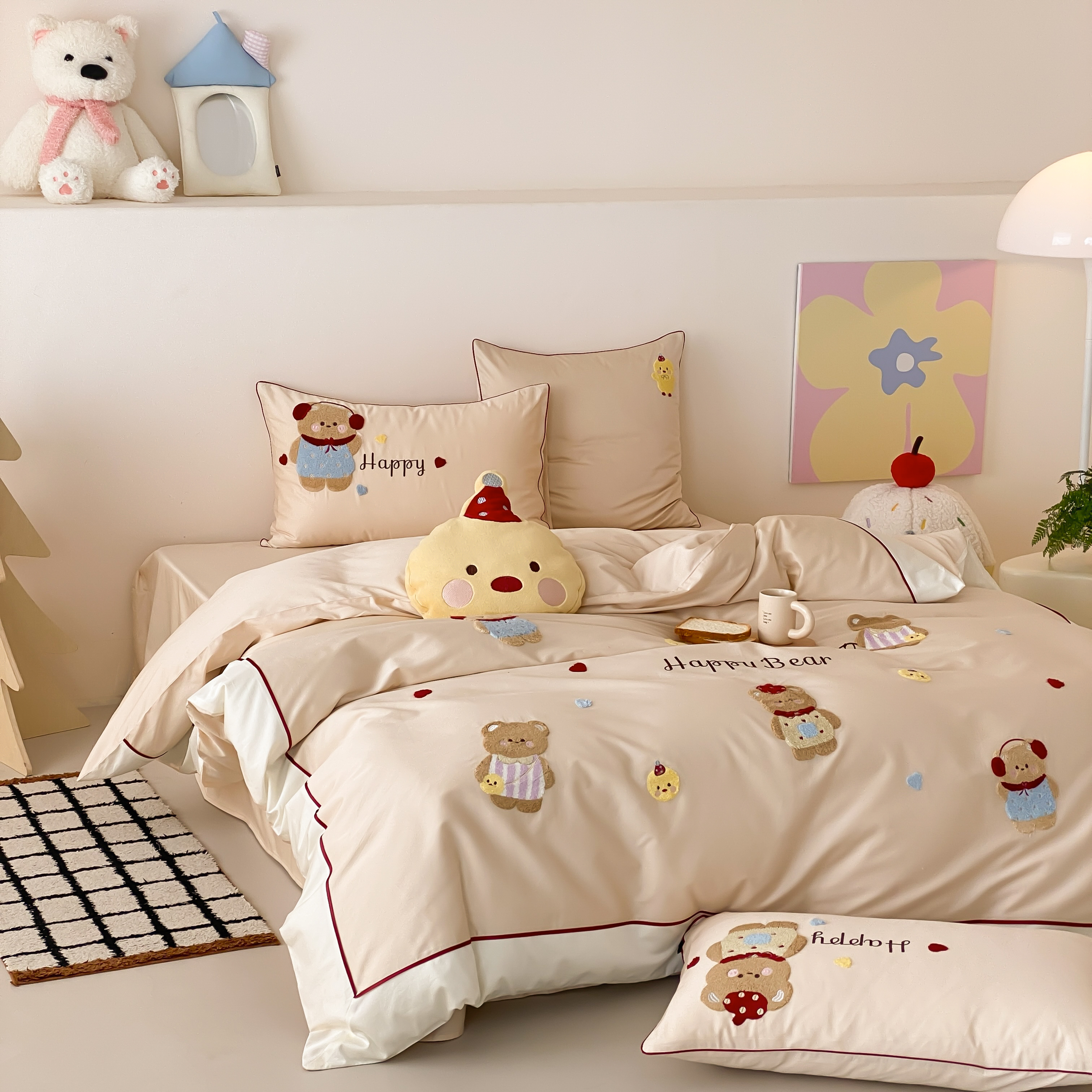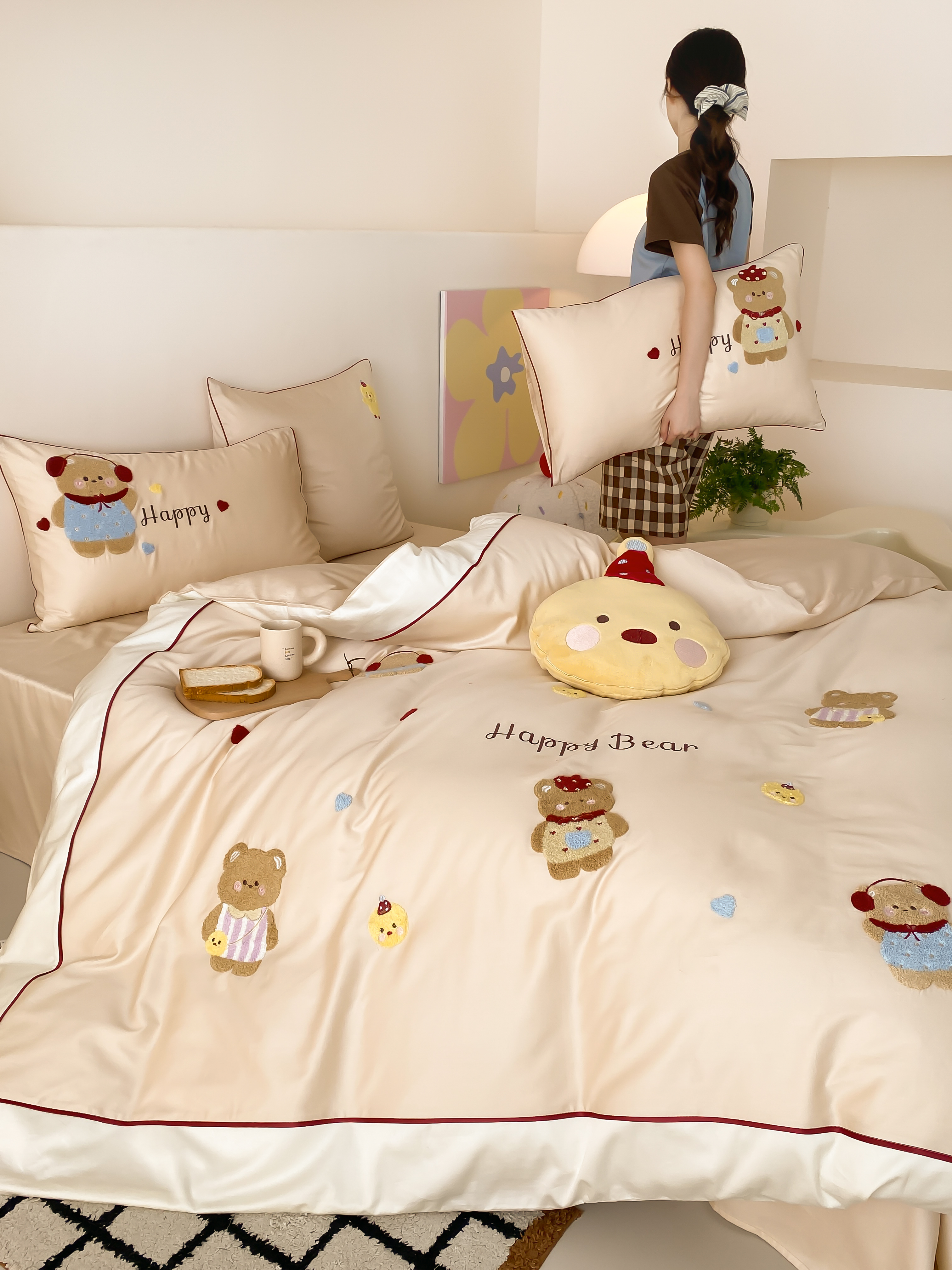 馨蕊家居 2026新款新品超细旦磨毛高奢系列四件套 磨毛卡通-奶油泡芙