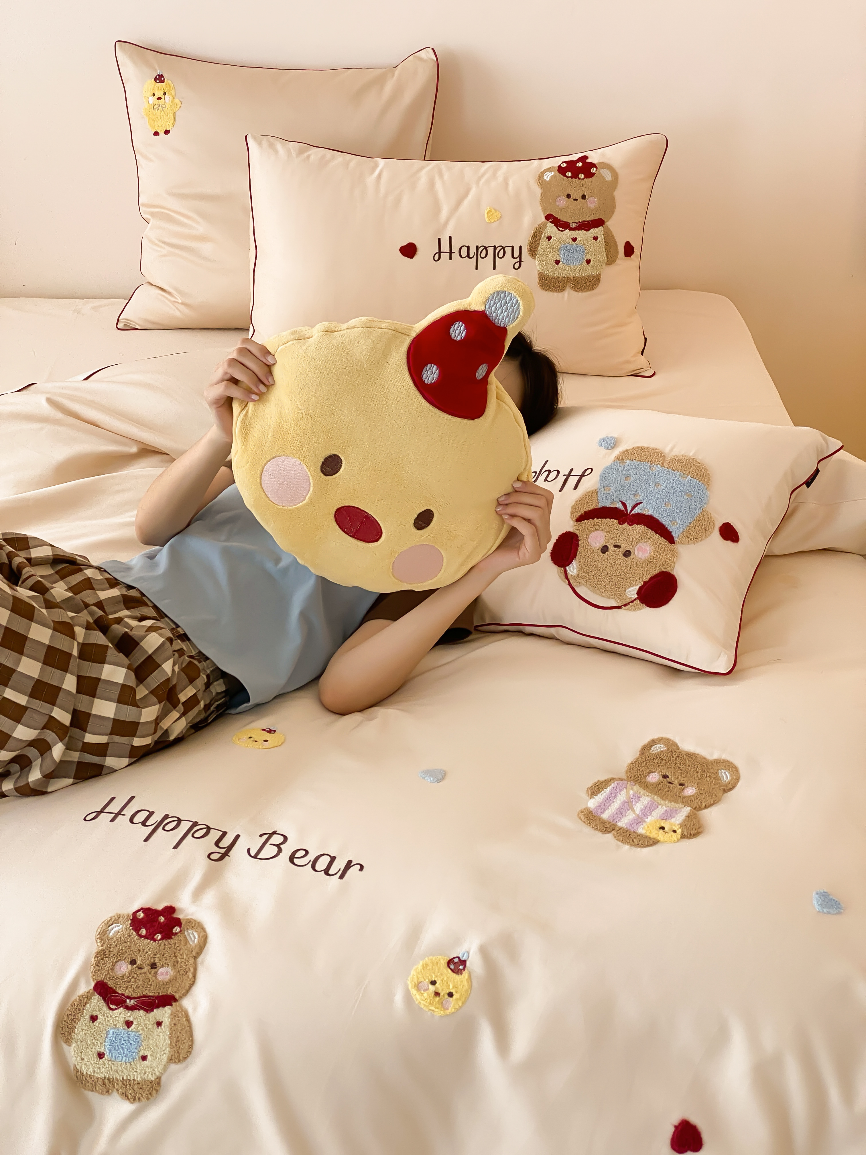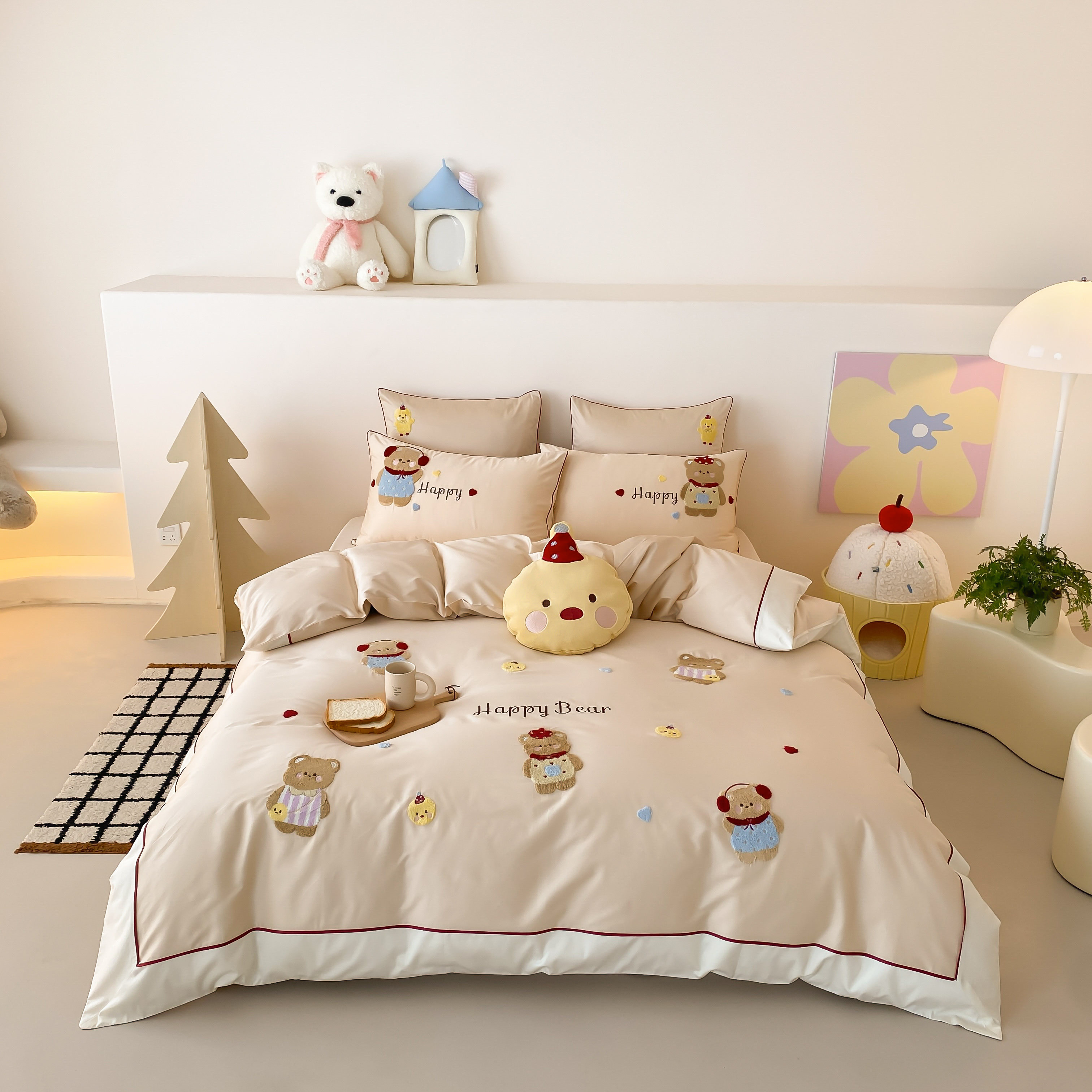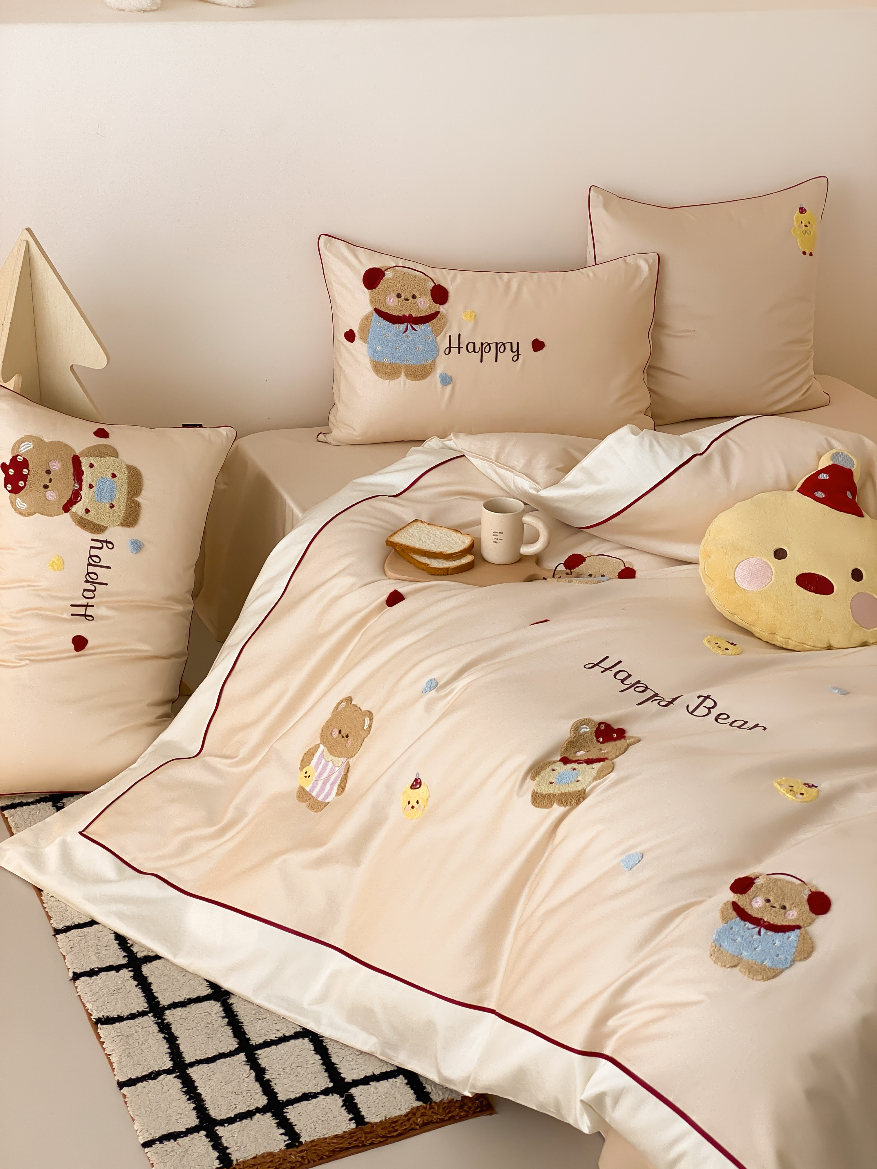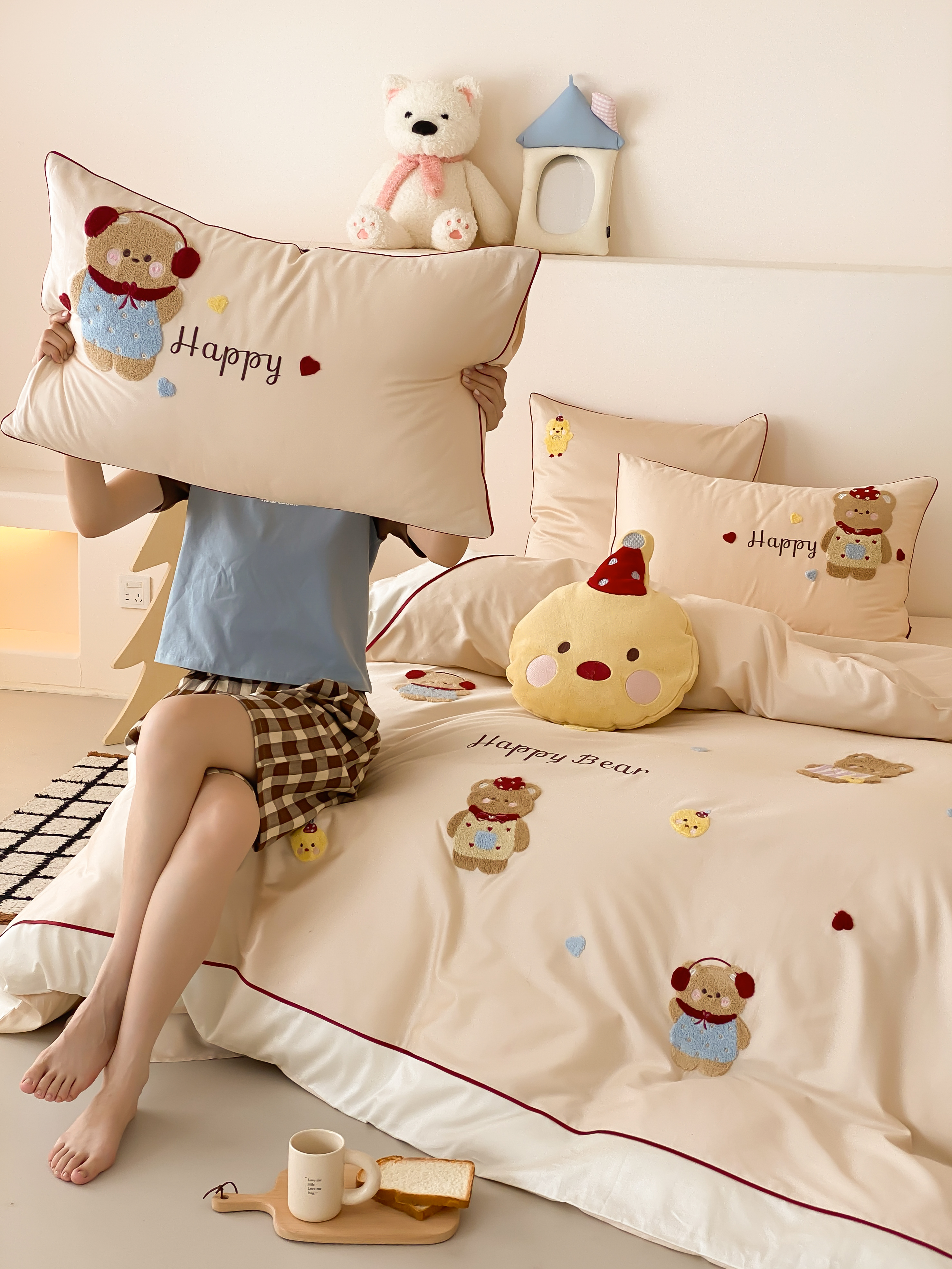 馨蕊家居 2026新款新品超细旦磨毛高奢系列四件套 磨毛卡通-奶油泡芙