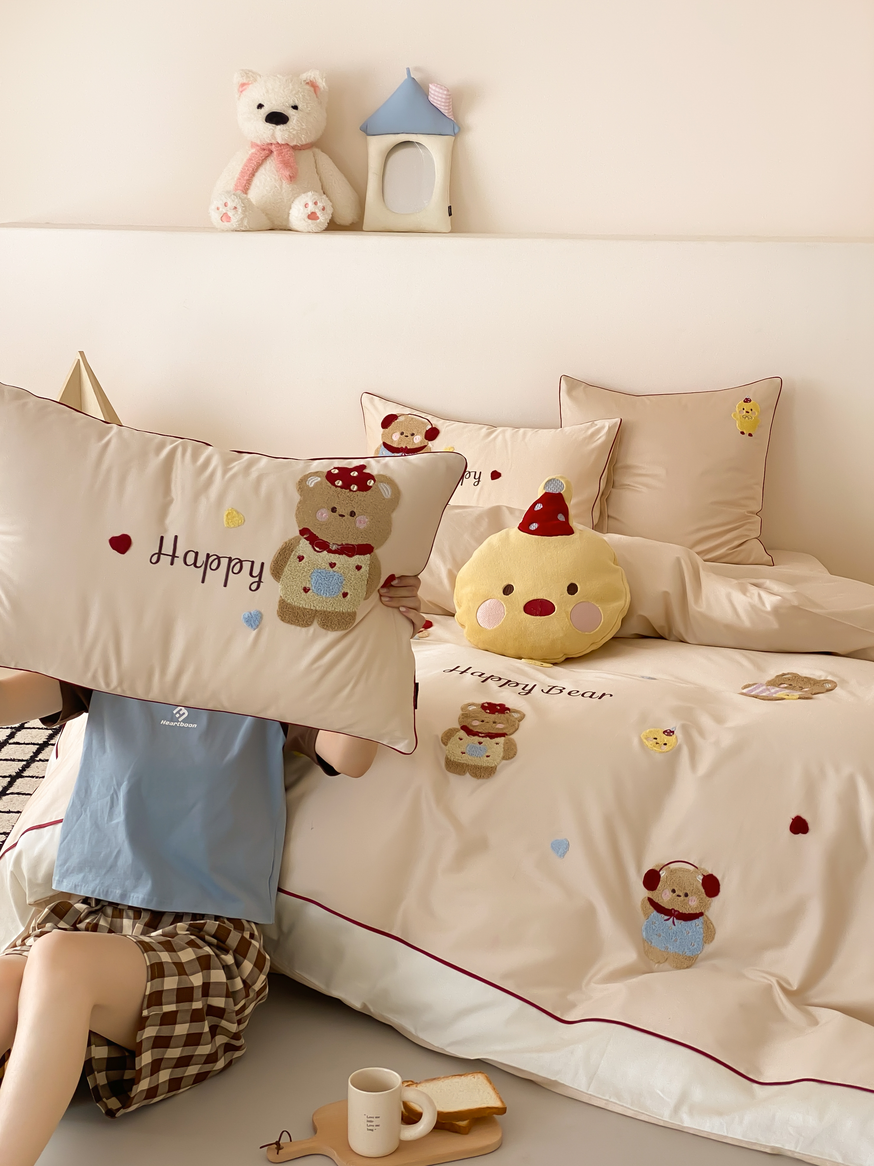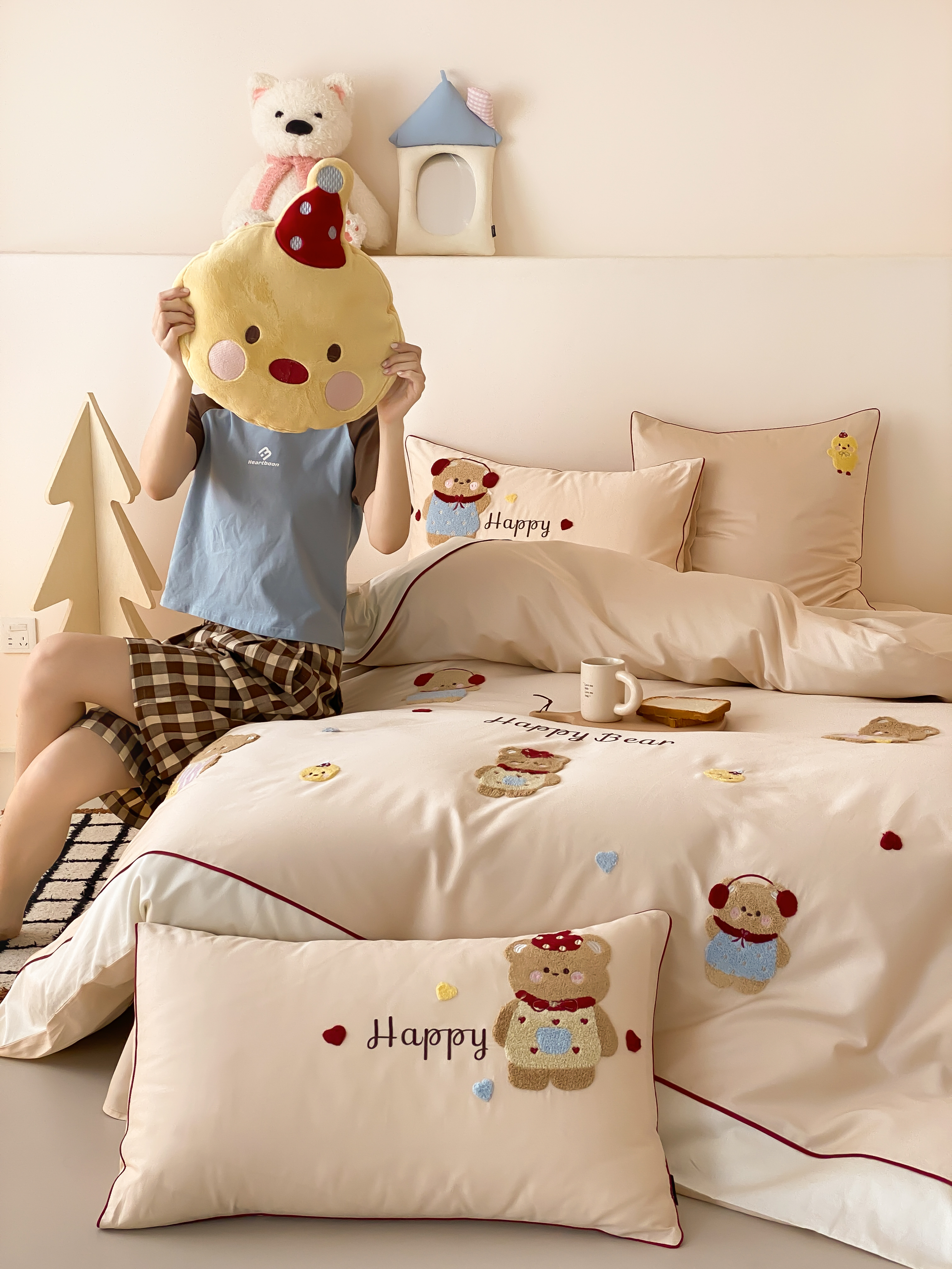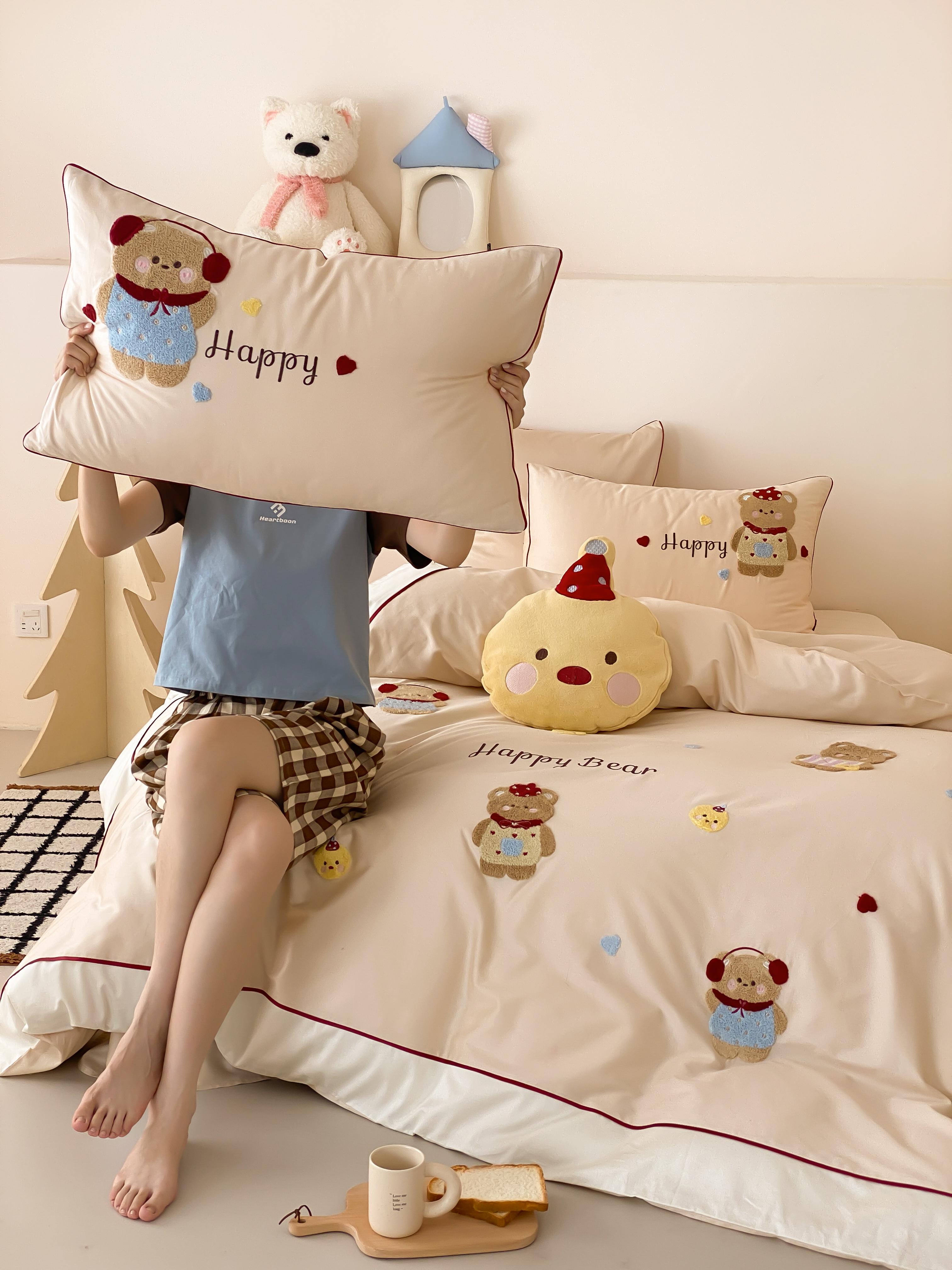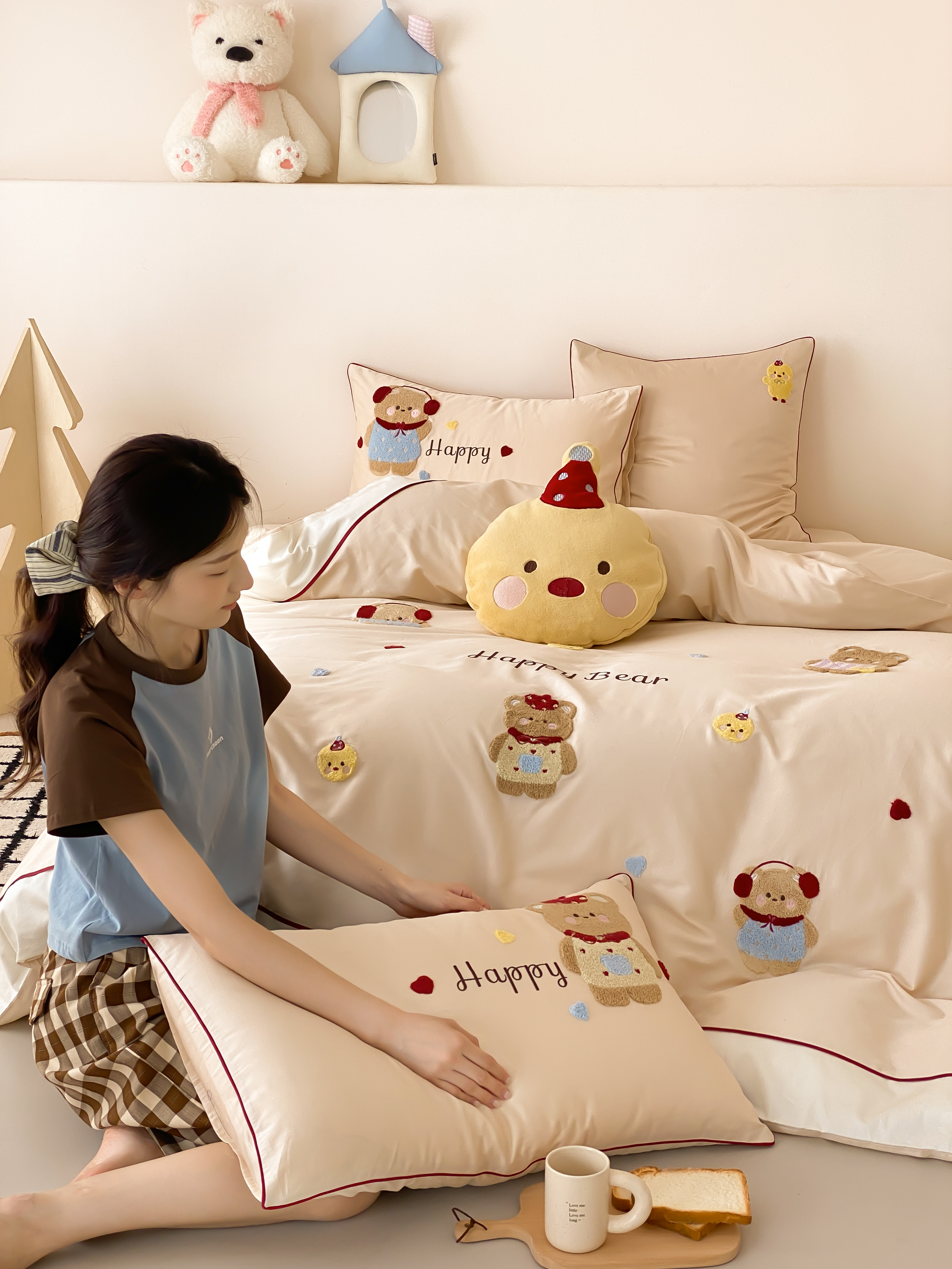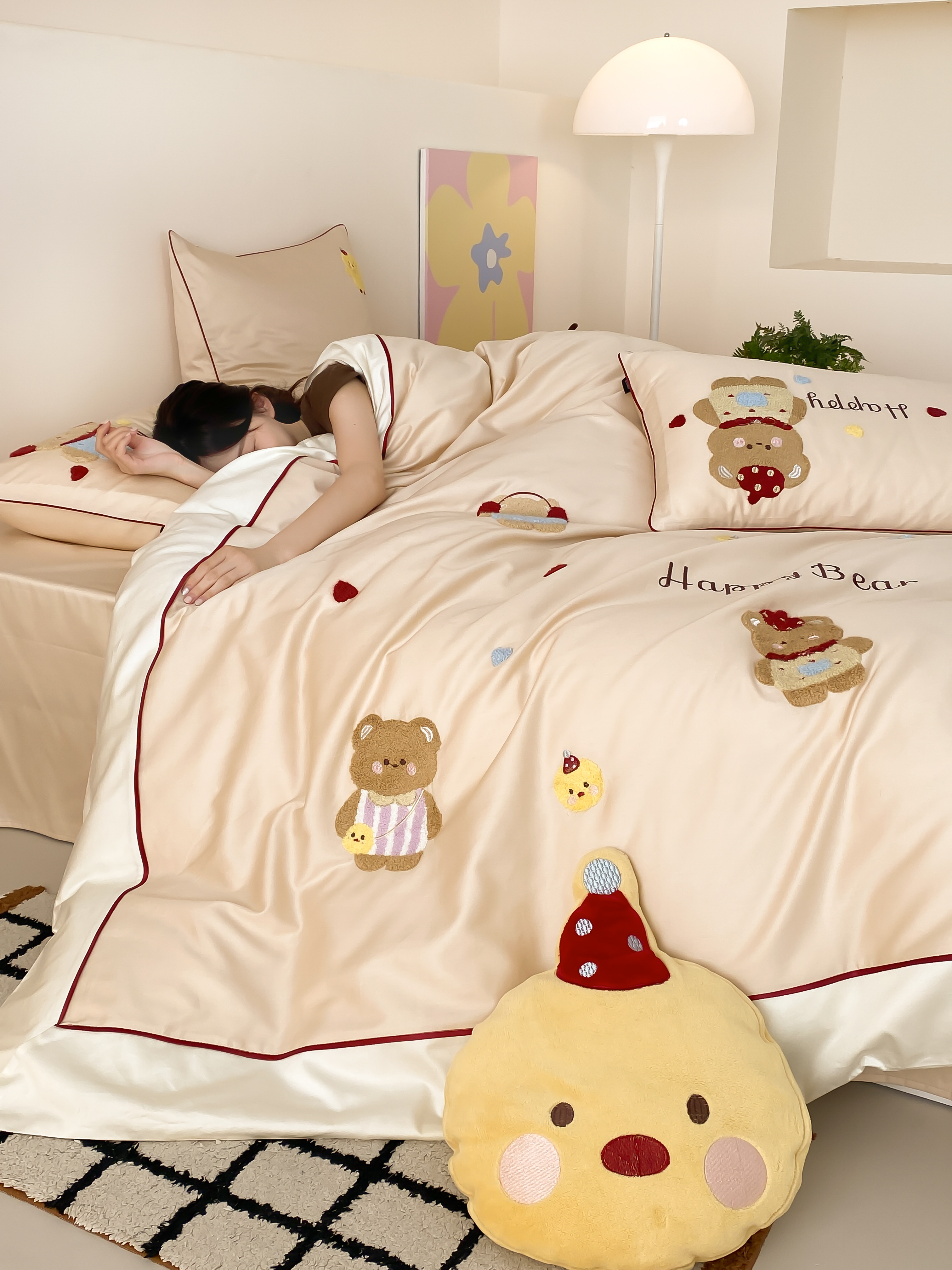馨蕊家居 2026新款新品超细旦磨毛高奢系列四件套 磨毛卡通-奶油泡芙
