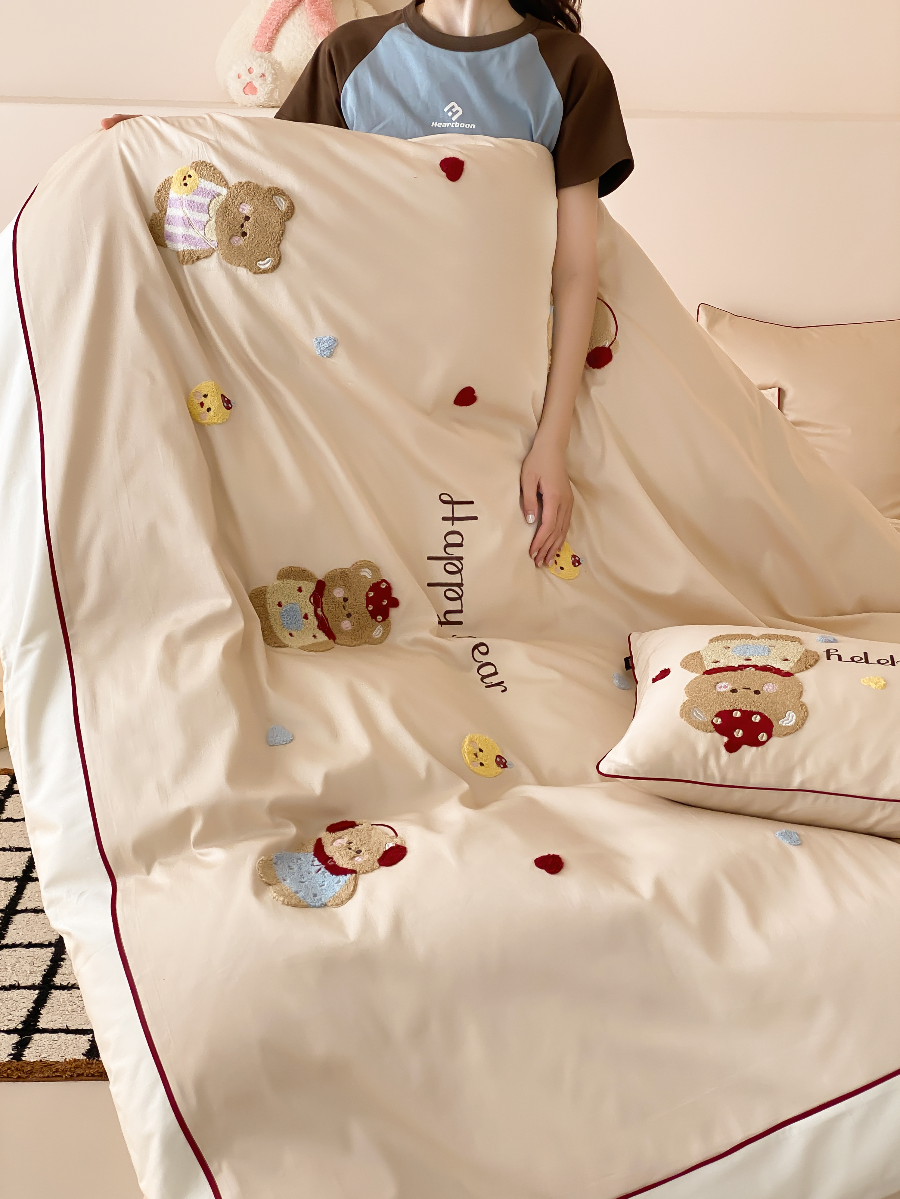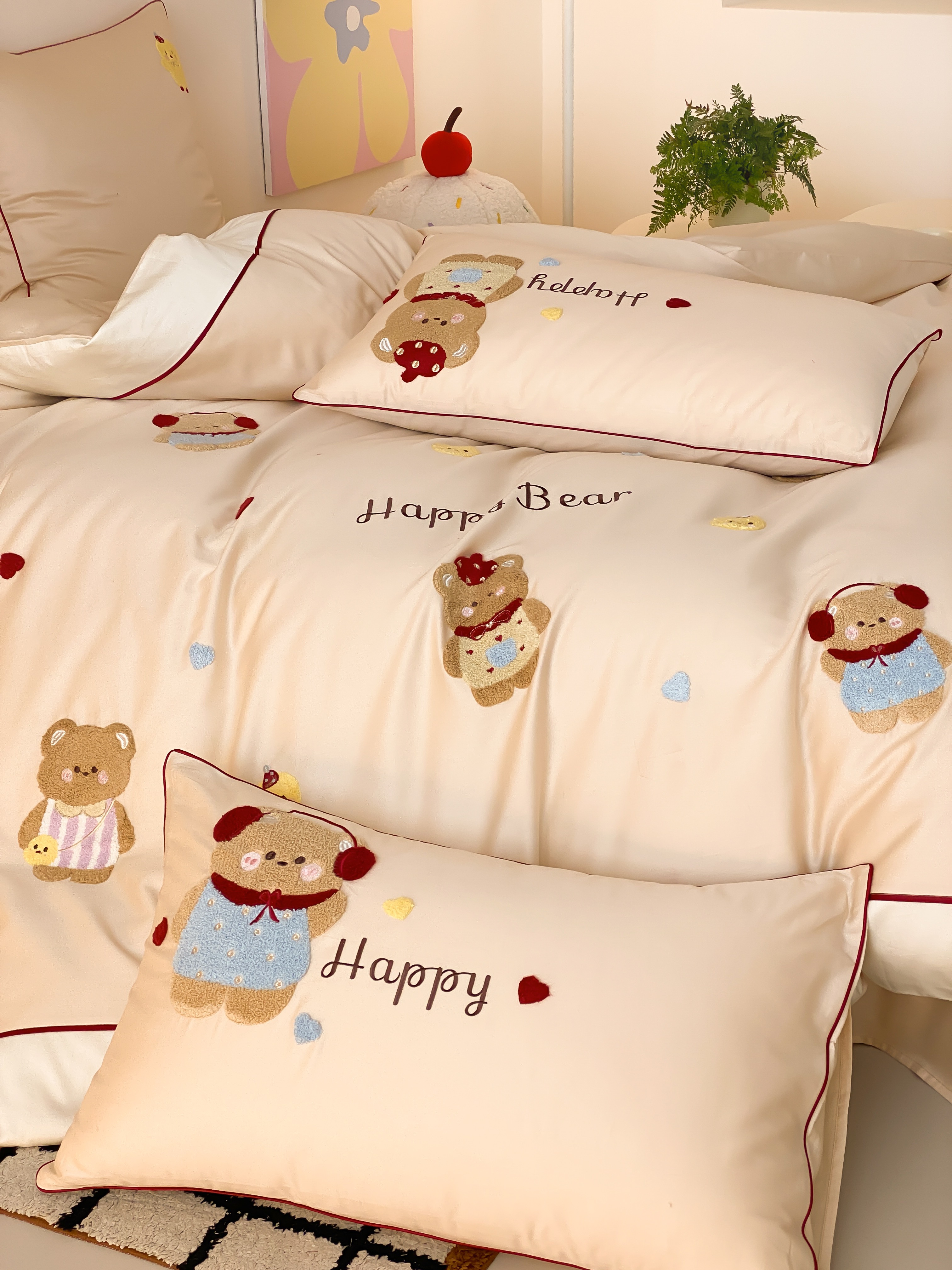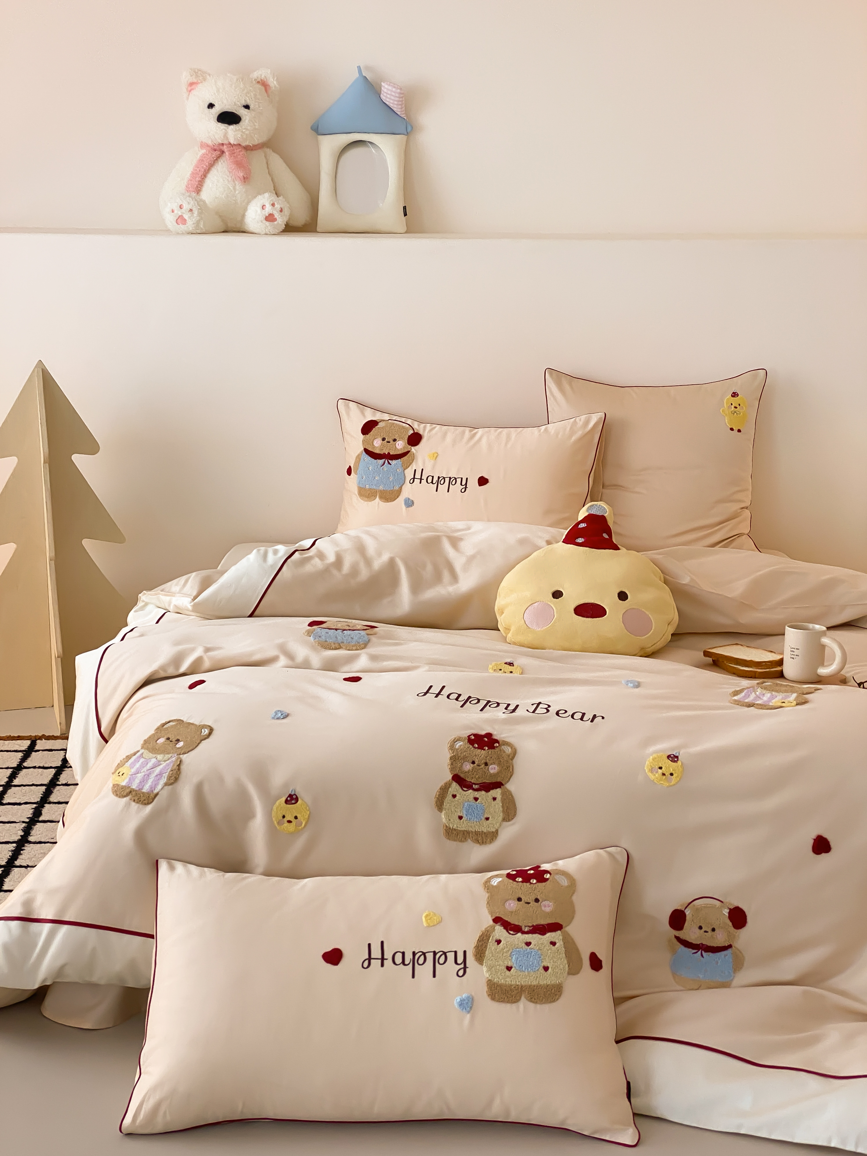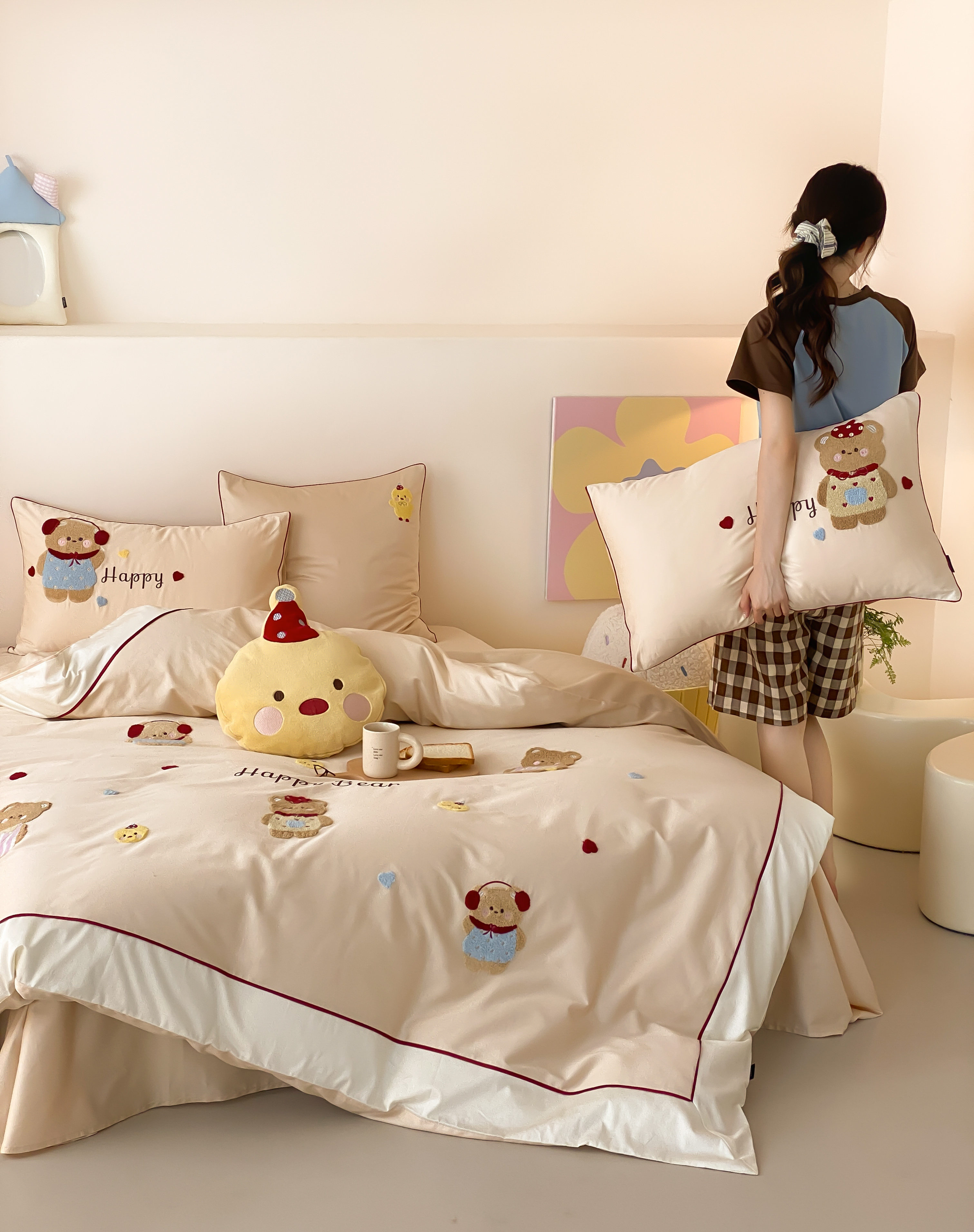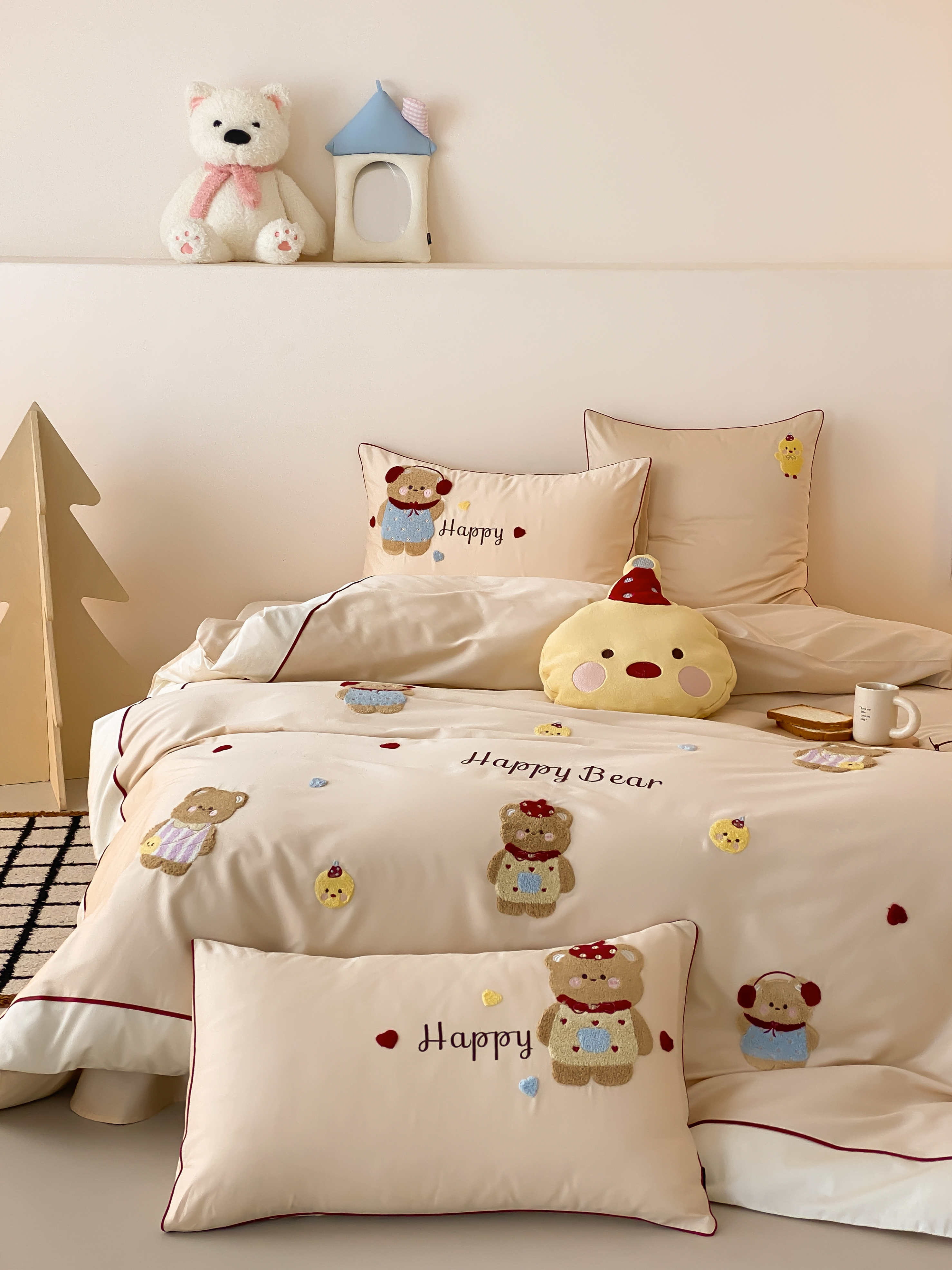 馨蕊家居 2026新款新品超细旦磨毛高奢系列四件套 磨毛卡通-奶油泡芙