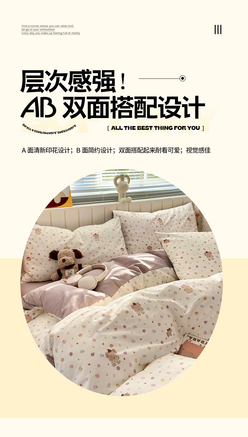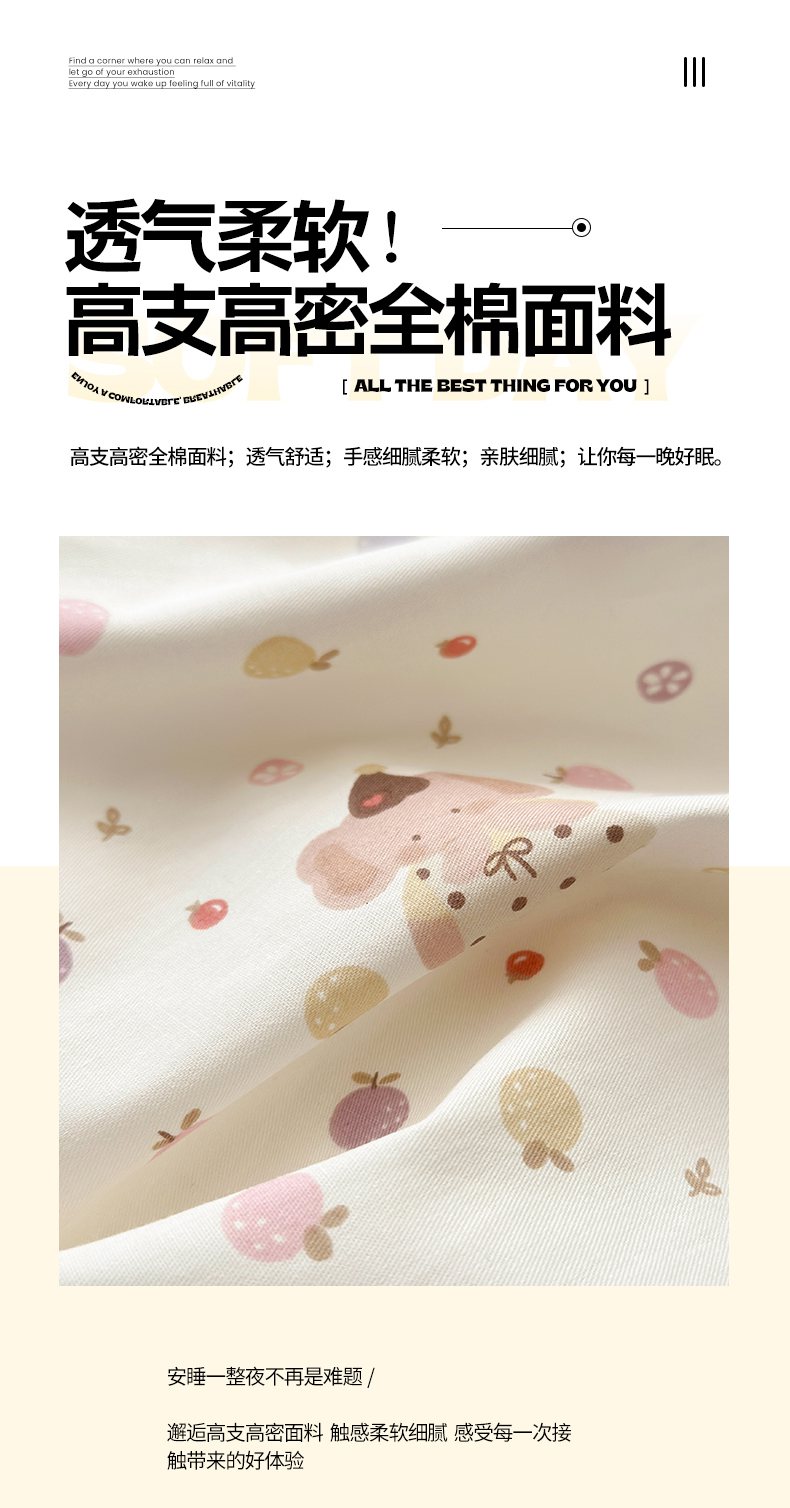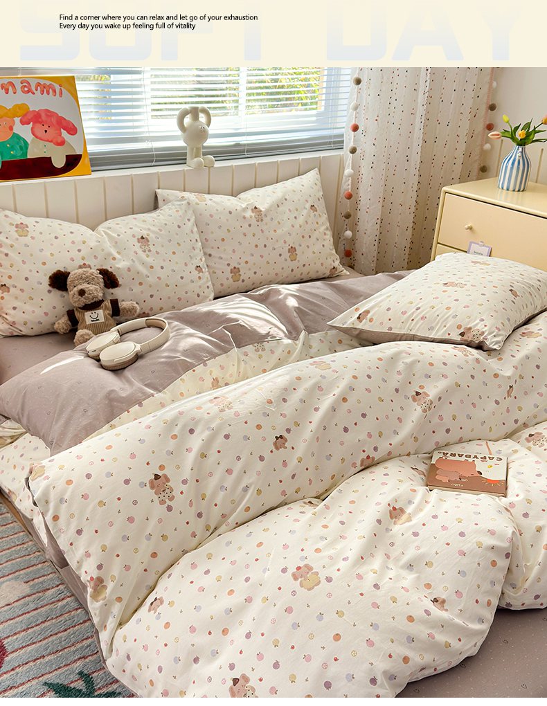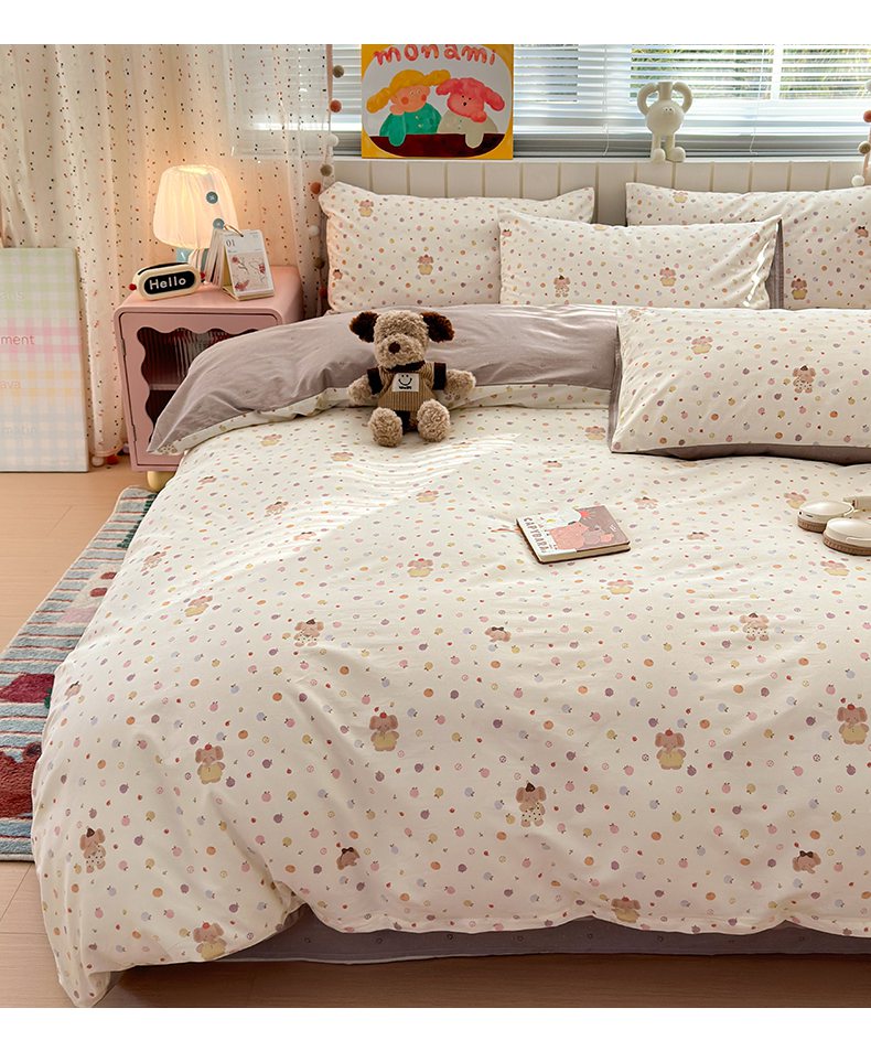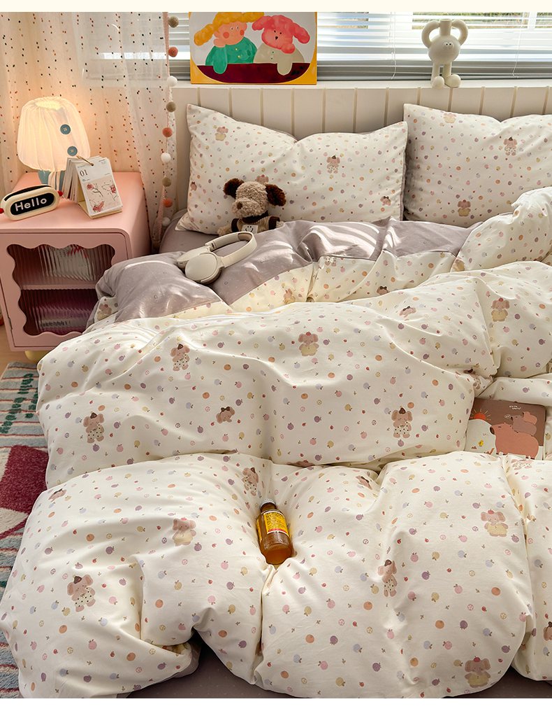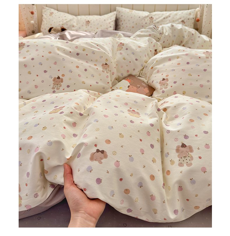 当前位置: 91家纺网 > 商品网购 > 床品套件 > 四件套 > 全棉普通四件套 > 梵克保罗 2026春夏新款ins小清新40支全棉13372四件套学生三件套单被套单枕套系列-第一批(四件套) 果子象