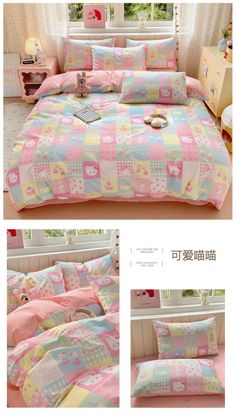 当前位置: 91家纺网 > 商品网购 > 床品套件 > 四件套 > 全棉普通四件套 > 梵克保罗 2026春夏新款ins小清新40支全棉13372四件套学生三件套单被套单枕套系列-第二批(四件套) 可爱萌星