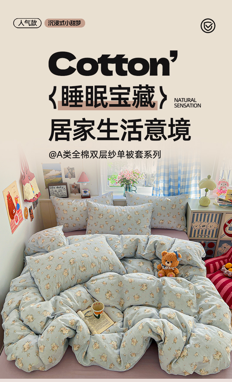 焱博家纺 2026新款A类全棉双层纱系列单被套 千禧少女