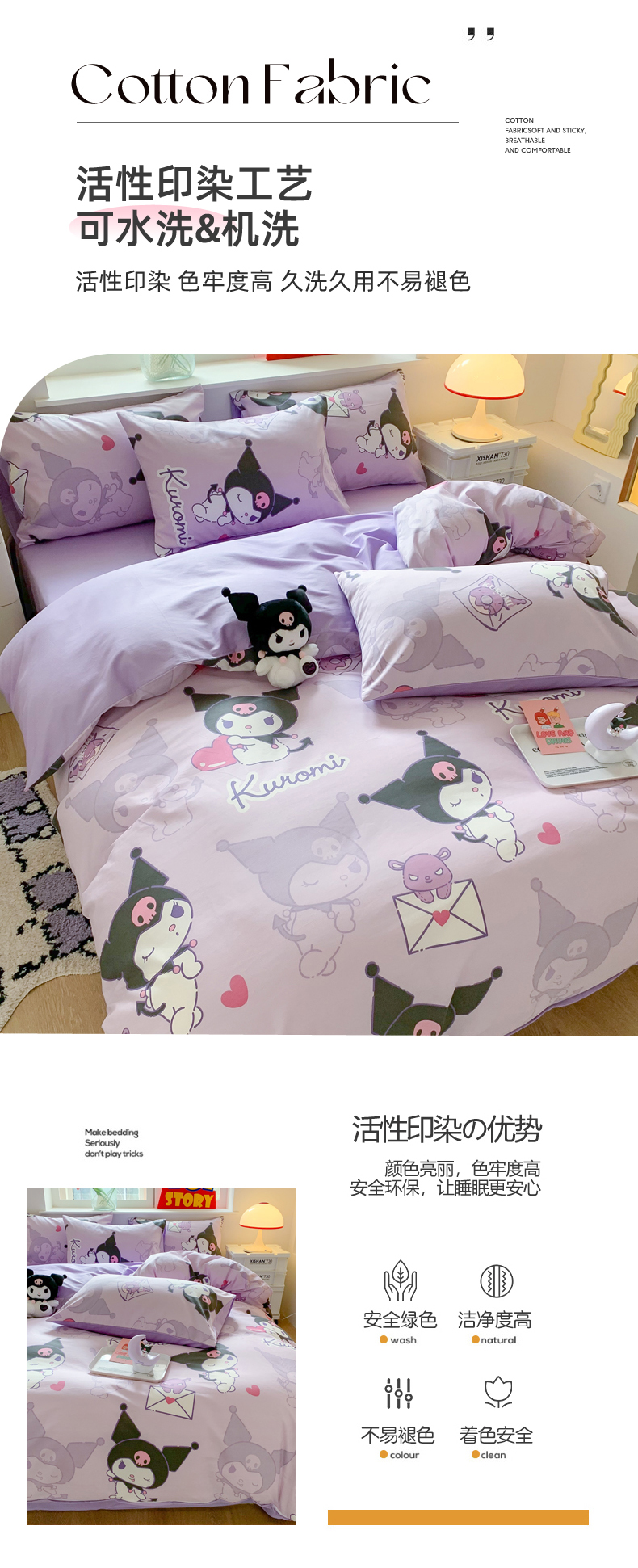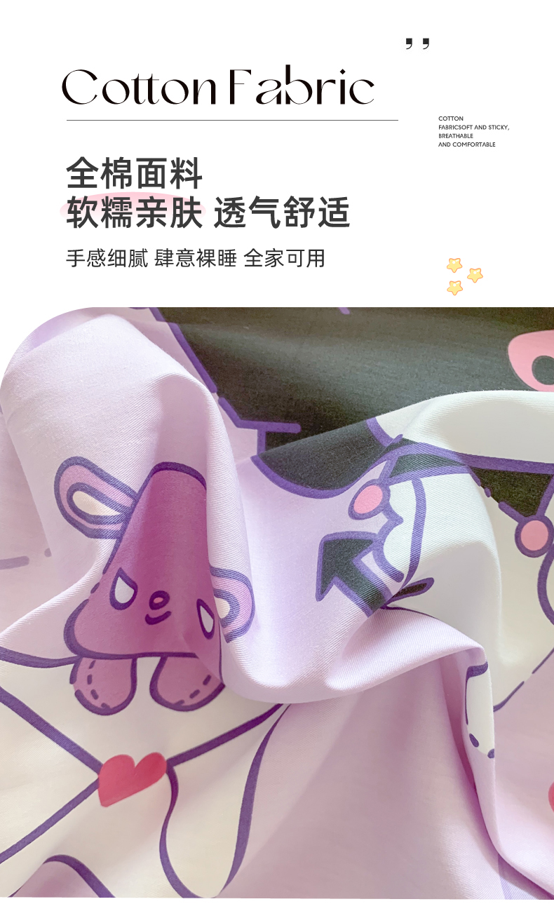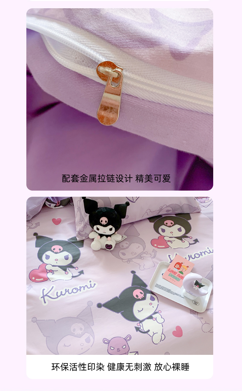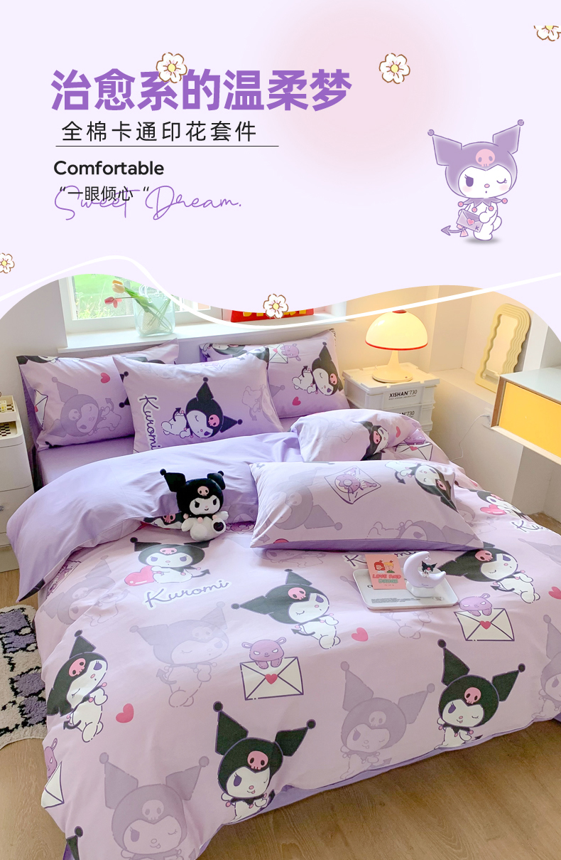 当前位置: 91家纺网 > 商品网购 > 床品套件 > 四件套 > 全棉普通四件套 > 玉元坊 2026新款正版授权三丽鸥系列全棉纯棉床单四件套学生三件套-库洛米系列 库洛米【简约款】