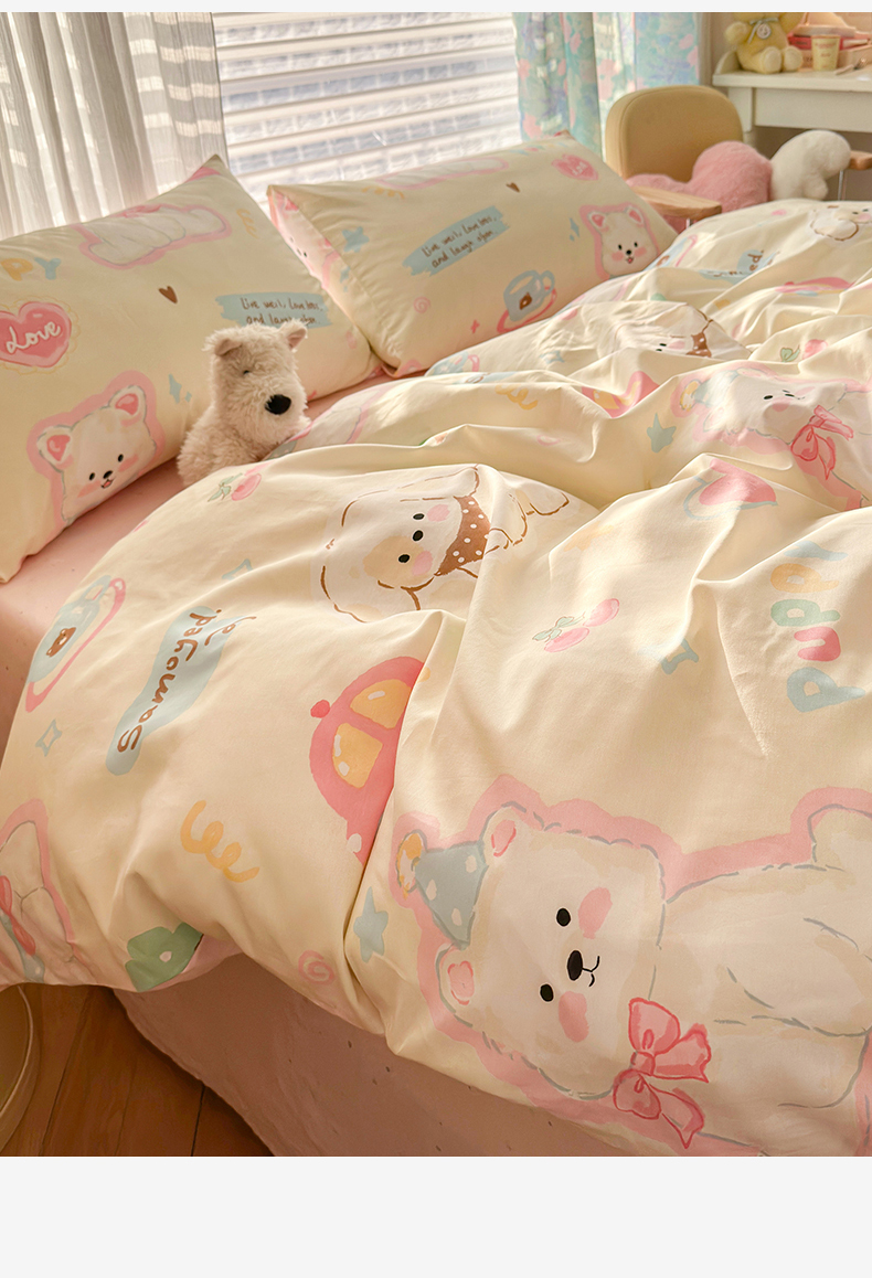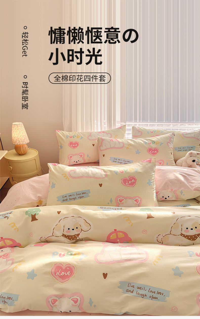 当前位置: 91家纺网 > 商品网购 > 床品套件 > 四件套 > 全棉普通四件套 > 名兮家居 2026跑量款全棉印花四件套 萌宠-米