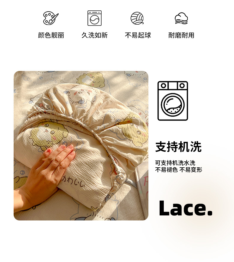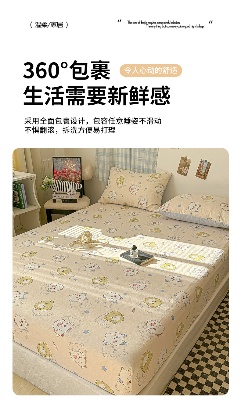 (总)繁花家居 2026新款泡芙棉云感木棉邹邹纱单床笠床单单件学生床,彩虹萌宠,粉豹喵爪,粉光织梦,粉糖喵仔,复古拼格,果园晨曲,幻紫喵语,焦糖波点,焦糖格纹,蓝调奶猫,蓝光织梦,棱镜茶语,马卡甜铺,奶黄星芒,奶雾喵语,奶杏碎影,奶油花町,森系小熊,糖雾汪星,糖心粉喵,糖渍苹果,甜莓粉喵,甜梦萌兔,月白星喵,珠光爱心,组合图仅供展示不可下单