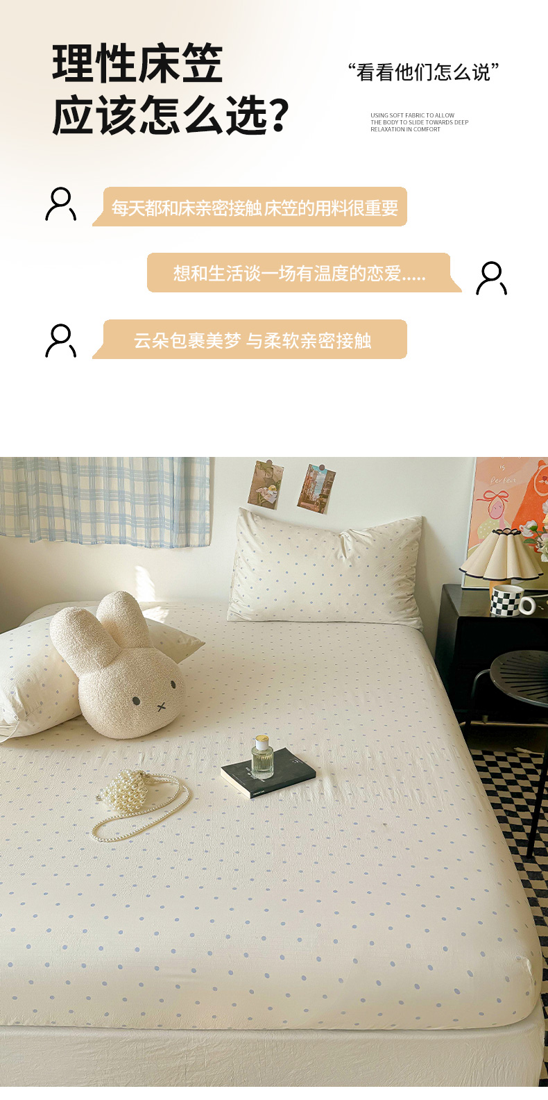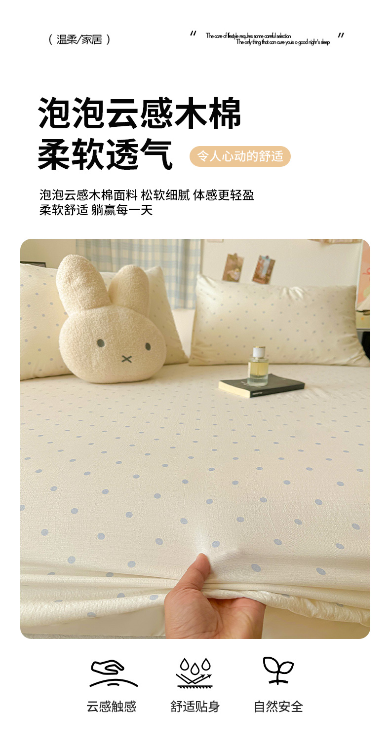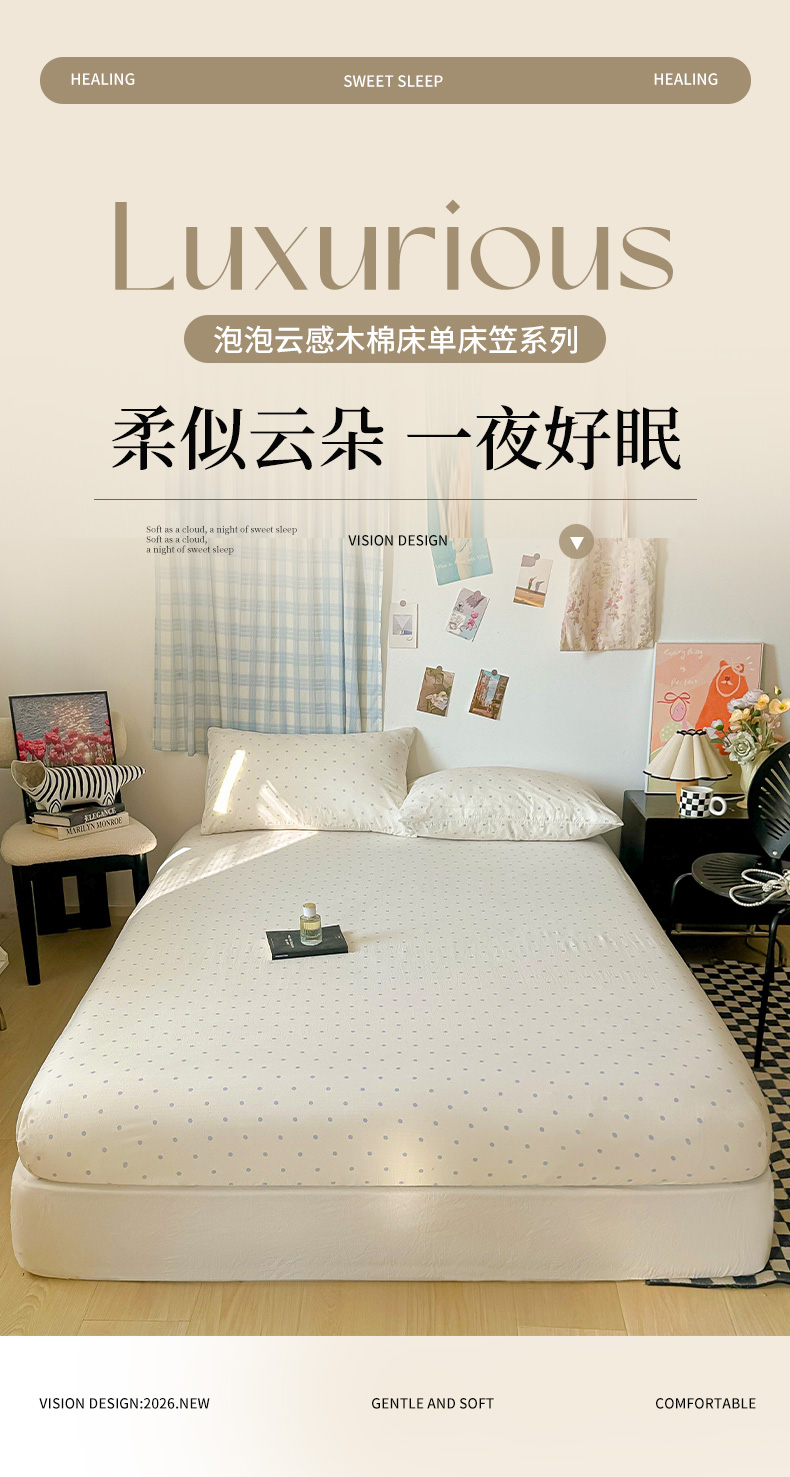 繁花家居 2026新款泡芙棉云感木棉邹邹纱单床笠床单单件学生床 蓝光织梦
