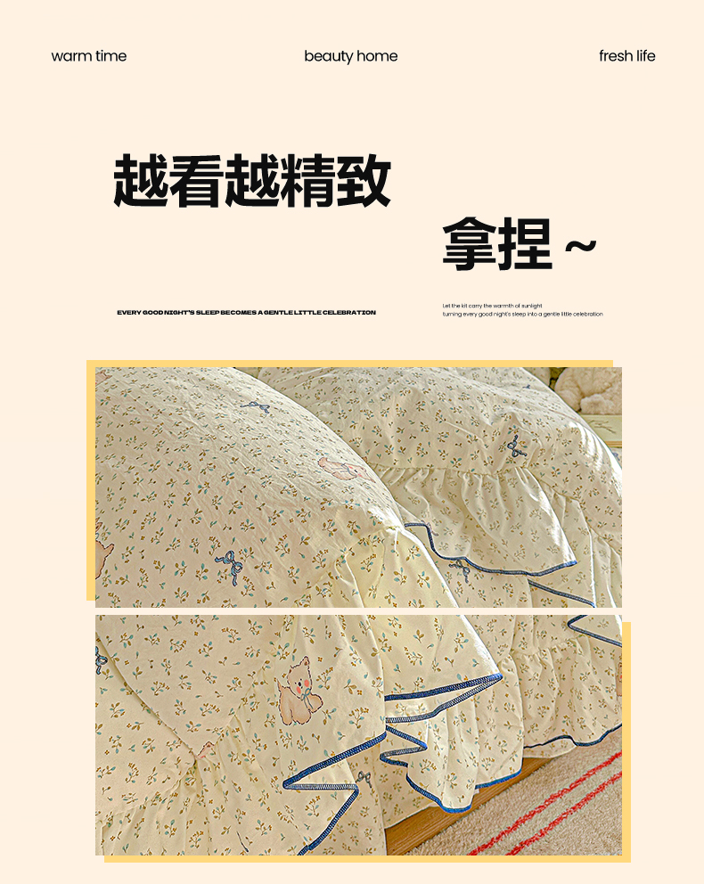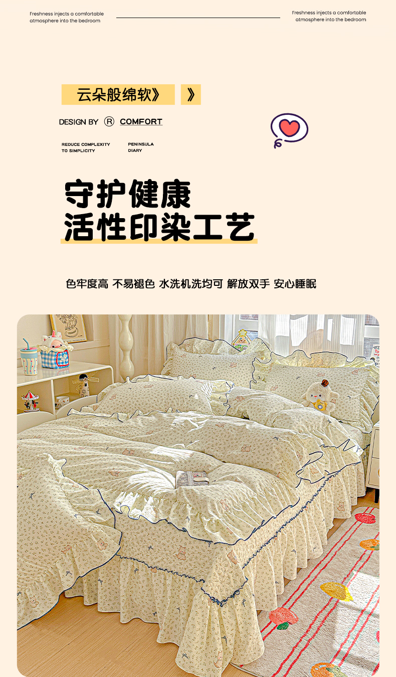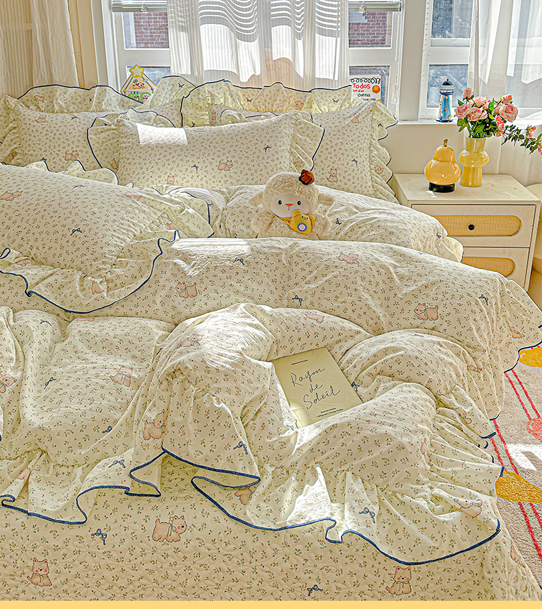 (总)家维家纺 2026新款(常年不断货)韩式花边复古棉感床盖四件套 提供买家秀,花柔犬,波点,小困豹猫,春日礼盒,花枝棠,花园,枝花间
