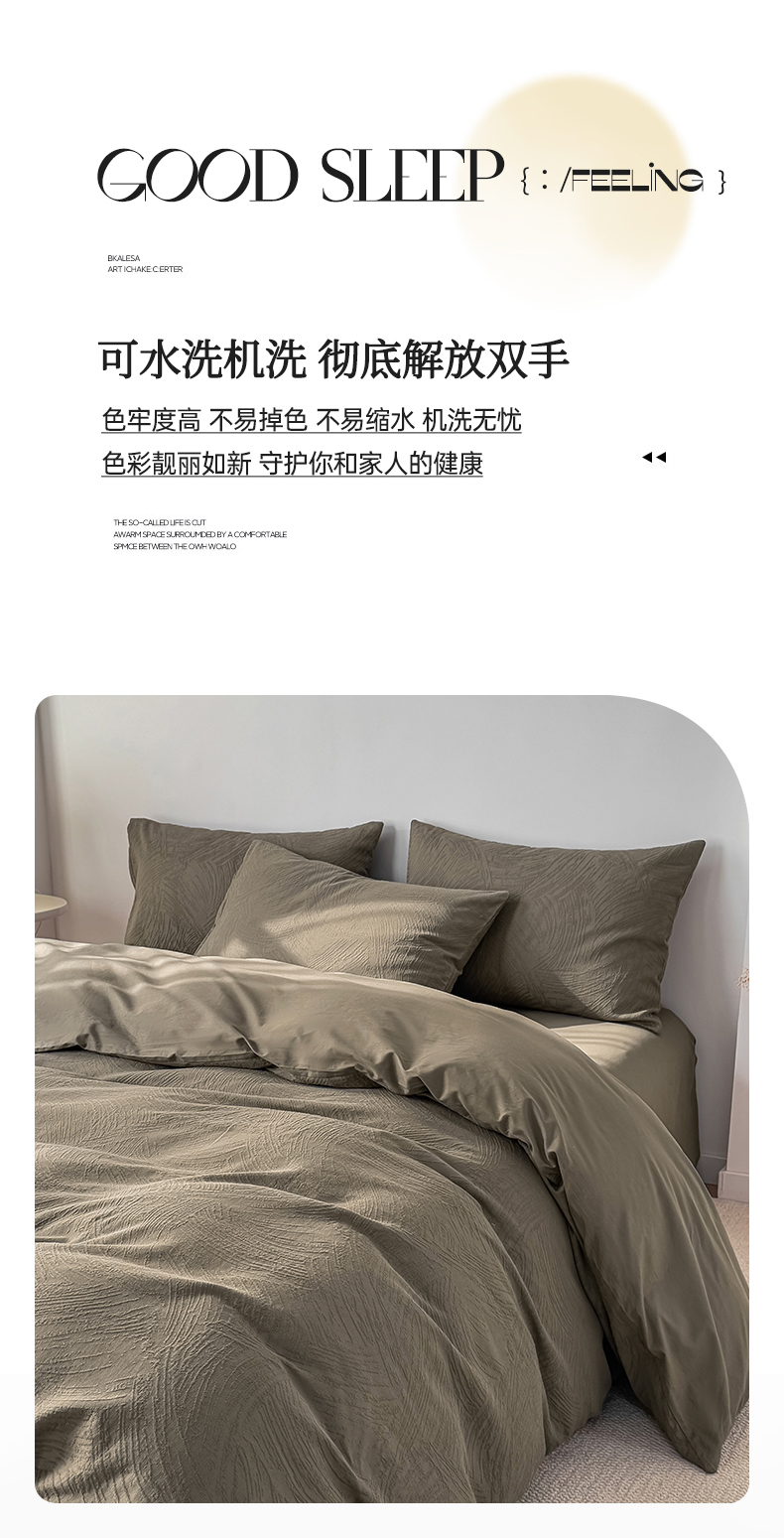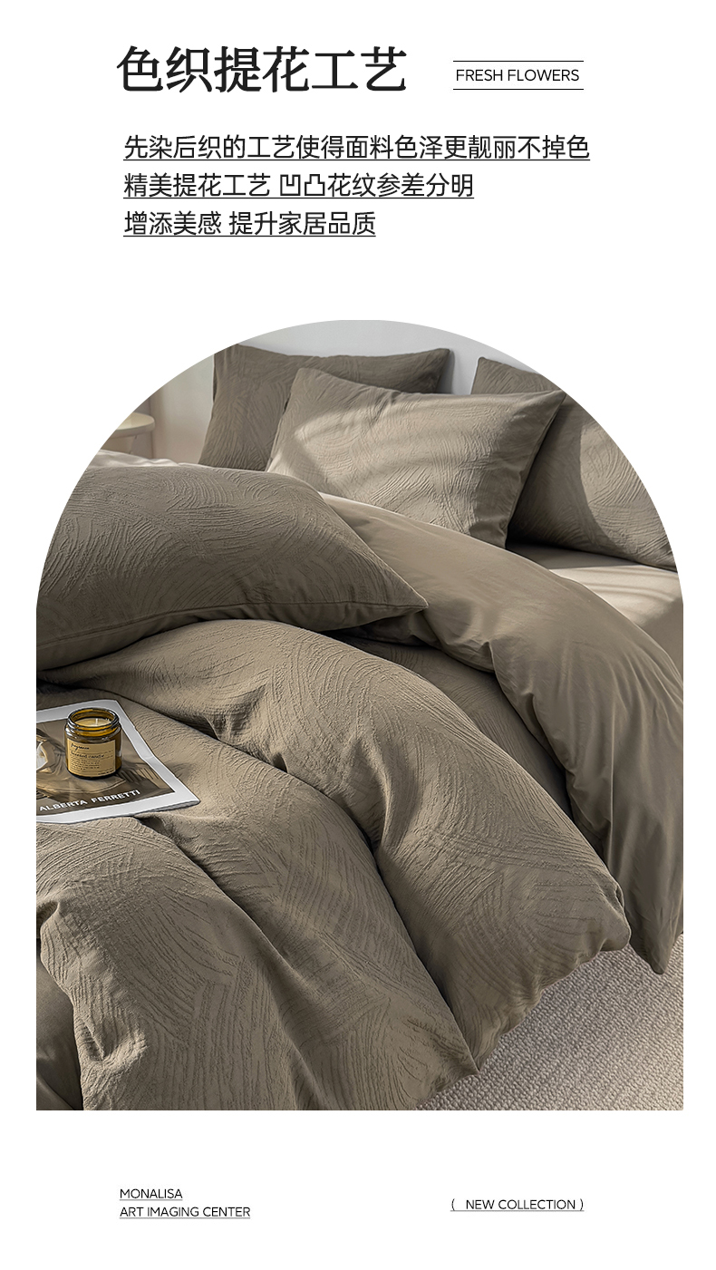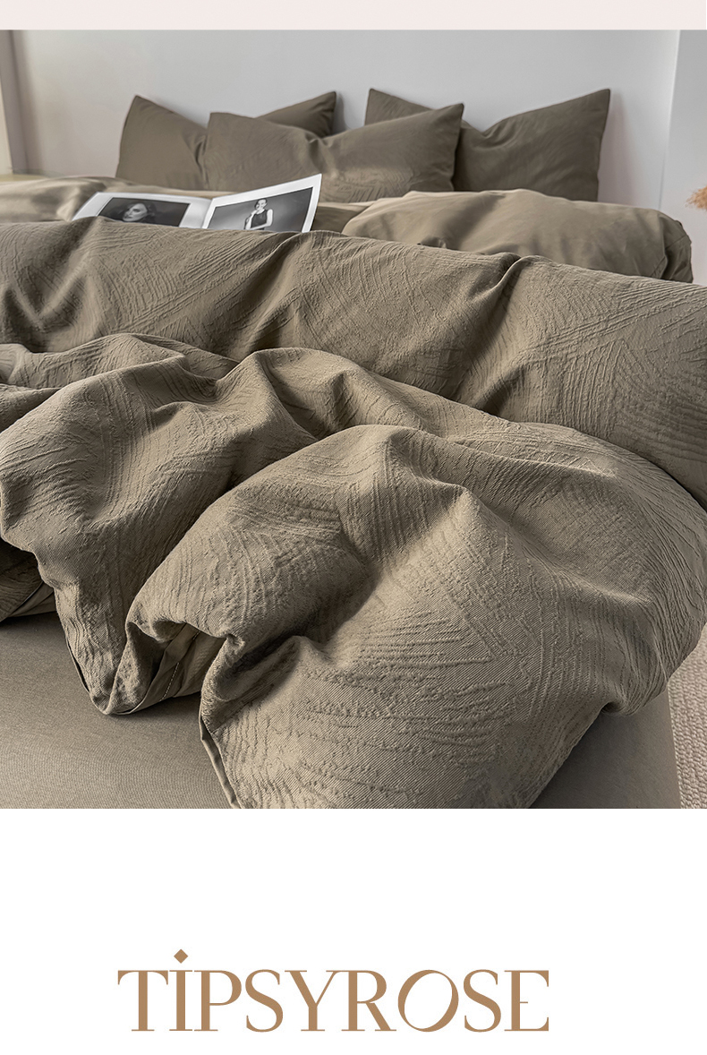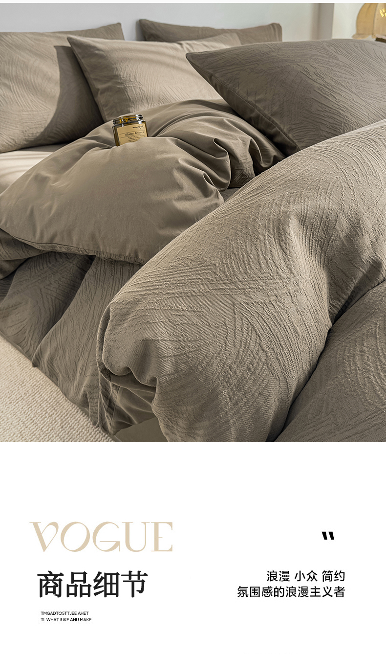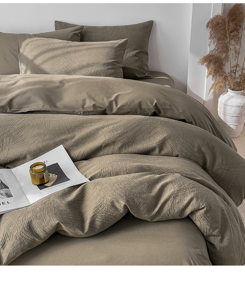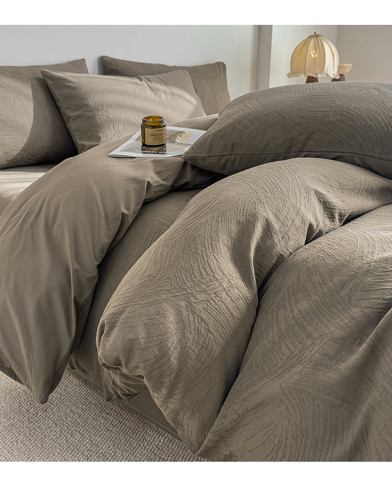当前位置: 91家纺网 > 商品网购 > 床品套件 > 四件套 > 全棉普通四件套 > 灰鲸 2026新款全棉纯棉厚织三层水洗色织提花四件套 柔丝漫语-摩卡