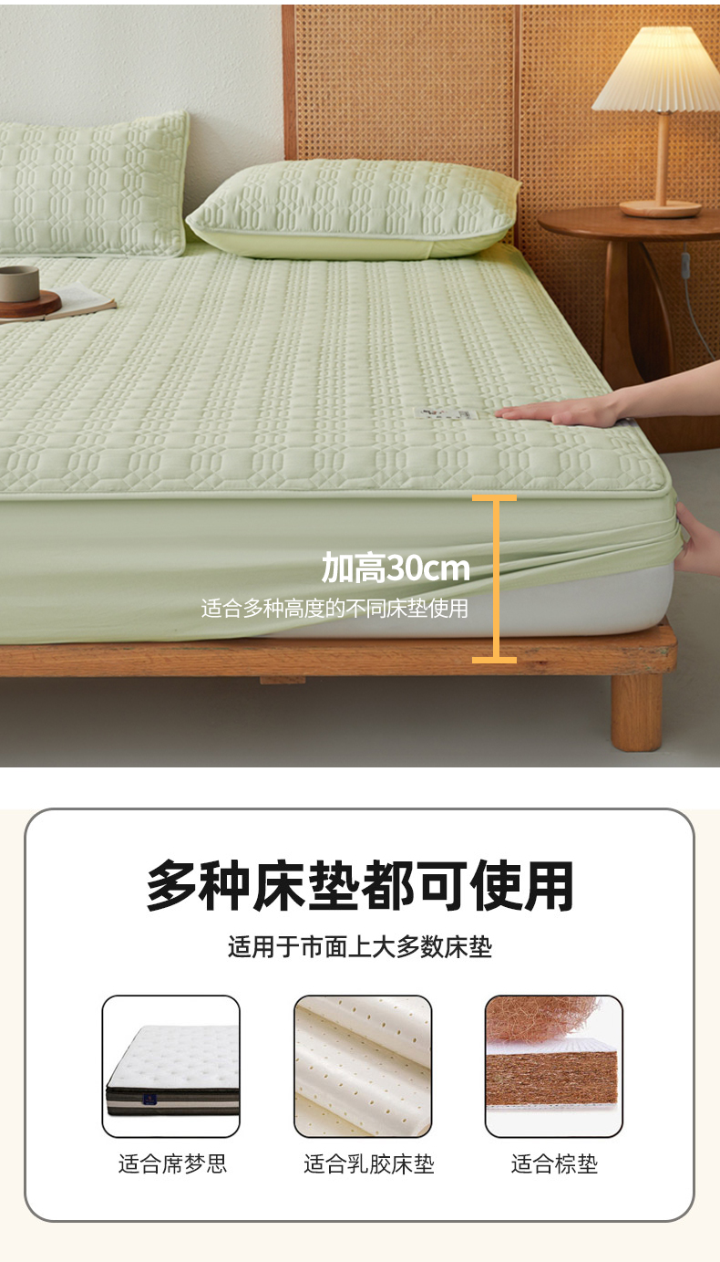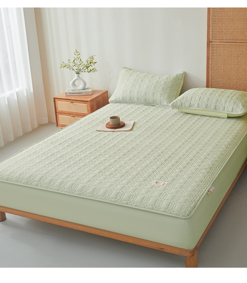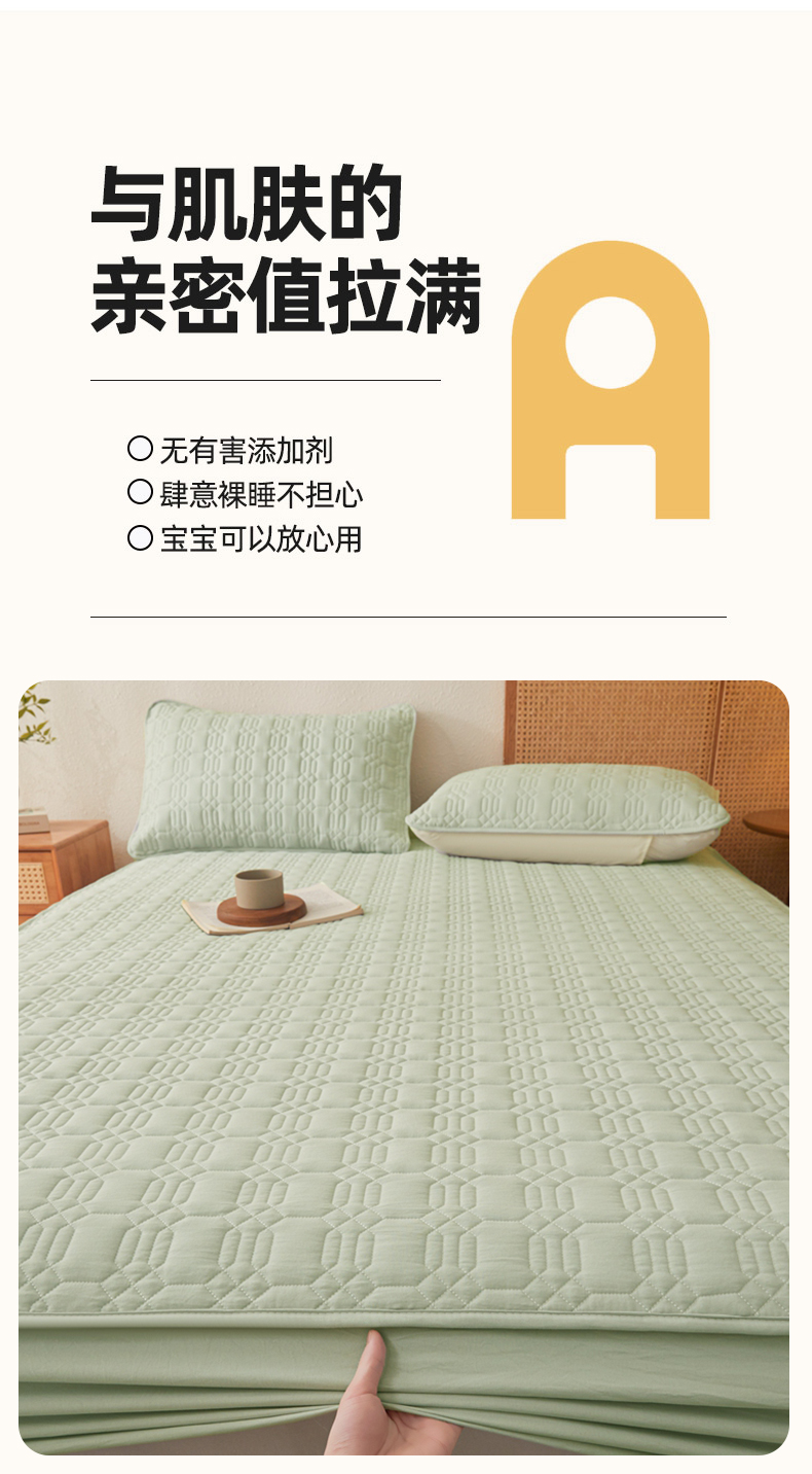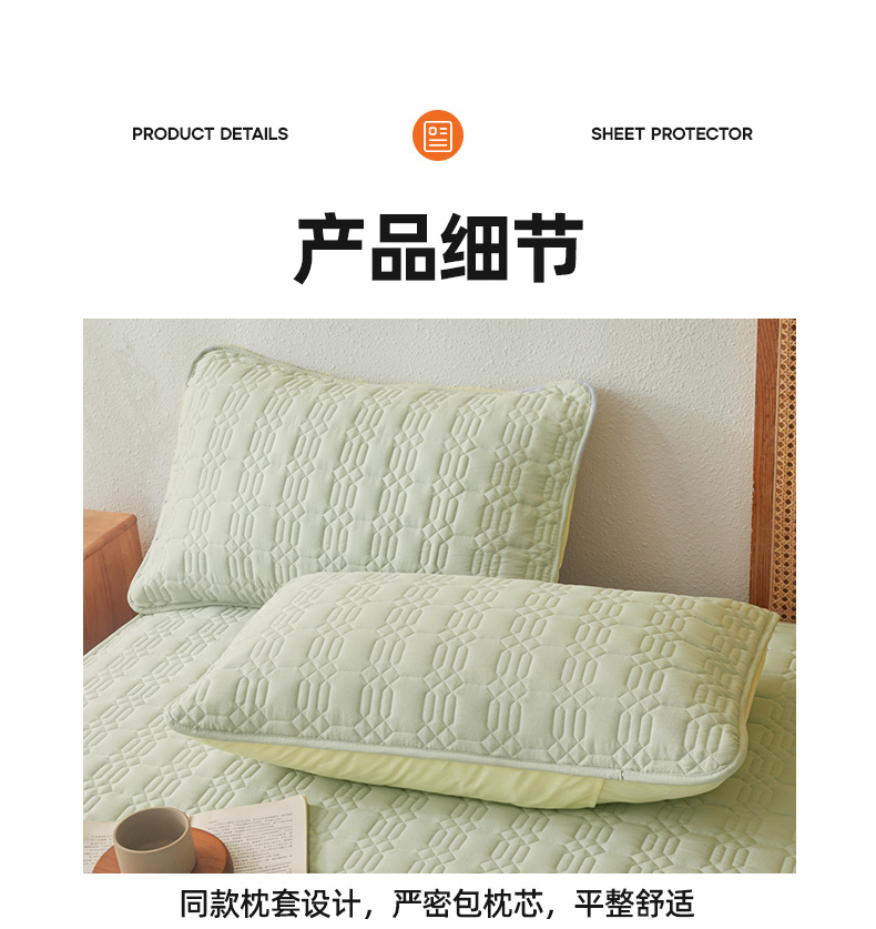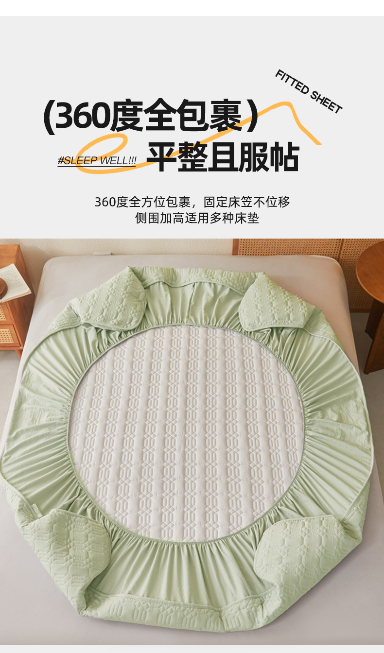 邵依家纺 2026新款原棉防水床笠系列 菱格嫩绿