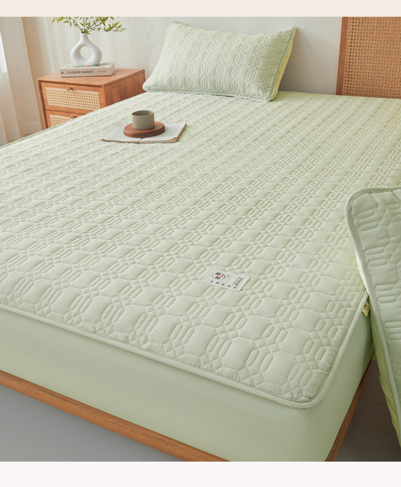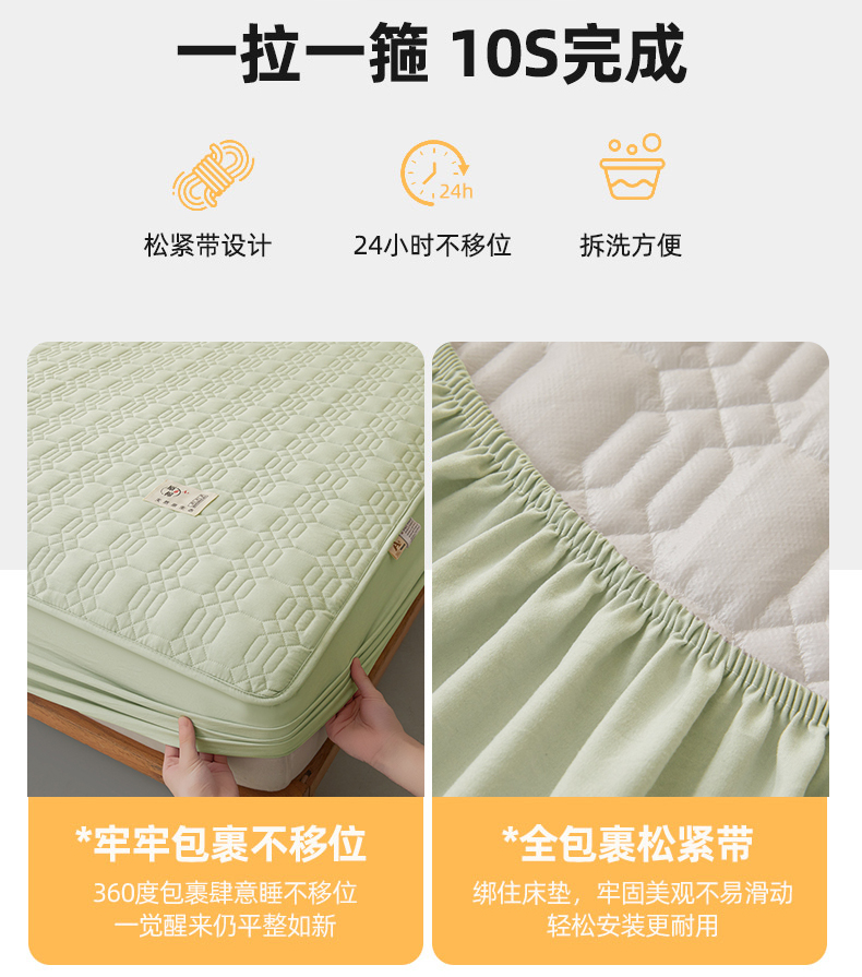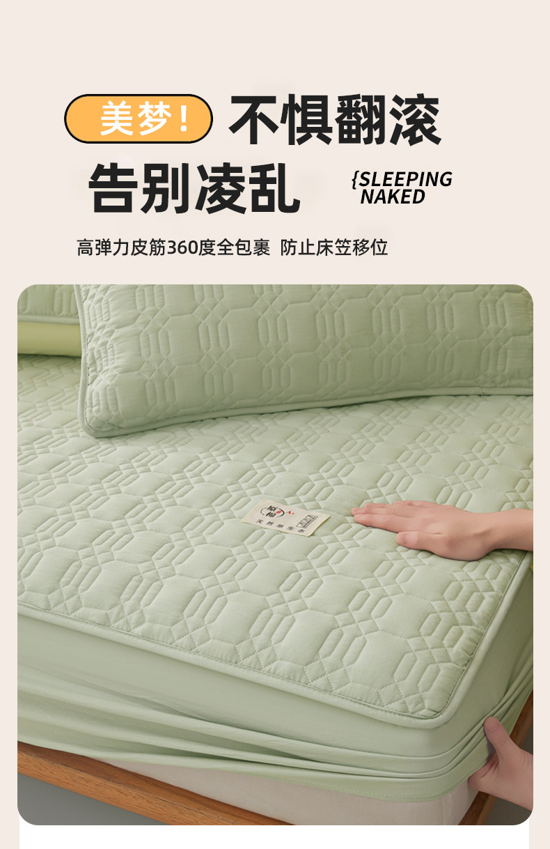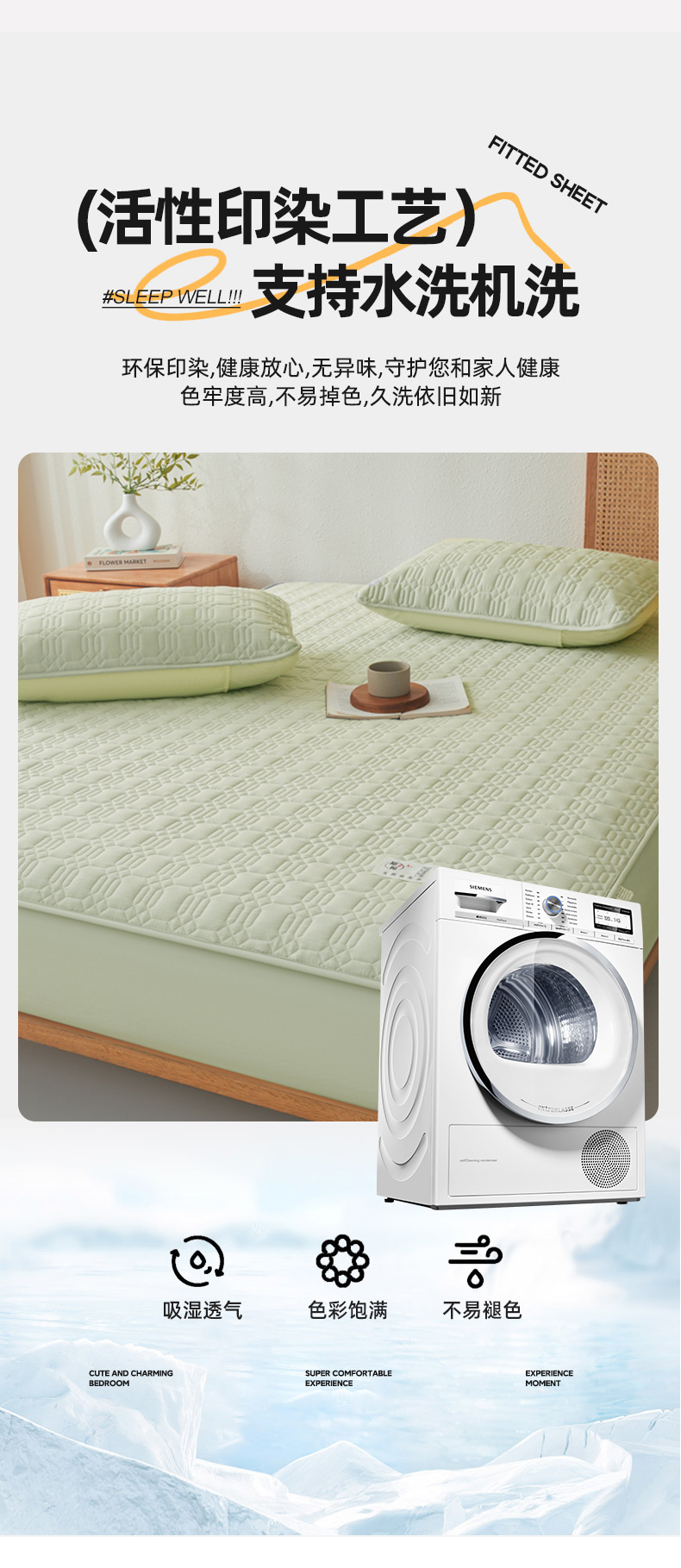 邵依家纺 2026新款原棉防水床笠系列 菱格嫩绿