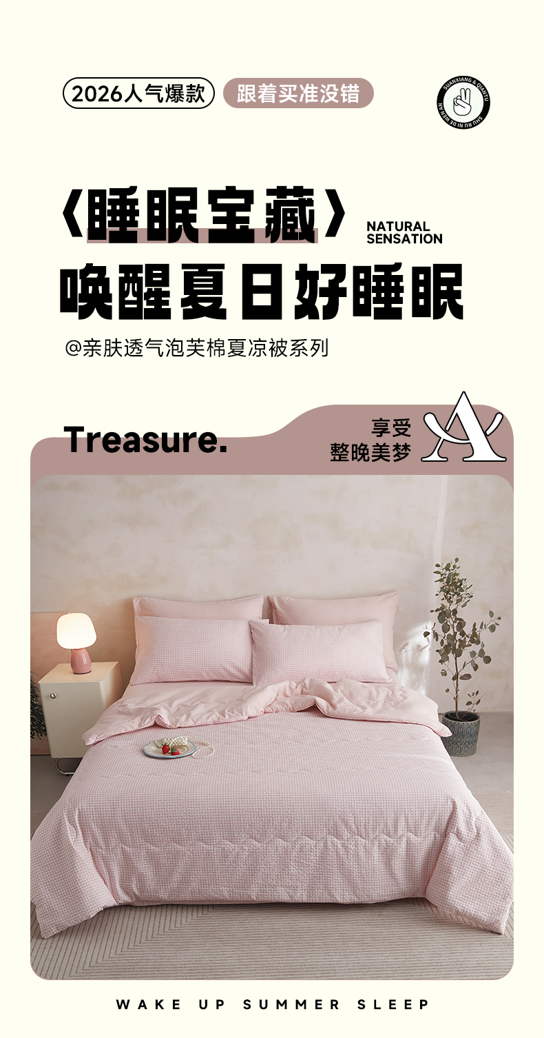 商品名称:艺菲阁家纺 2026新款泡芙棉夏被夏凉被空调被 可可粉格